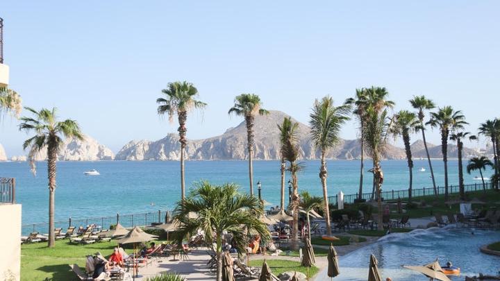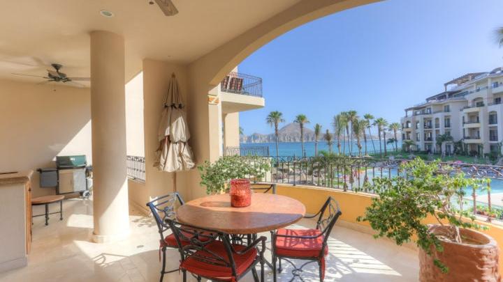 Located in Cabo San Lucas, this two-bedroom, three-bathroom oceanfront condominium is part of the Villa La Estancia reso...
