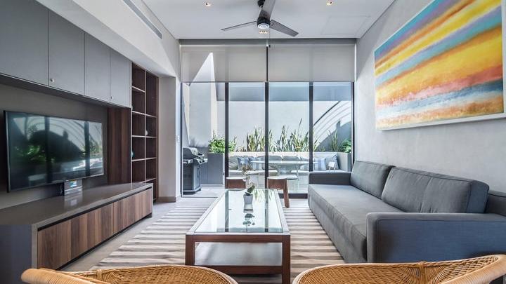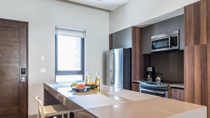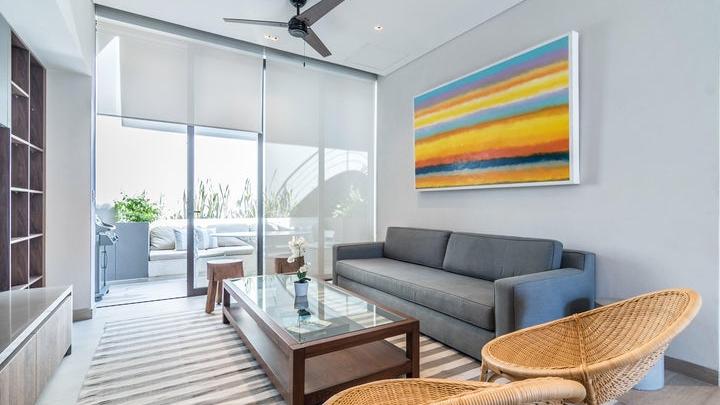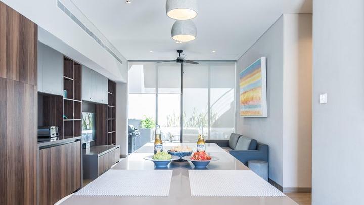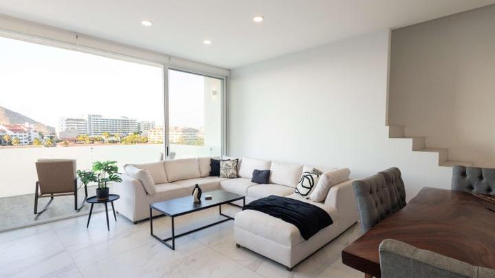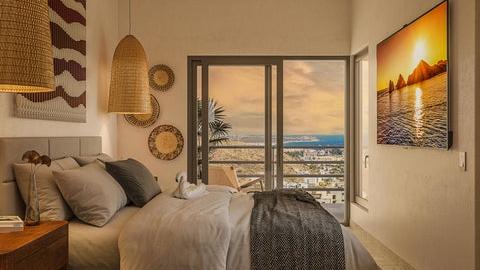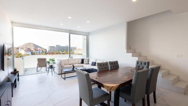 Discover this exceptional, fully furnished, two-story penthouse in the Golondrina building at Marea, Cabo San Lucas...