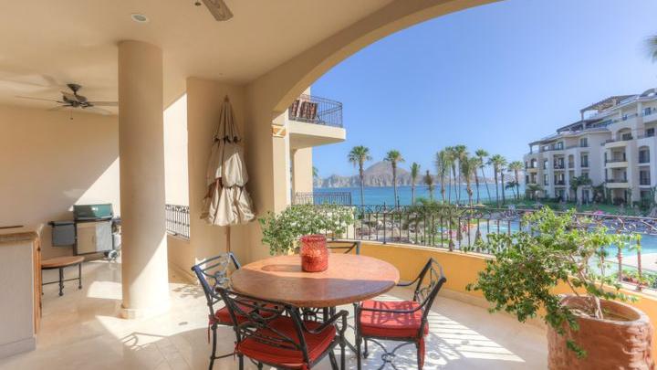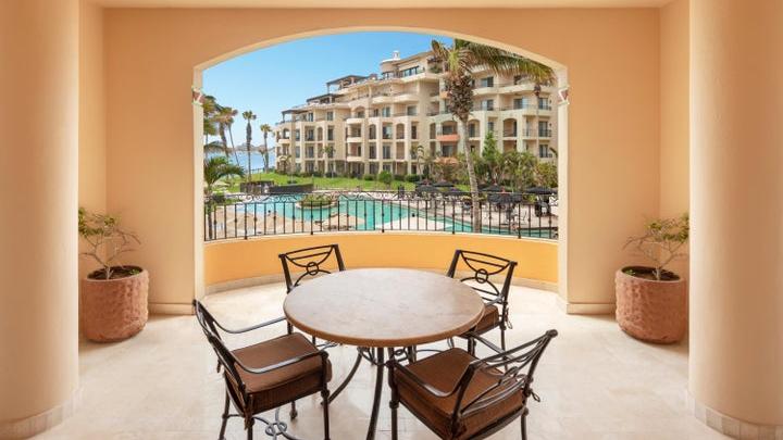 Located in Cabo San Lucas, this two-bedroom, three-bathroom oceanfront condominium is part of the Villa La Estancia...
