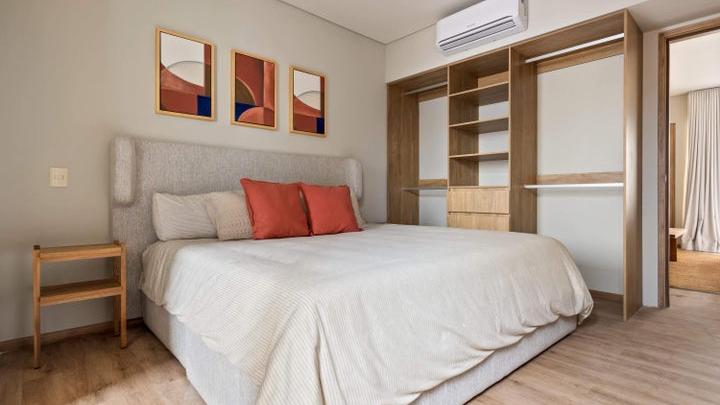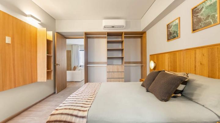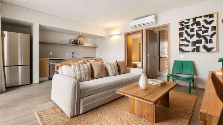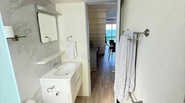 Upper-floor 2-bedroom condo with ensuite bathrooms, opening to soft morning light and calming pool views. The open...