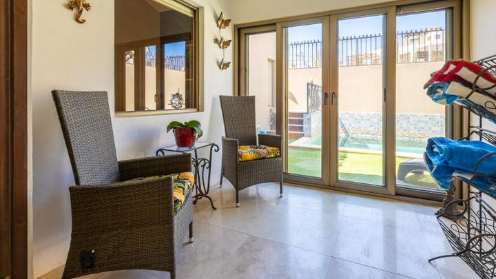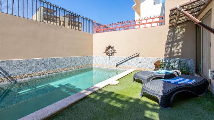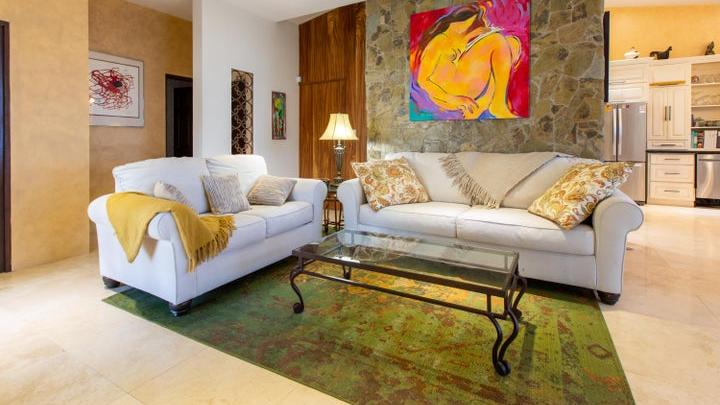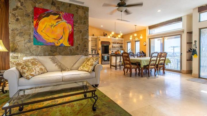 This beautiful fully furnished ocean view features a fusion of Spanish and modern home design with elegant stone an...