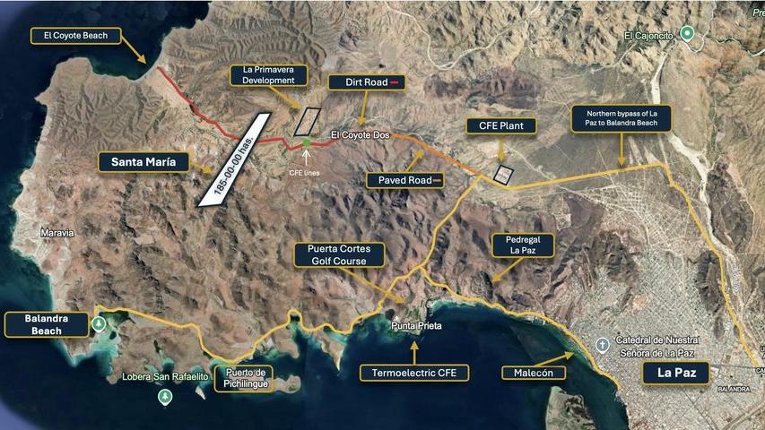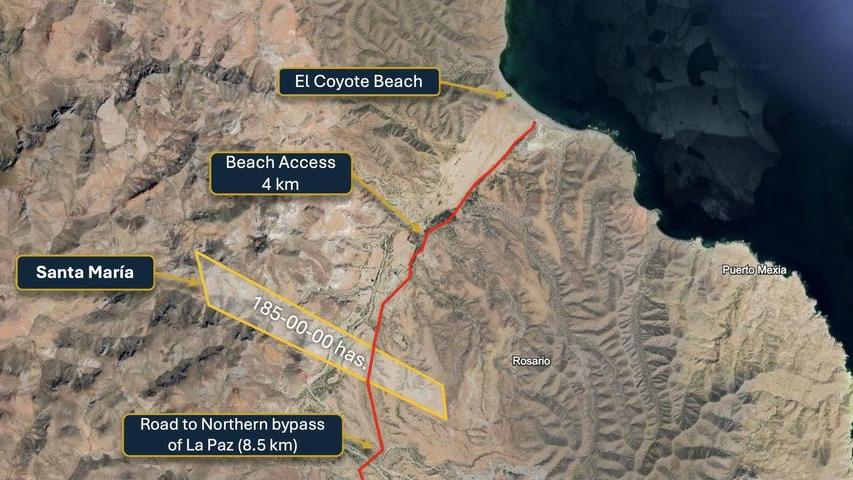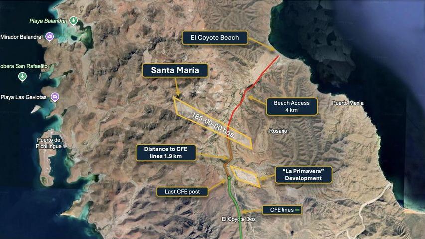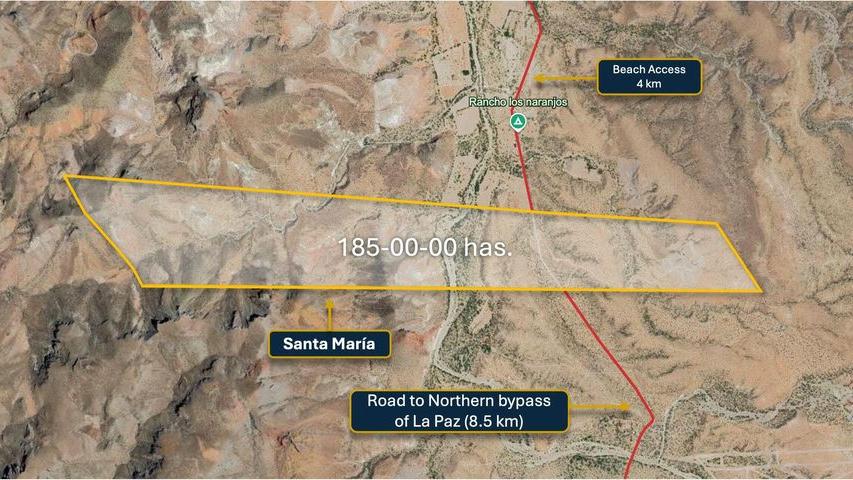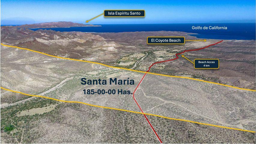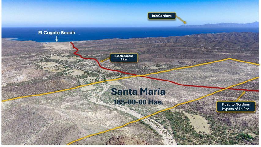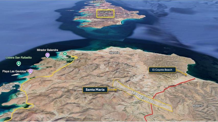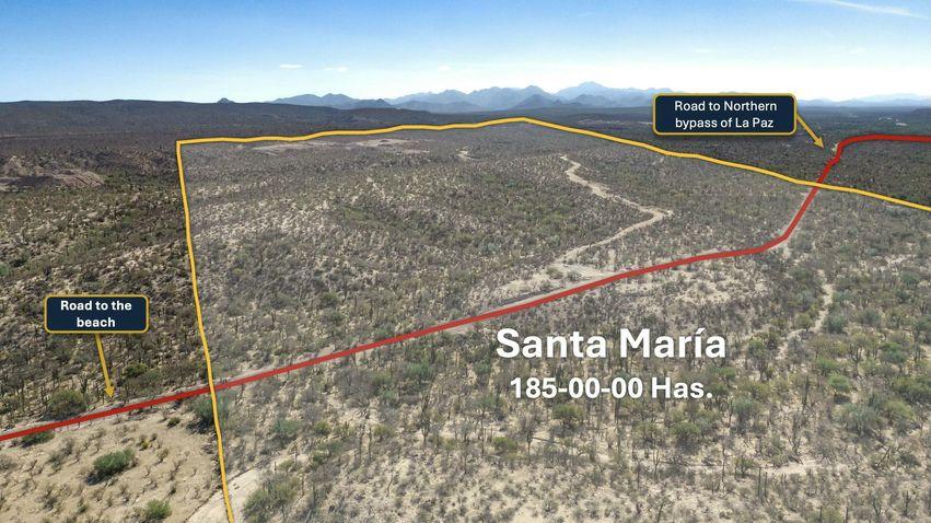 Santa Maria, a 185-hectare property strategically located in La Paz, Baja California Sur. It features CFE electrica...