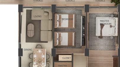 Unit 205 is a thoughtfully designed two-bedroom, two-and-a-half-bathroom residence on the second floor of Tatamichí...