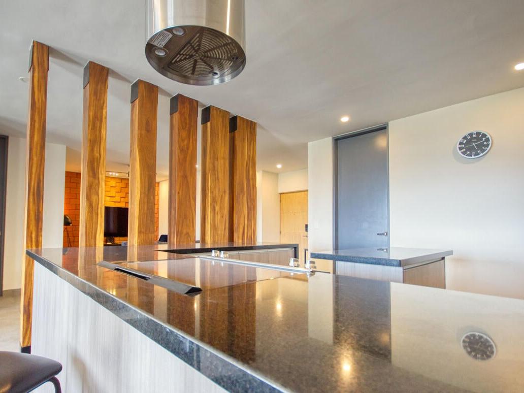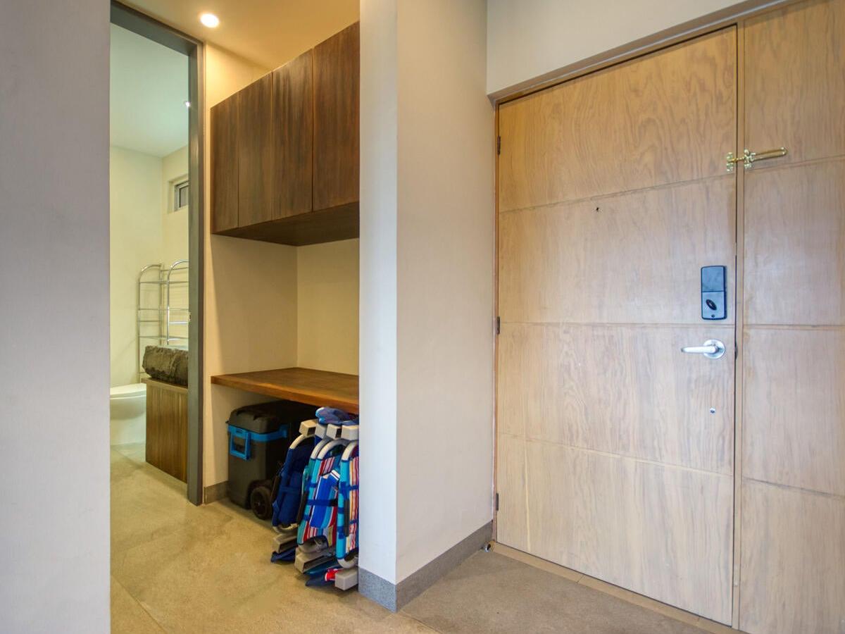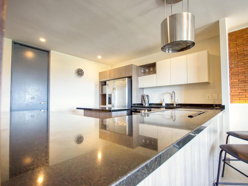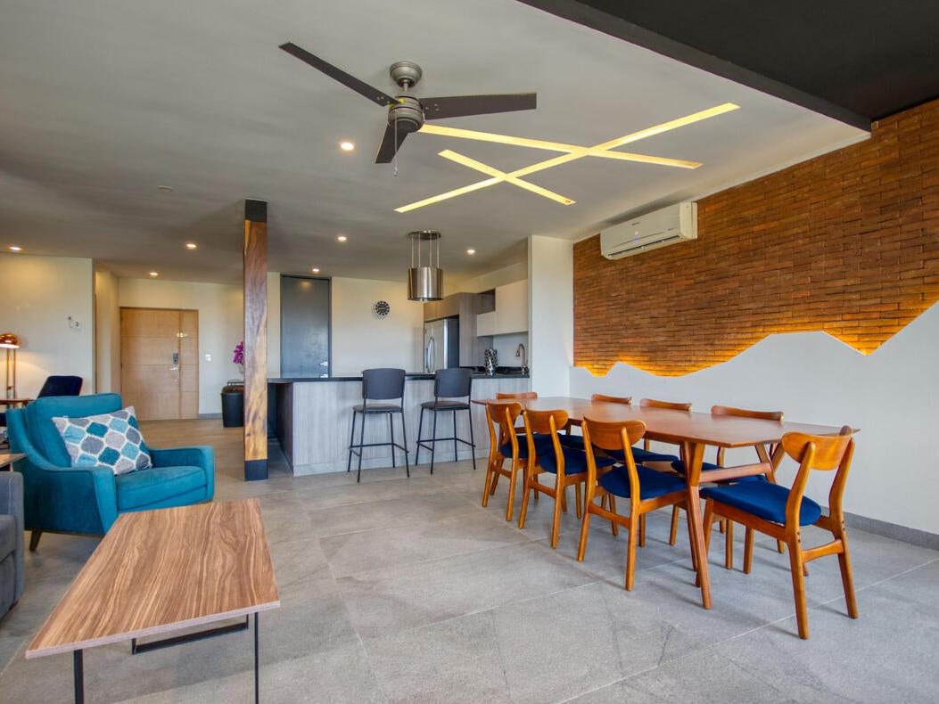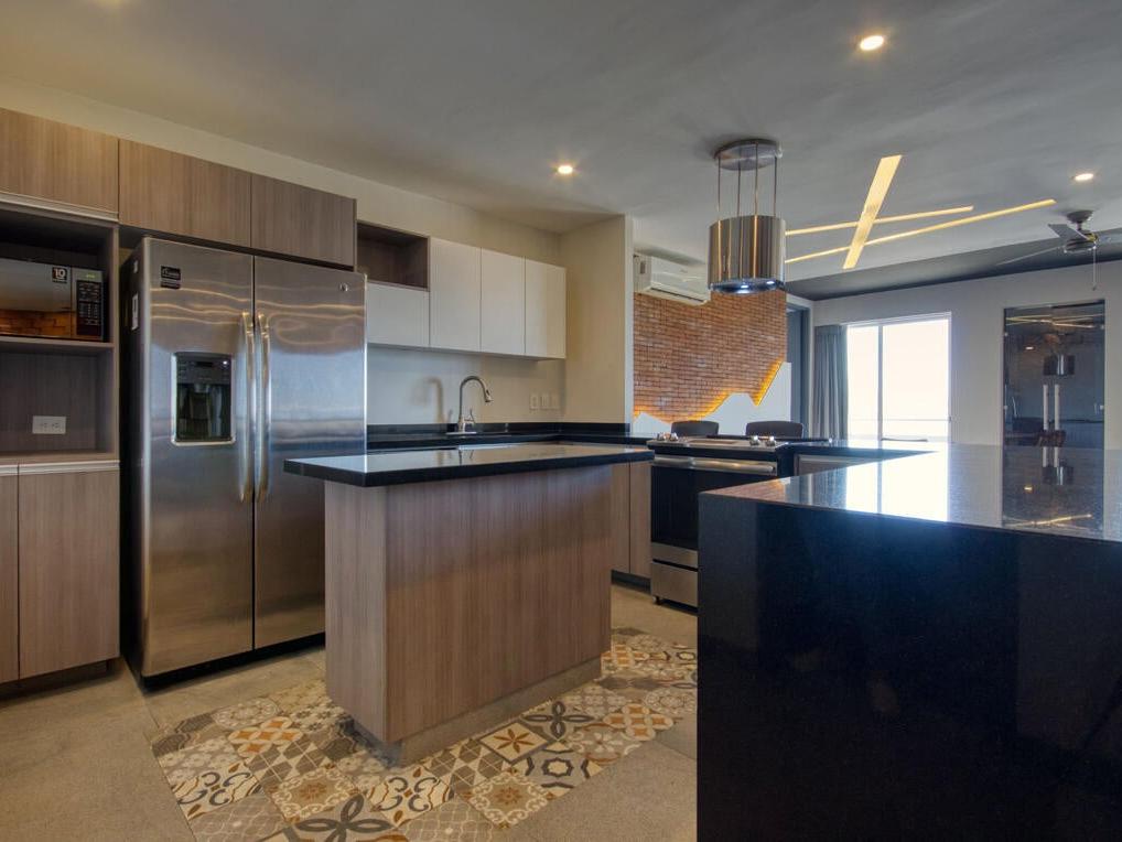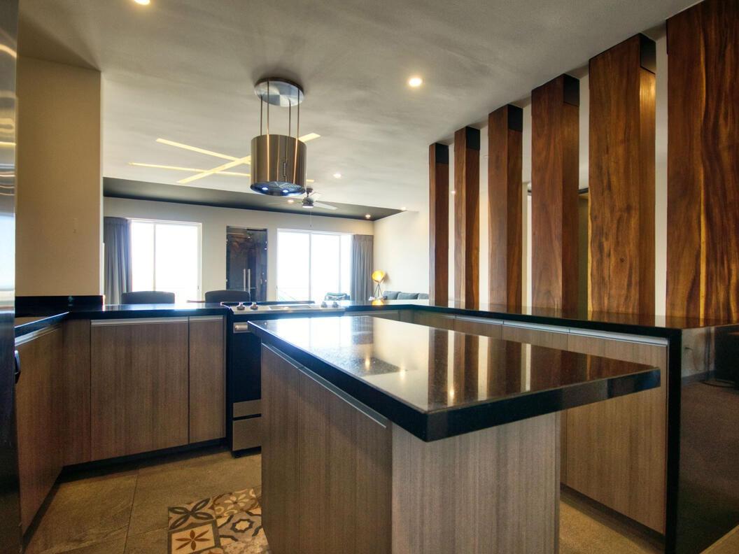 This exceptional 2-bedroom plus den penthouse is truly one of a kind. Expertly crafted by merging two adjacent units, it offers an expansive layout, stunning design, and a kitchen that will leave you in awe. Every detail has been meticulously curated, from the full in-suite laundry and spacious walk-in master bedroom ensuite to the unique display nook and chic accents throughout. With the capacity to comfortably sleep eight and its prime location within walking distance to Medano Beach, this property has tremendous rental potential. Additional features include tandem parking for two vehicles and access to a rooftop pool just one floor above. This is a fully turnkey rental home, ready for immediate enjoyment or investment.