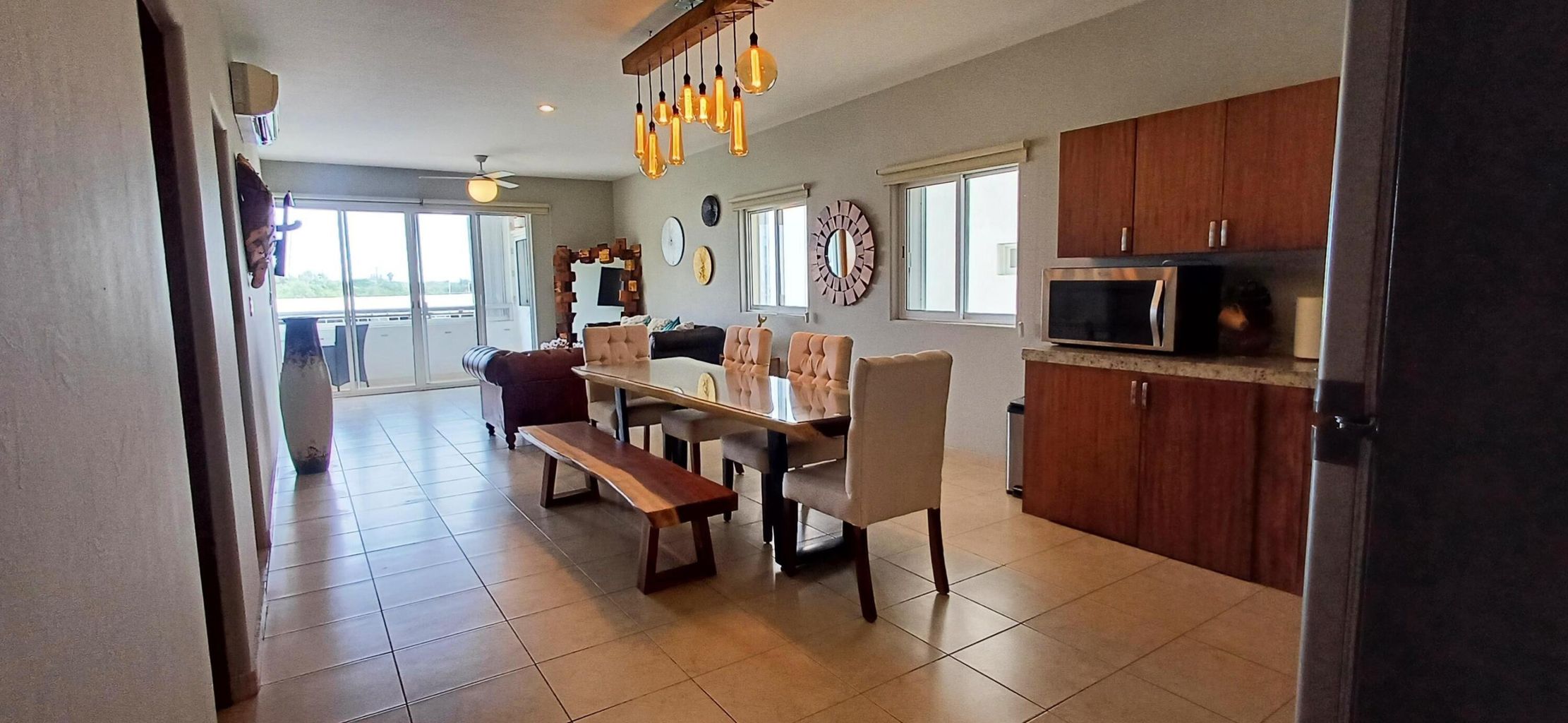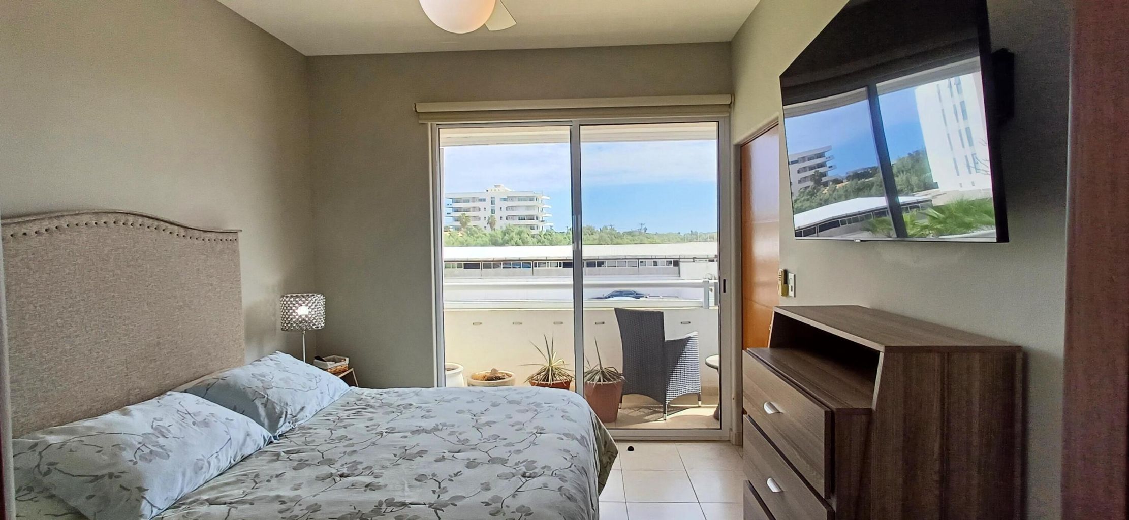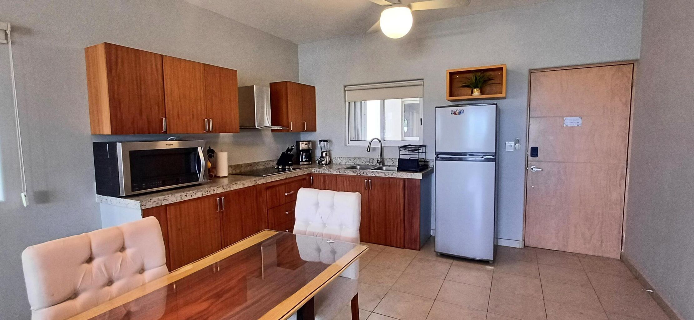 A well-priced and beautiful two-bedroom condo turn-key in a prime location, walking distance to the beach and just minutes from Medano Beach and downtown Cabo San Lucas! Unit 205B is on the second floor and features air conditioning and ceiling fans in every room, two full bathrooms, an open kitchen and living area with a sizeable parota wood table, and a large-screen TV. The unit also includes a private balcony with a table and chairs, perfect for relaxing. Recently upgraded with hurricane shutters, this corner unit offers added protection and peace of mind. Located in a gated community with 24-hour security, residents can access a rooftop pool with incredible views.