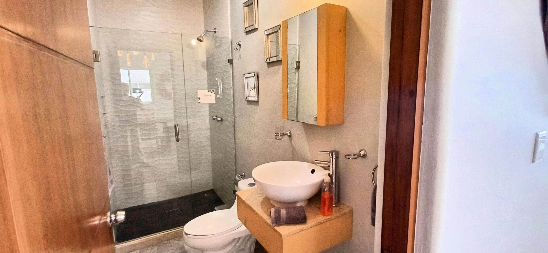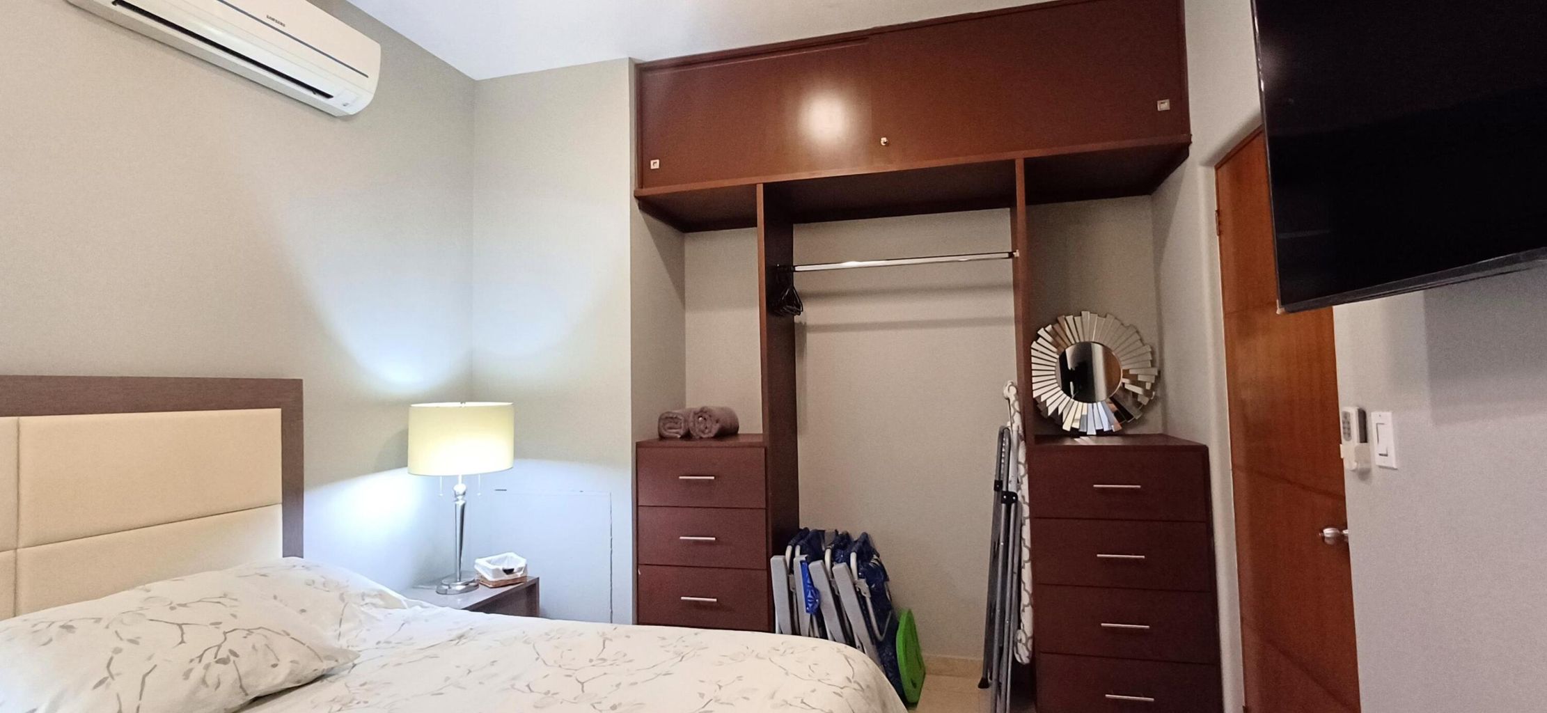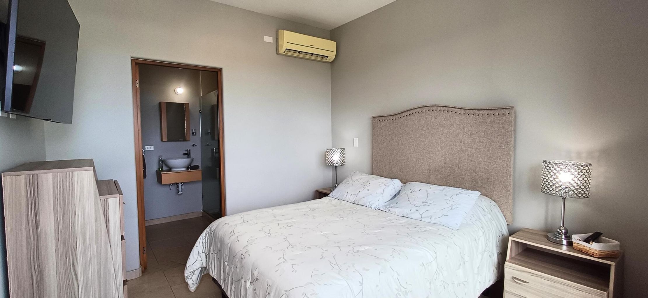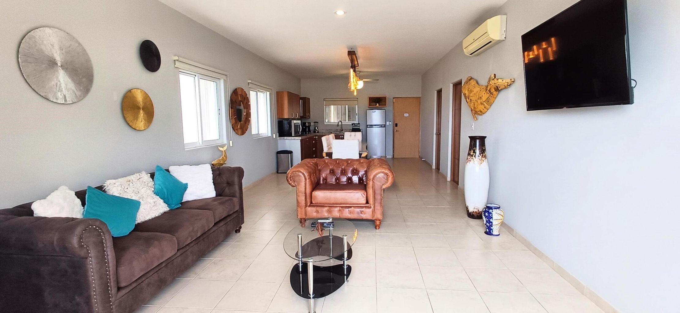 A well-priced and beautiful two-bedroom condo turn-key in a prime location, walking distance to the beach and just minutes from Medano Beach and downtown Cabo San Lucas! Unit 205B is on the second floor and features air conditioning and ceiling fans in every room, two full bathrooms, an open kitchen and living area with a sizeable parota wood table, and a large-screen TV. The unit also includes a private balcony with a table and chairs, perfect for relaxing. Recently upgraded with hurricane shutters, this corner unit offers added protection and peace of mind. Located in a gated community with 24-hour security, residents can access a rooftop pool with incredible views.