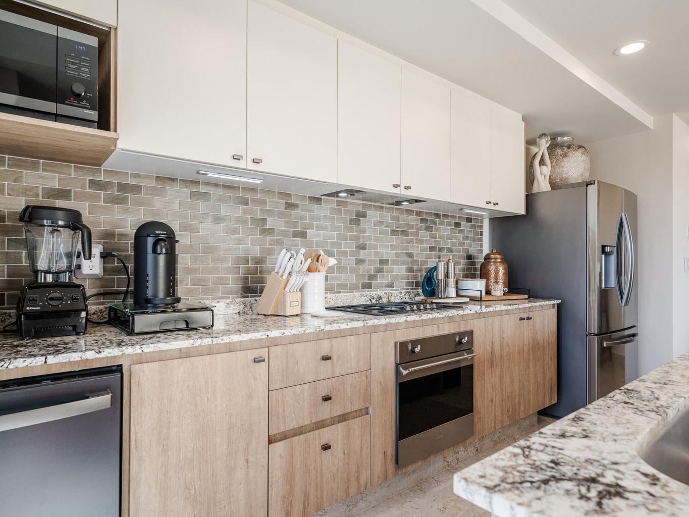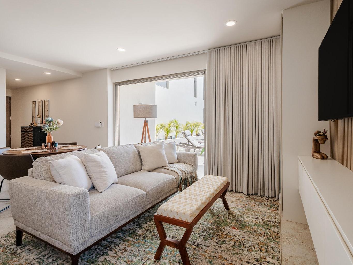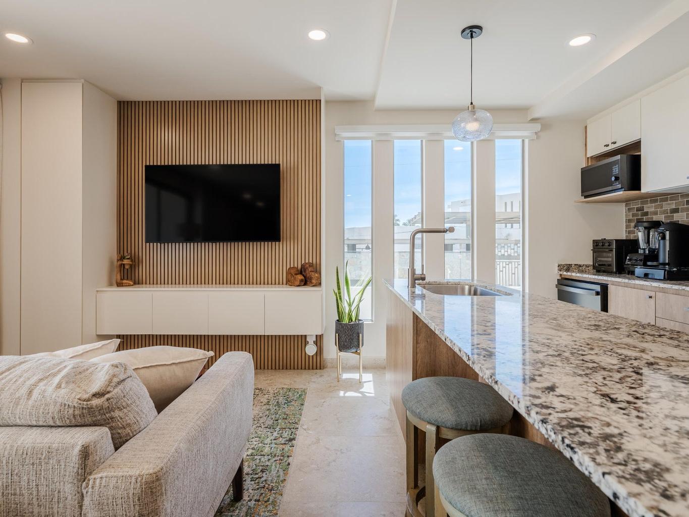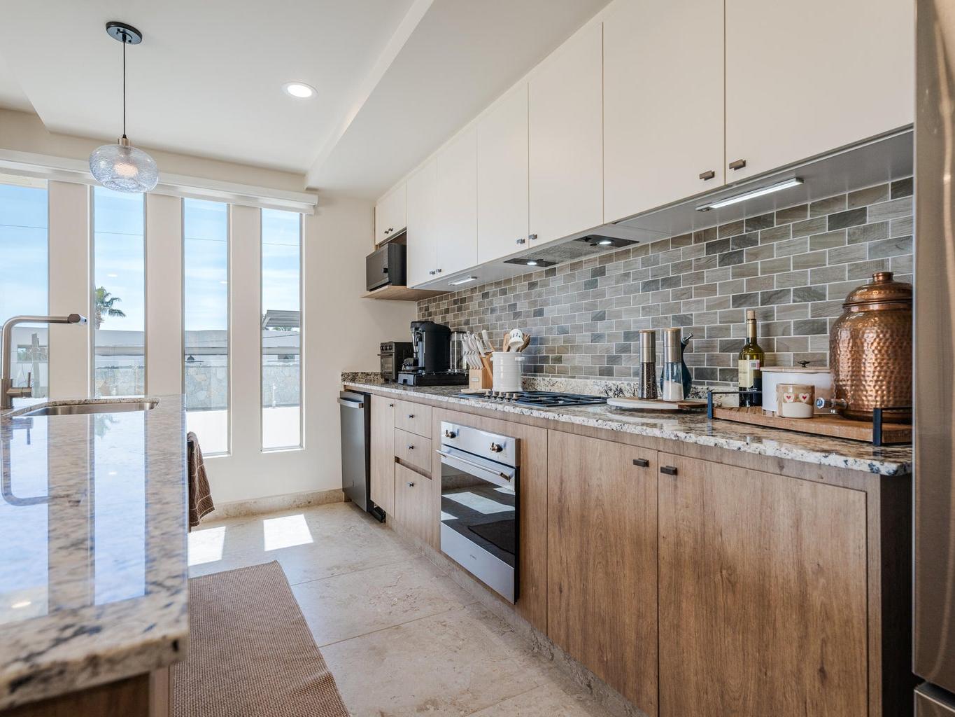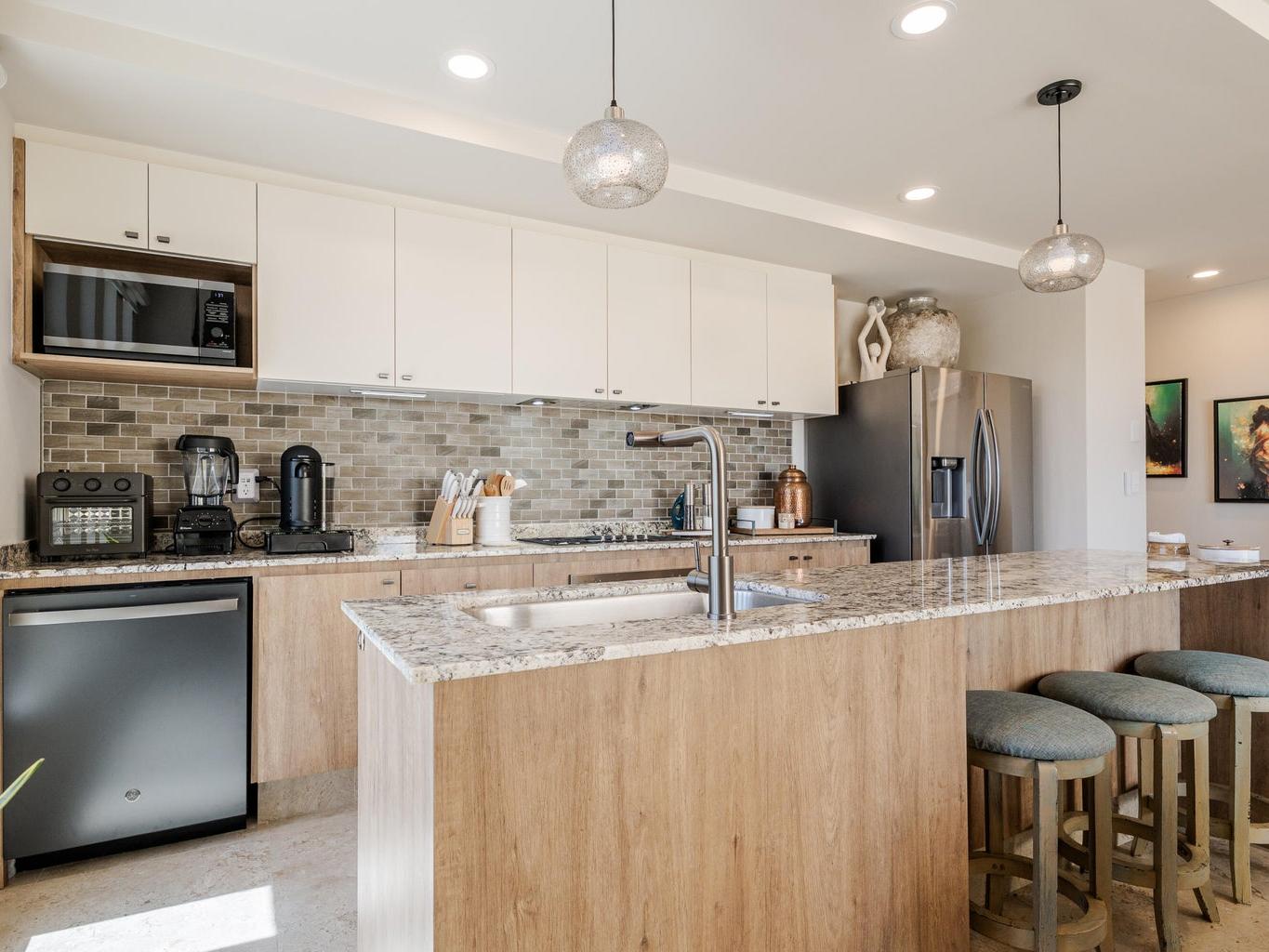 Gorgeous Contemporary 2 Bedroom Turn Key Pent Garden with Private Pool in Cabo San Lucas! Located in the brand new and modern community of Cabo Costa, this professionally furnished and beautifully decorated, 1,635 Sqft condo offers a great functional layout that includes 2 bedrooms with ensuite bathrooms, a half bath with laundry room and an amazing private terrace with pool, sun deck and lounge area. Offered as you see in pictures plus 2 covered parking spaces and large storage bodega. Gated and guarded 24/7, the community includes amenities such as Club House, infinity (heated) pool, gym, sundeck, snackbar, office work space with incredible views and more. Located 5 to 10 minutes from superstores, restaurants, swimmable beaches and Downtown Cabo. Great rental income generating property!