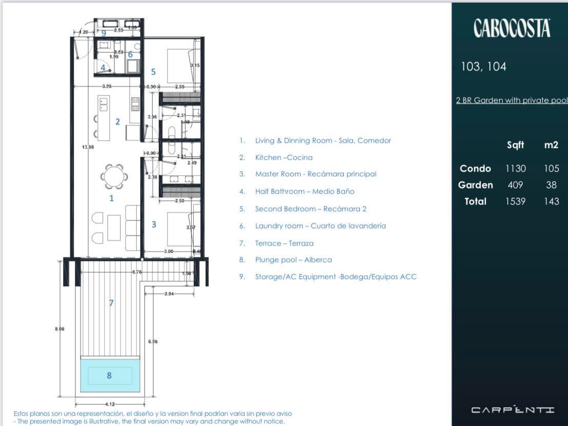 This stunning 2-bedroom condo in Cabo San Lucas, located on the ground level with private patio and dipping pool included and storage), will offer breathtaking views across Sea of Cortez. Cabo Costa is the newest community that blends its arquitectural designs with nature. This unit has been meticulously designed and comprises two end-suite bedrooms. The property interior is designed in neutral tones to create a modern, welcoming and luxurious home yet retaining its original features. Amenities such as a Club House, Infinity pool, Gym, sundeck, Kids area, Wetbar, Snackbar & Massage area. Call me for more details