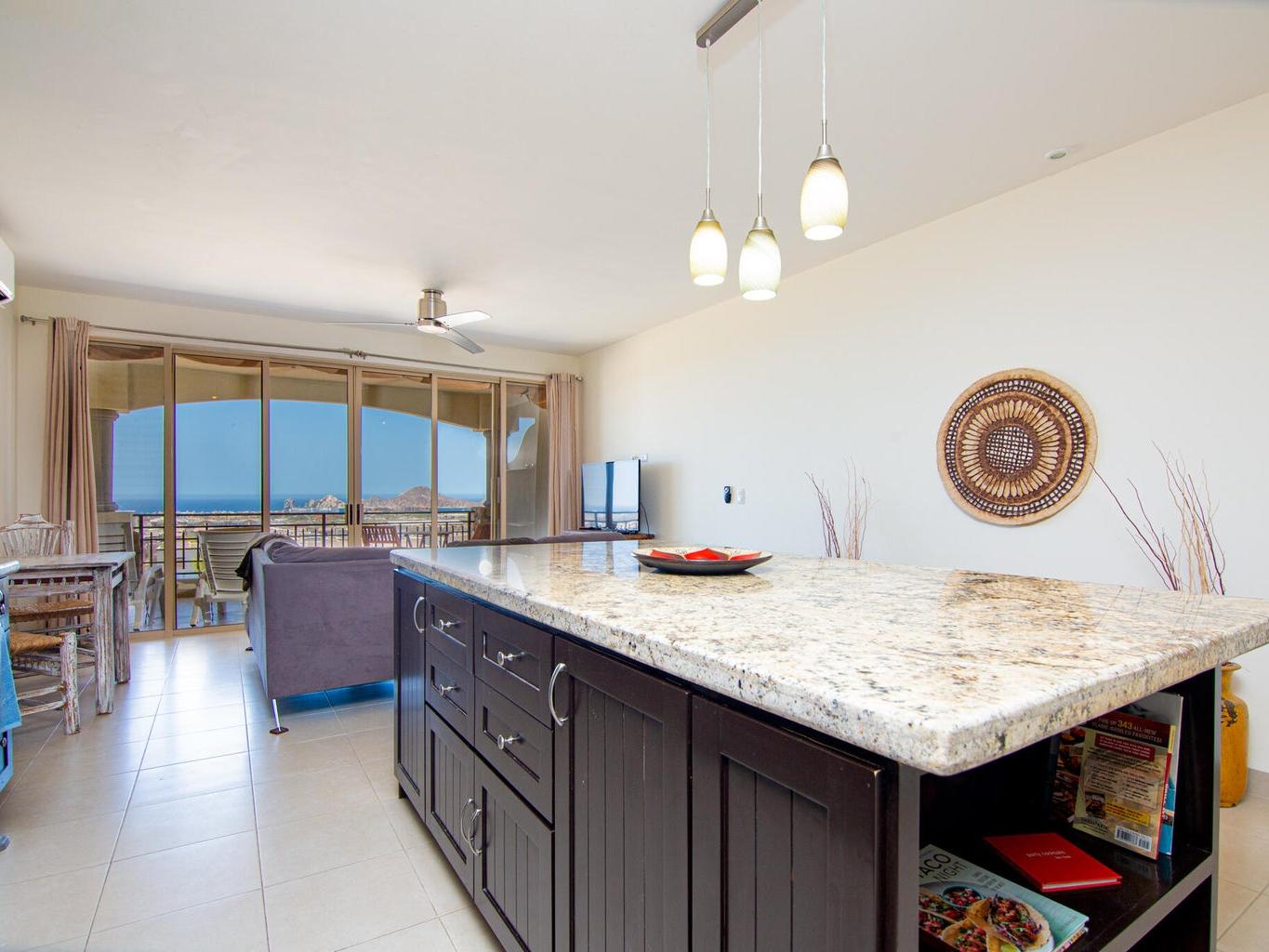Bright and airy 3 bedroom, 2 bathroom condo in Cabo Del Mar Ecopark. Amazing ocean and arch views from the living area, primary bedroom and patio. Enjoy spectacular sunrises and in the evening the beautiful city lights. The primary bedroom has sliders to maximize the view. Also a tub/shower combo, double vanity and walk in closet. Plenty of storage.