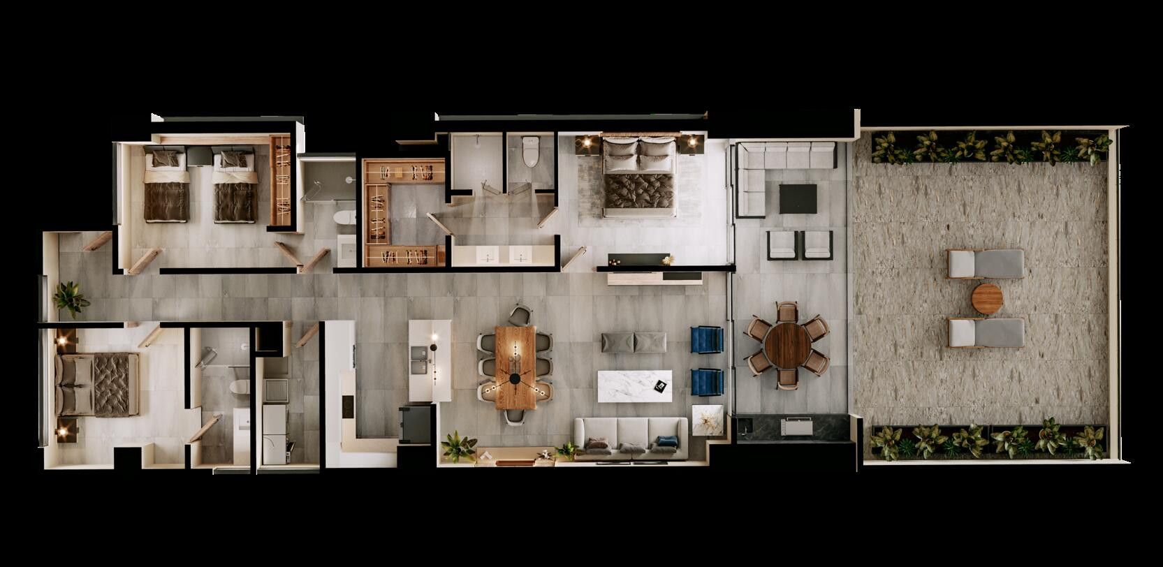 Experience luxury living at its finest in this stunning Cabo San Lucas condo by Grupo Quadro. This 3-bedroom, 2-bath residence boasts panoramic views of the city and ocean, featuring an open-concept layout with high-end finishes, quartz countertops, and top appliances. On the ground floor, enjoy a spacious terrace complete with a jacuzzi and garden, ideal for relaxing with family and pets. Take advantage of our exclusive ground floor promotion, ensuring the best privacy and outdoor living. Amenities include 2 infinity pools, 2 gyms, paddle and pickleball courts, fire pits, a kids' playground, and a multipurpose palapa. Two underground parking spaces and storage are included. Conveniently located near hospitals, schools, and shopping, with 24/7 controlled access.