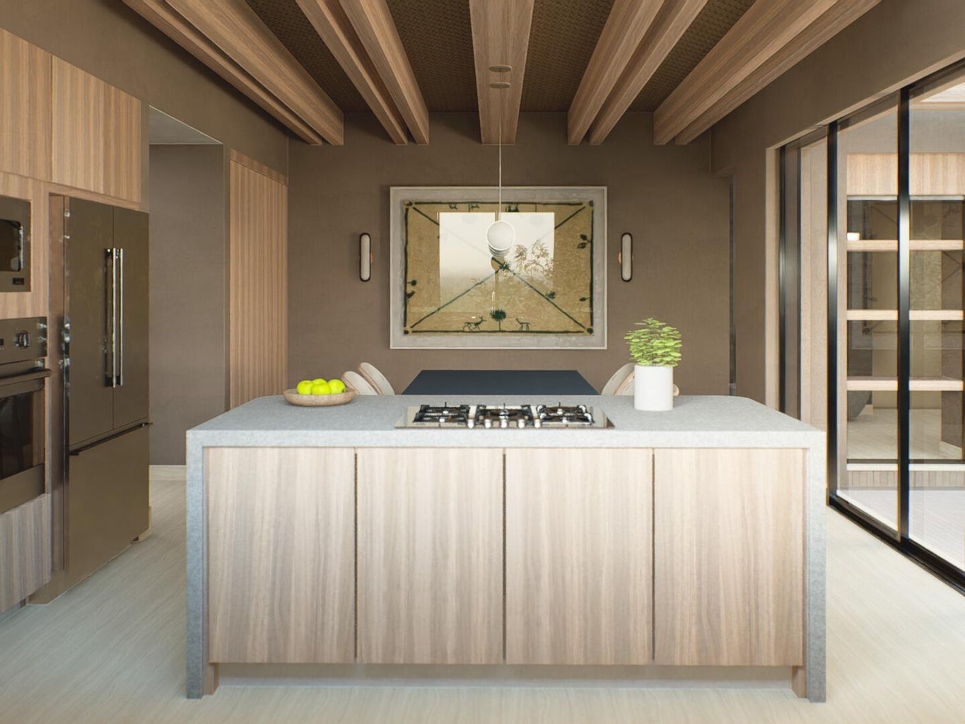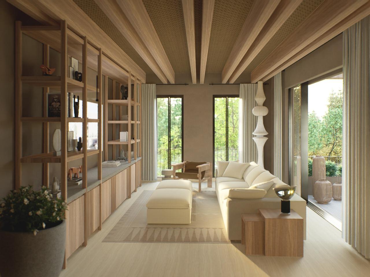 Thoughtfully designed with functionality and comfort in mind, this 2-bedroom condo features a vestibule, a full kitchen, a comfortable living area, and two full bathrooms, along with a convenient powder room for guests. The condo's interiors are curated by DeMiguel Studio, providing an elegant, refined living space that connects seamlessly with the