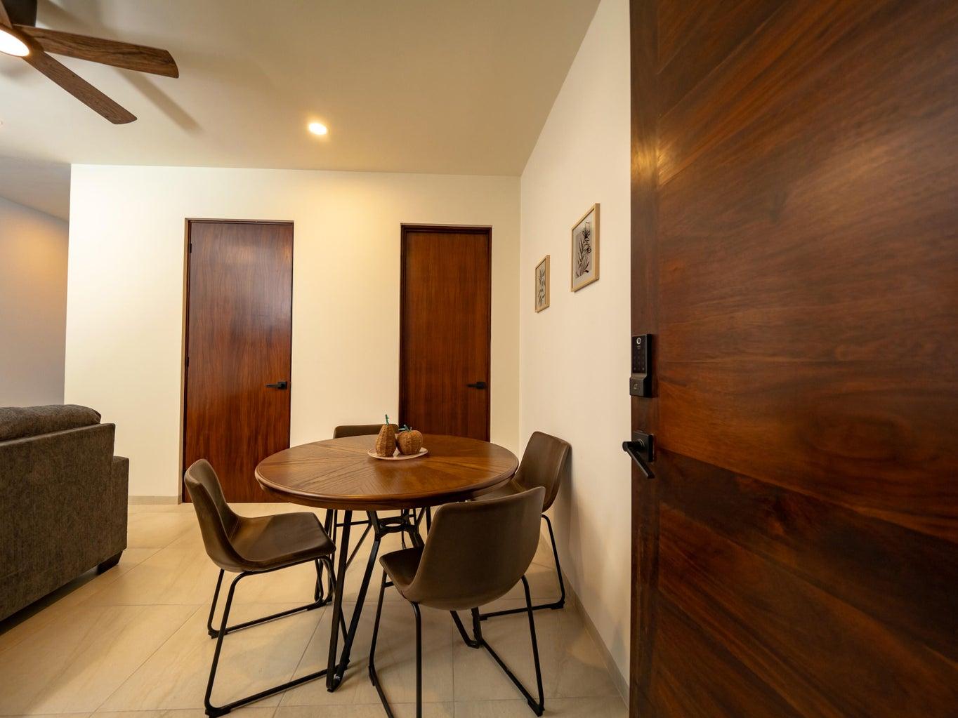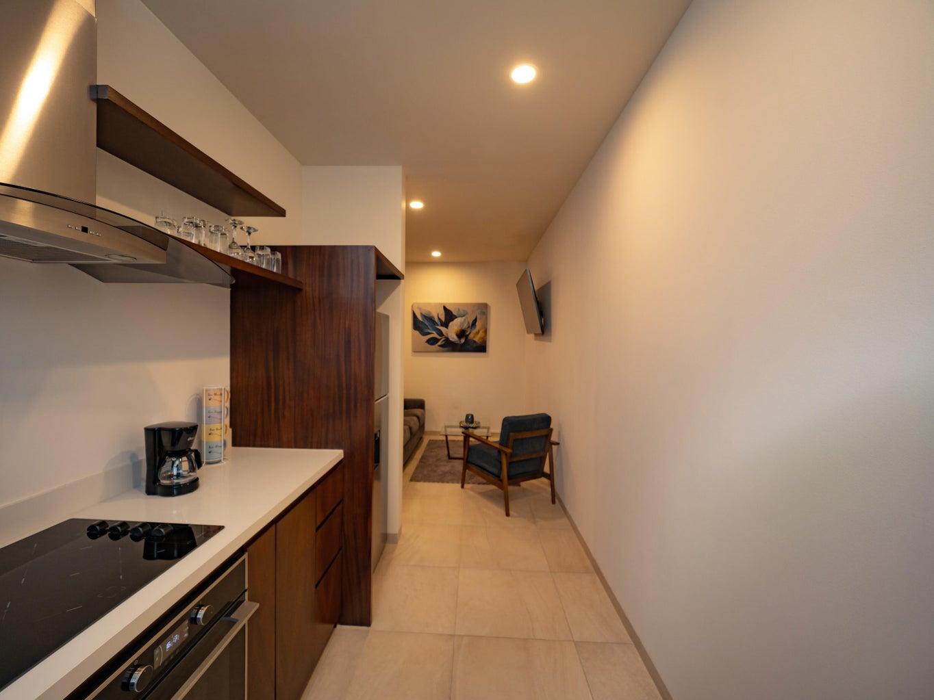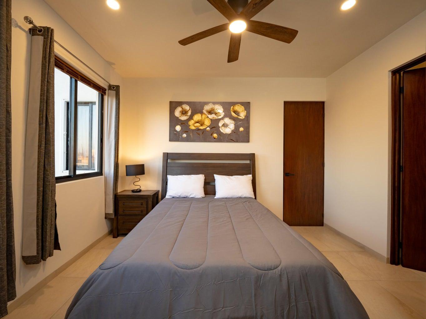 Fully furnished 1-bed, 1-bath condo in the gated Vista Azul community. This bright and modern unit features an open-concept layout, a fully equipped kitchen, and a comfortable bedroom with ample storage. Enjoy your own private rooftop terrace with built-in BBQ, lounge area, and an additional half-bath — ideal for entertaining or relaxing under the stars. Building amenities include a swimming pool, communal BBQ area, and secure parking. Conveniently located just minutes from Cabo's beaches, restaurants, shops, and nightlife. Turnkey and move-in ready — perfect as a primary residence, vacation home, or rental.