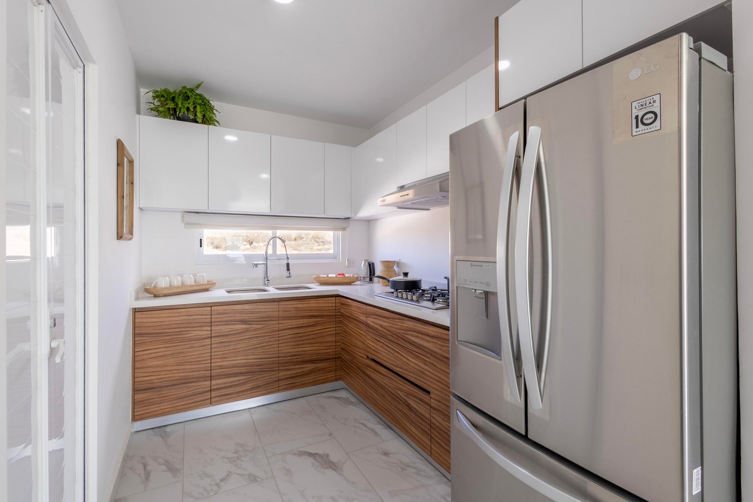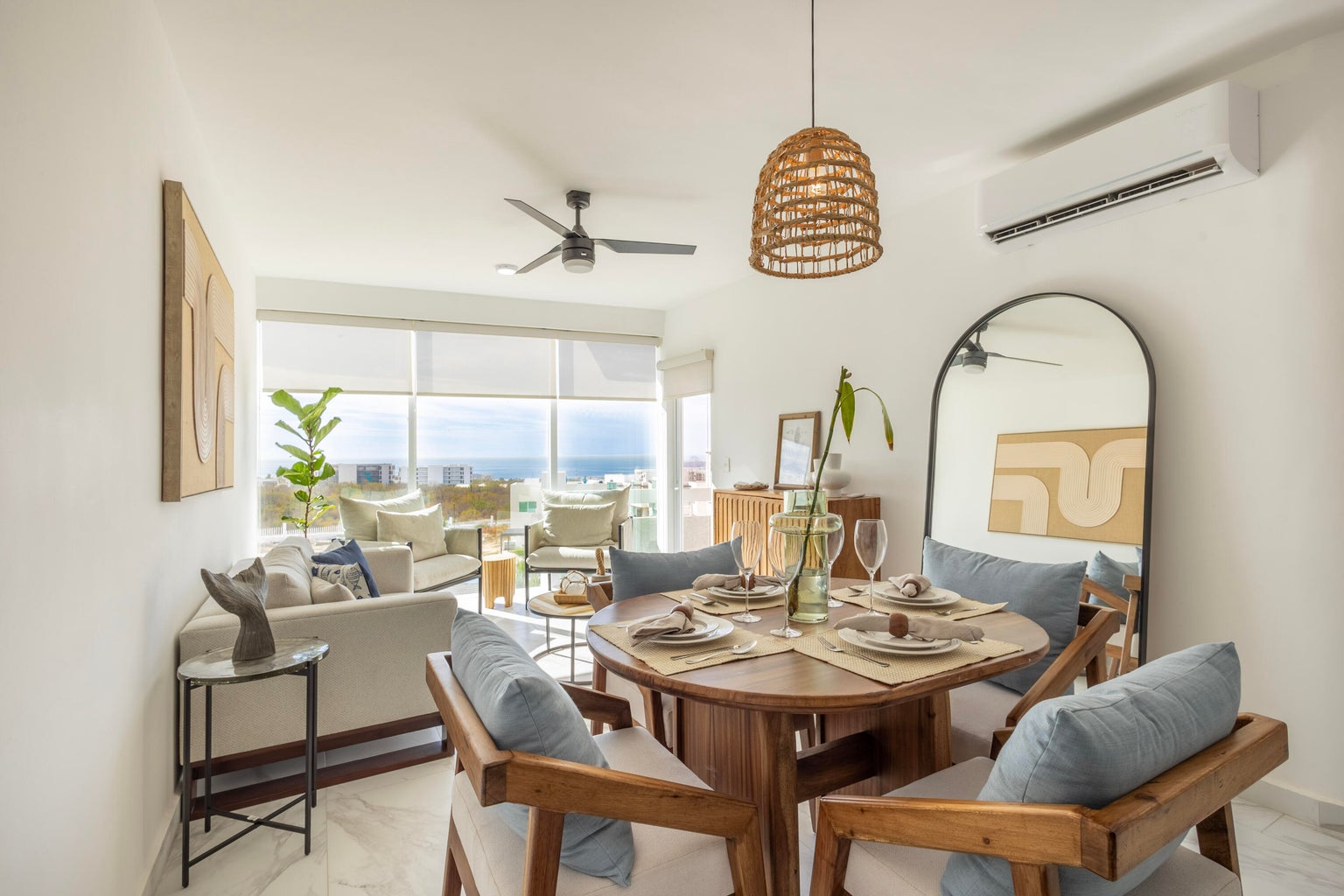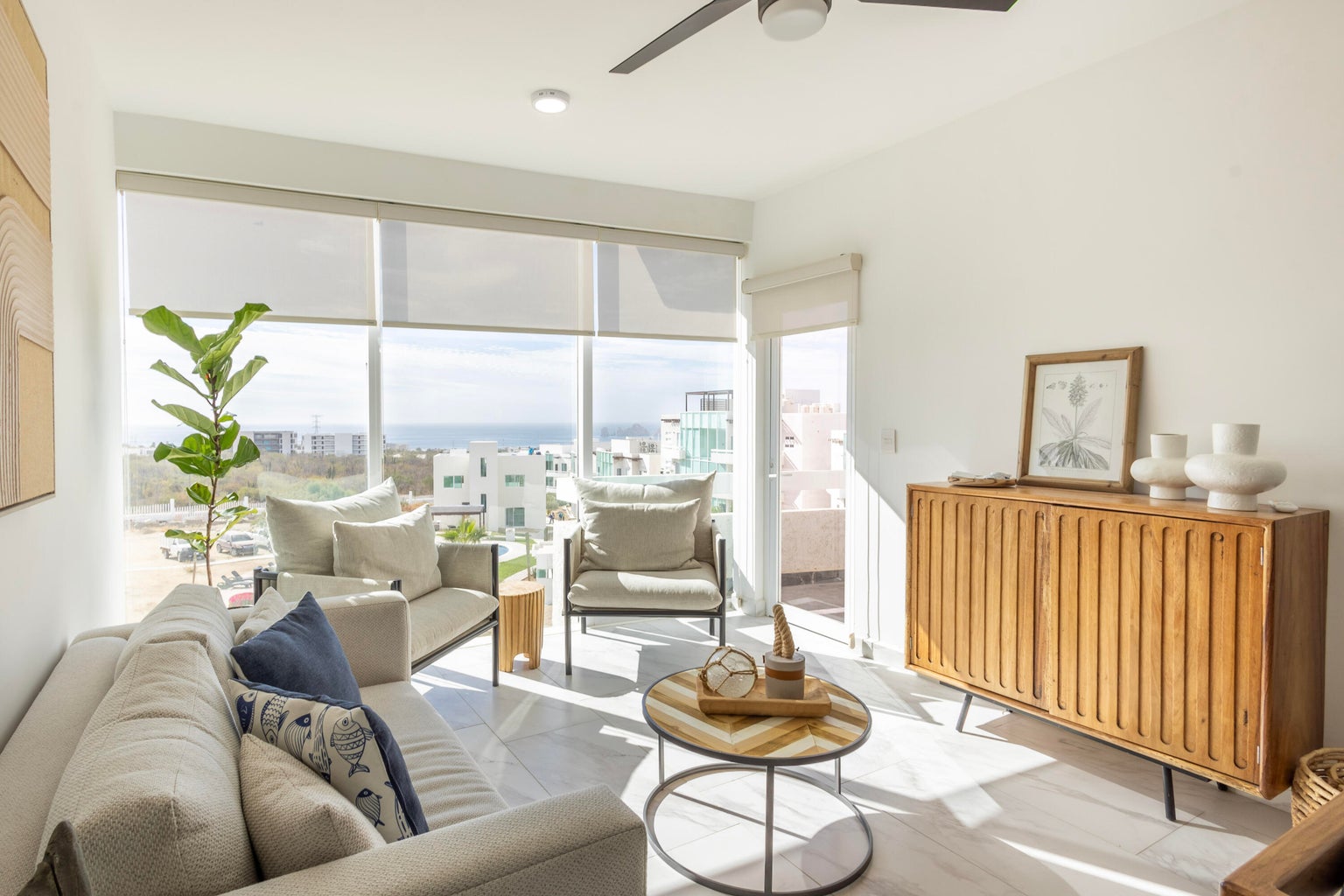 Smart Investment in a prime community in Cabo!!!! Top-floor condo in T28 Luna del Tezal with 2 bedrooms, 2 full bathrooms, equipped kitchen, laundry room, 23 m2 equipped ROOFTOP and one parking space. This condo is in a community with three swimming pools, a clubhouse with gym, co-working and multiple uses room (installed in February 25), gated entry and 24/7 security, 2700 cubic meter water tank (unique in the area). Near to restaurants, shops, supermarket, schools, 20 mins drive to the beach, 15 mins to the closest golf court.