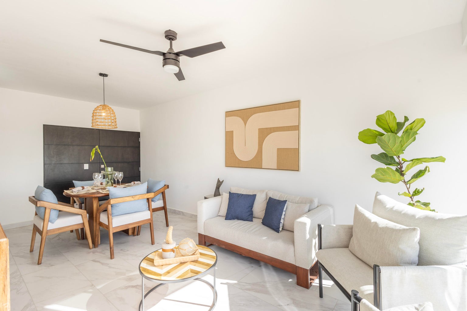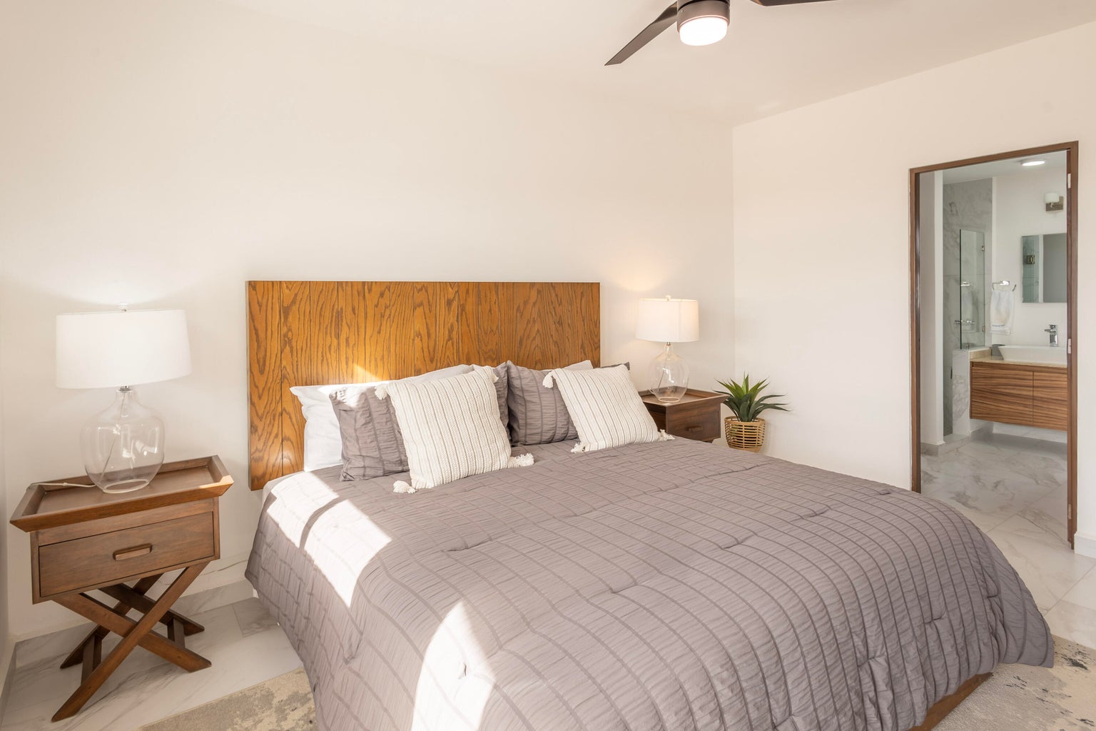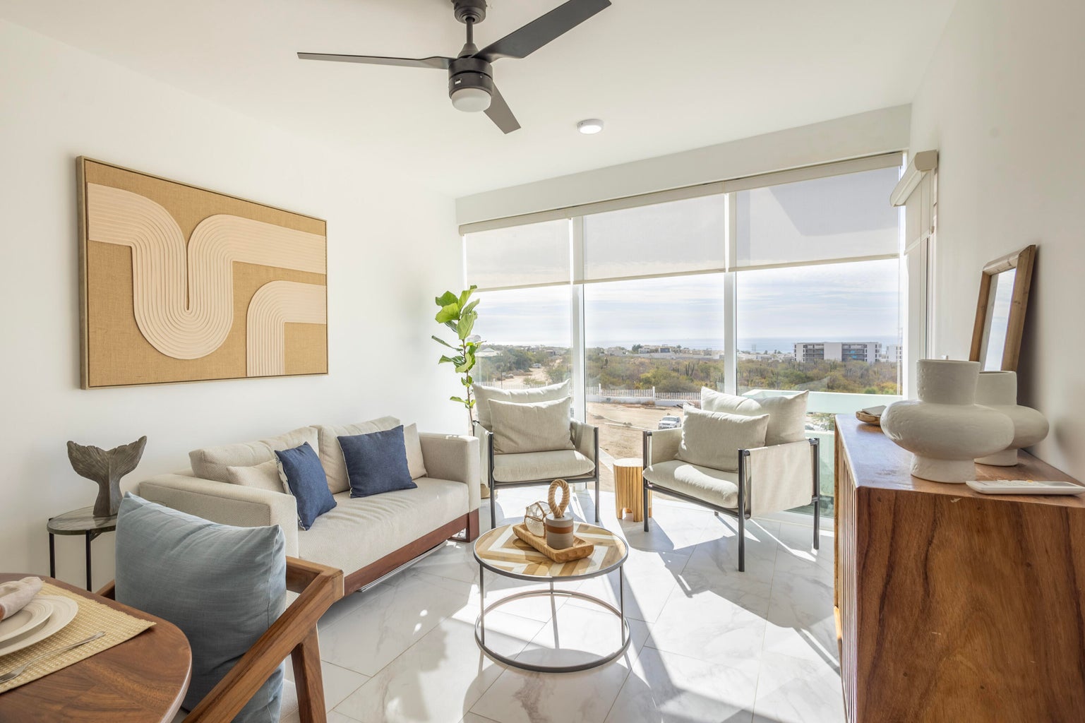 Smart Investment in a prime community in Cabo!!!! Top-floor condo in T28 Luna del Tezal with 2 bedrooms, 2 full bathrooms, equipped kitchen, laundry room, 23 m2 equipped ROOFTOP and one parking space. This condo is in a community with three swimming pools, a clubhouse with gym, co-working and multiple uses room (installed in February 25), gated entry and 24/7 security, 2700 cubic meter water tank (unique in the area). Near to restaurants, shops, supermarket, schools, 20 mins drive to the beach, 15 mins to the closest golf court.