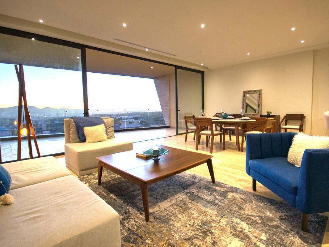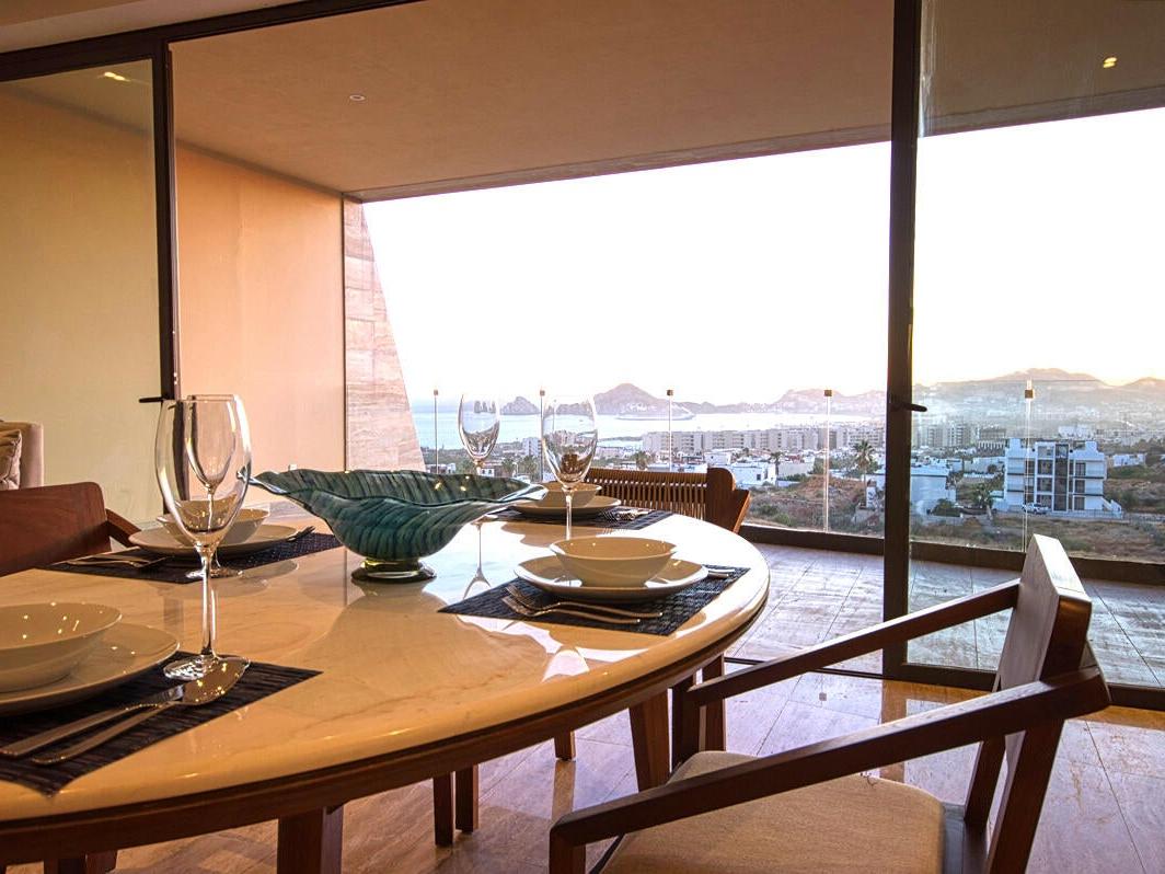This exquisite 2-bedroom penthouse condo offers a lifestyle of sophistication and comfort. Situated in one of Cabo's most sought-after locations, this residence boasts breathtaking views of the iconic Cabo San Lucas Arch, resort like amenities and quick access to all the key shopping areas. The open-concept living space is bathed in natural light, with floor-to-ceiling sliding doors. The central kitchen is perfect for culinary enthusiasts and social gatherings. The two spacious bedrooms offer serene retreats, each with its own en-suite bathroom and generous closet space. But the true jewel of this penthouse is the rooftop terrace, a private sanctuary where you can soak in the sun, relax in the hot tub (needs heater), or simply savor a glass of wine while gazing at the view.