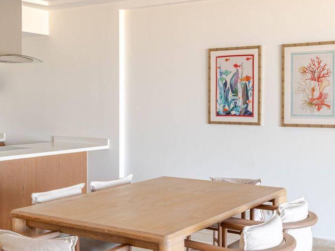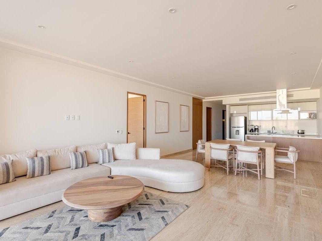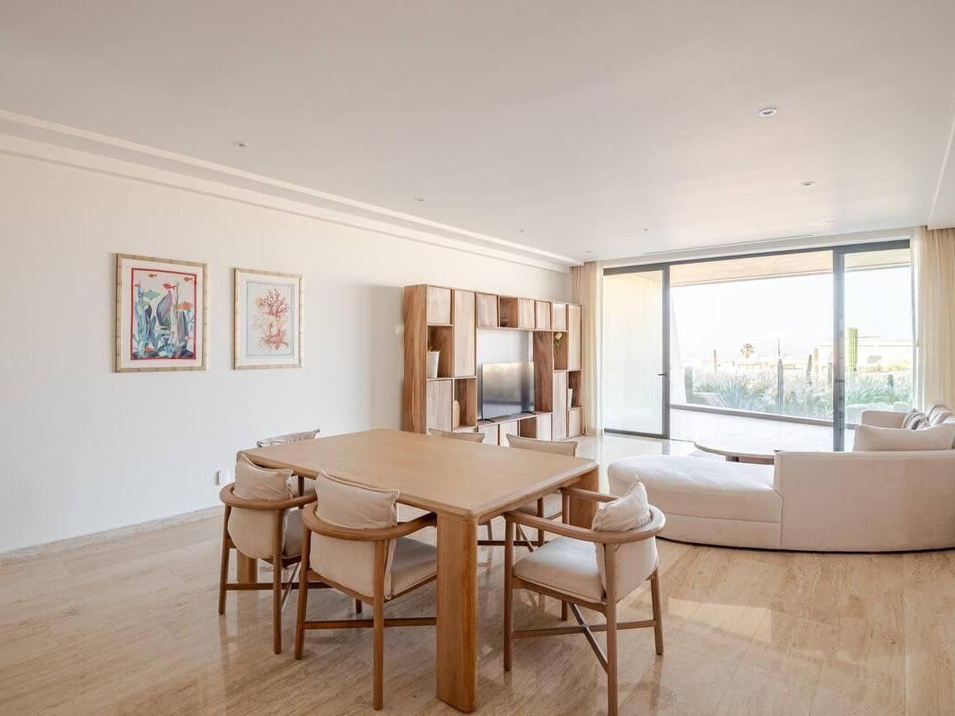 Furnished apartment in Mistiq Los Cabos, 3 bedrooms, 3.5 bathrooms, with views of the Cabo San Lucas Arch and sea. Luxury amenities: gym, 2 pools, 2 jacuzzis, multipurpose room, 24/7 security. 2 underground parking spaces. Prime location with street under construction, near plazas and high-end projects. Perfect investment opportunity!