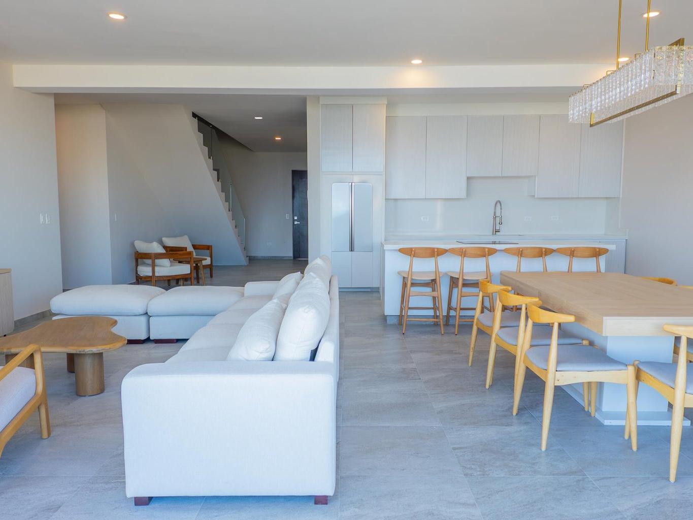 A rare fully furnished 4-bedroom condo with designer furniture in Cabo San Lucas that redefines coastal living. The spacious residence features an expansive private rooftop terrace with breathtaking ocean views — perfect for entertaining, relaxing, and enjoying Cabo's magical sunsets.