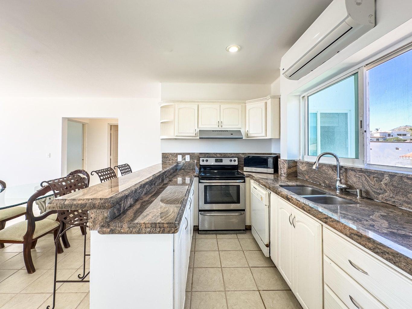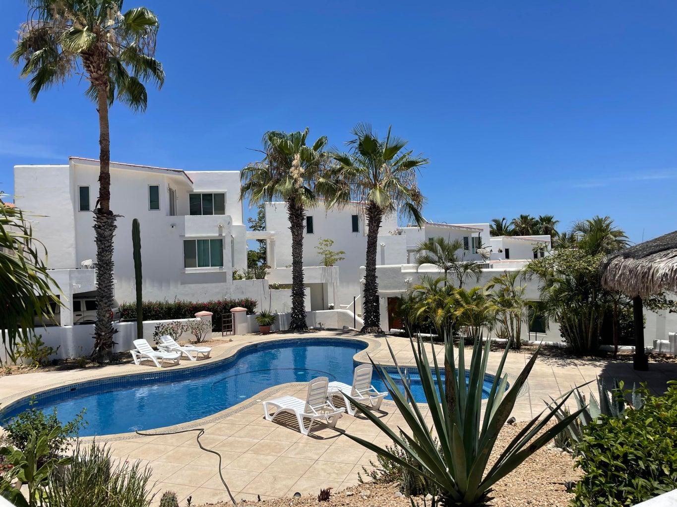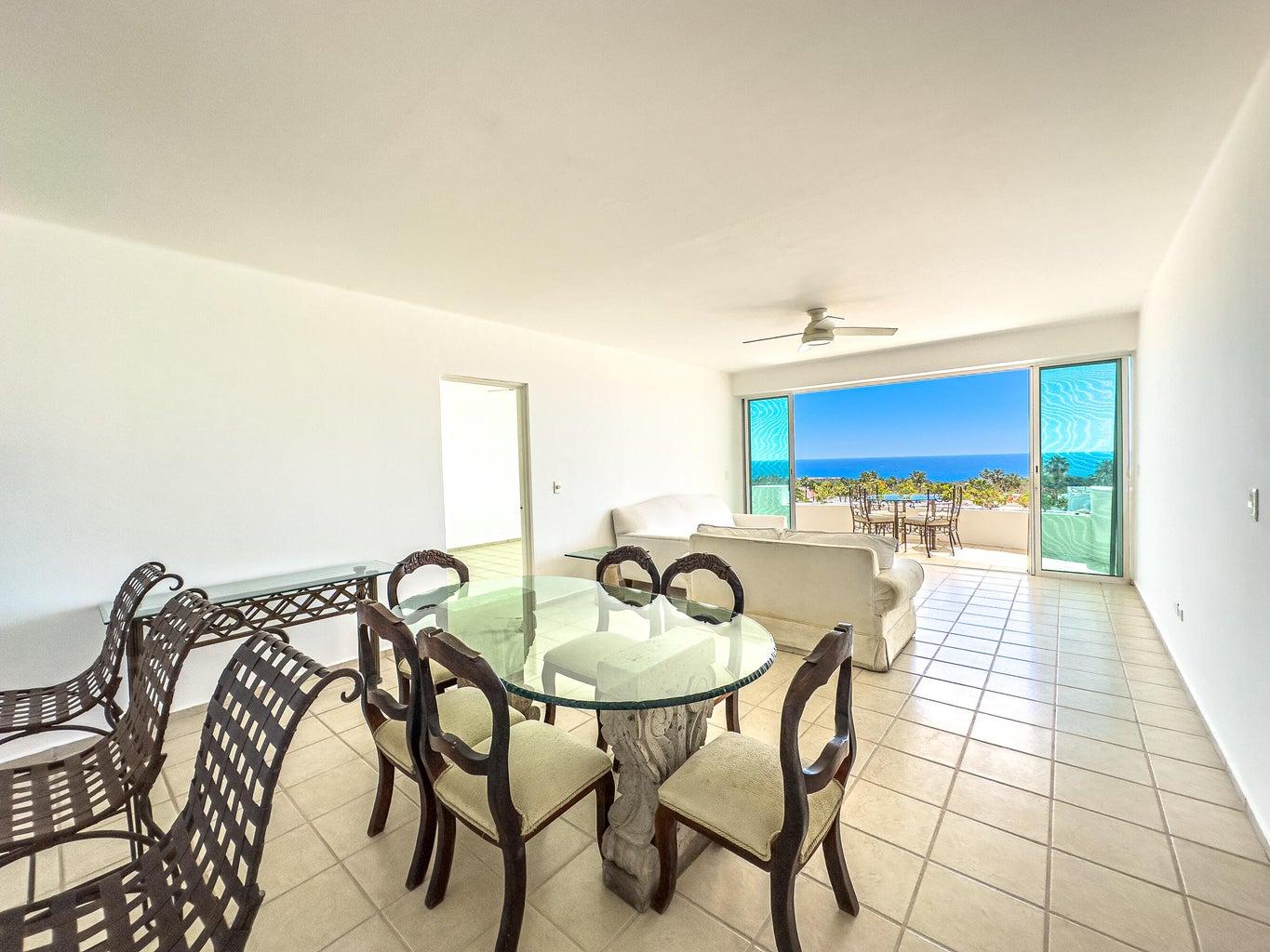 Welcome to a 3 bedroom, front ocean view in Puerta de Hierro Discover your perfect retreat in Cabo San Lucas! This unit offers the ideal blend of comfort and tranquility, set in the only multi-story building within a secure, gated community. Here's what makes this property stand out: Key Features: Spacious Layout: 1,614 sq. ft. of living space with 3 bedrooms and 2 full bathrooms. Stunning Unblockable Ocean Views: Enjoy unobstructed panoramic views of the Cabo San Lucas Arch from your private deck/terrace. Brand New Water Cistern: Ensuring reliable water access. Fully equipped with air conditioning, electric appliances (dryer, microwave, range, refrigerator/freezer, washer), and ceramic tile floor.