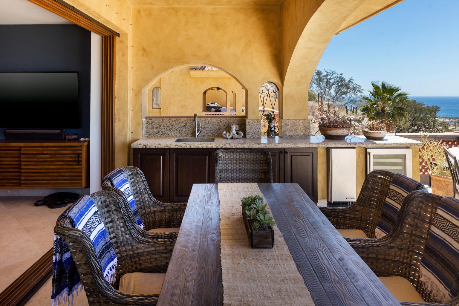 elcome to the quiet, tranquil lifestyle in this gorgeous Tuscan style complex known for its high-end finishings and unbelievable views. ElCielito is a one-of-a-kind neighborhood within the private gated community of Rancho Paraiso. This gorgeous unit offers deluxe furnishings, waterfiltration/softener for the entire unit, 17kw brand-new generator, oversized 2-car garage, and one of the most sought-after patios in the entire complex! Incredible views of the famous arch, (lands end) and harbor, as well as spectacular nighttime city views. Enjoy some the most amazing sunsets from this lovely unit. Just 5 minutes to shopping, beach access, restaurants and all the Cabo happenings. You really need to see it in person!!