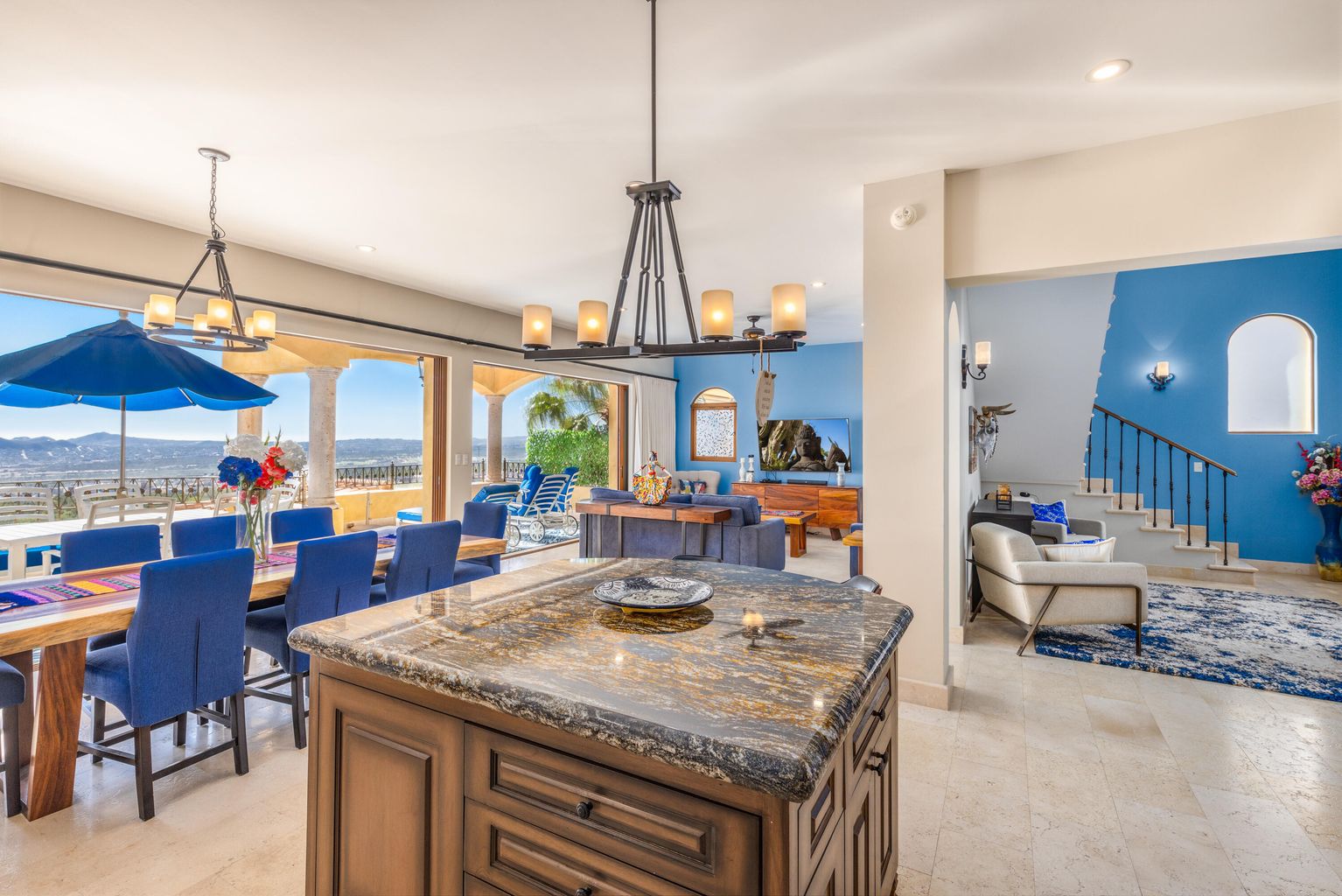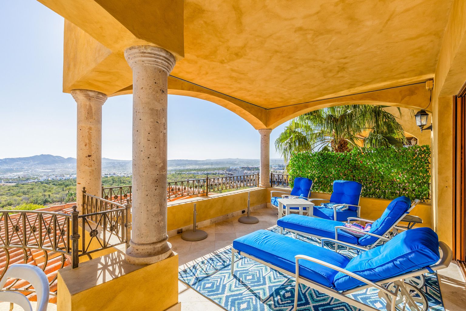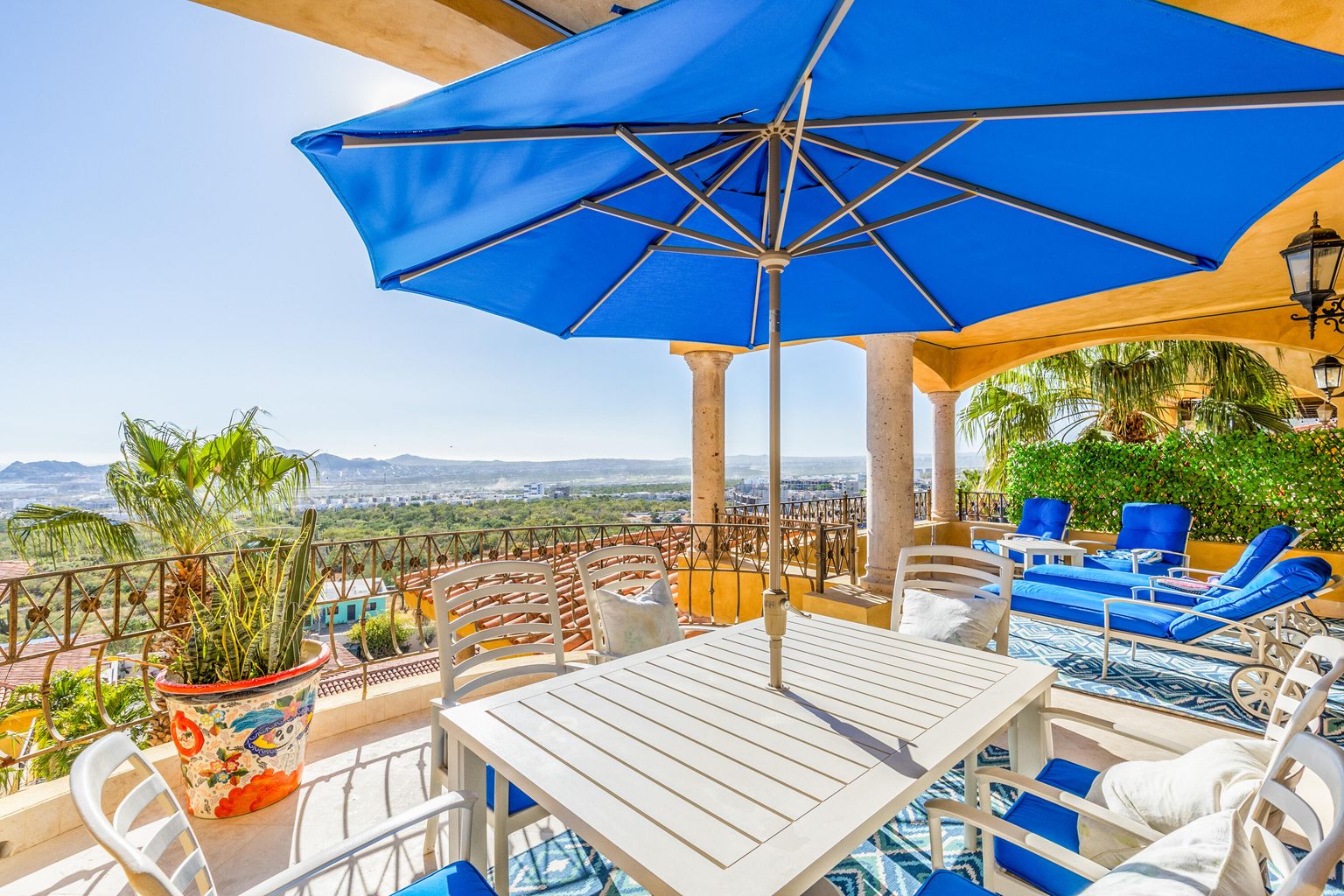 Perched atop a scenic vantage point, this lovely, two-level condo boasts breathtaking views that stretch as far as the eye can see, encompassing the tranquil ocean and vibrant cityscape. Boasting 3 bedrooms & 3 ½ bathrooms, this fully furnished residence offers unparalleled comfort and luxury. The spacious living area seamlessly flows onto a patio, perfect for soaking in the captivating vistas. The kitchen features granite countertops and stainless-steel appliances. Motorized drapes add convenience and sophistication to the ambiance. With a double garage for parking convenience, this home also ensures privacy with separated spacing from neighboring townhomes.