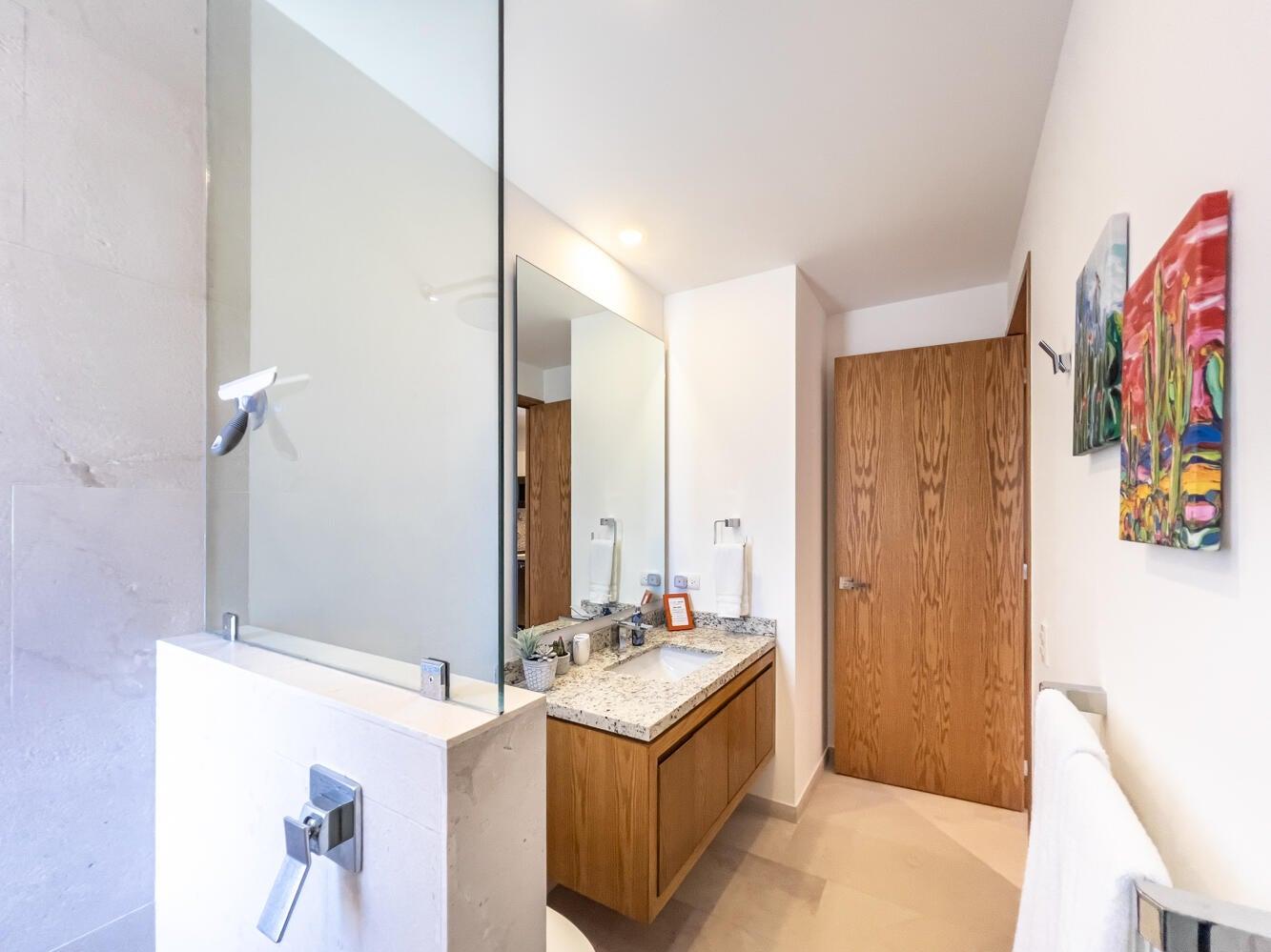 Welcome to Solaria Penthouse C-403, a stylish two-bedroom condo in El Tezal that offers both comfort and flexibility. Delivered turnkey, it's ready to enjoy or operate as a high-performing Airbnb. The private rooftop terrace features unobstructed views of Cabo's iconic Arch and comes equipped with outdoor furniture, a grill, countertop prep area, and a shared half bath—ideal for relaxing mornings or hosting sunset gatherings. Additional highlights include elevator access to the parking level, two parking spots (one underground and one outdoor—an uncommon advantage for a two-bedroom condo in Cabo), plus a private bodega located in the underground parking area.
