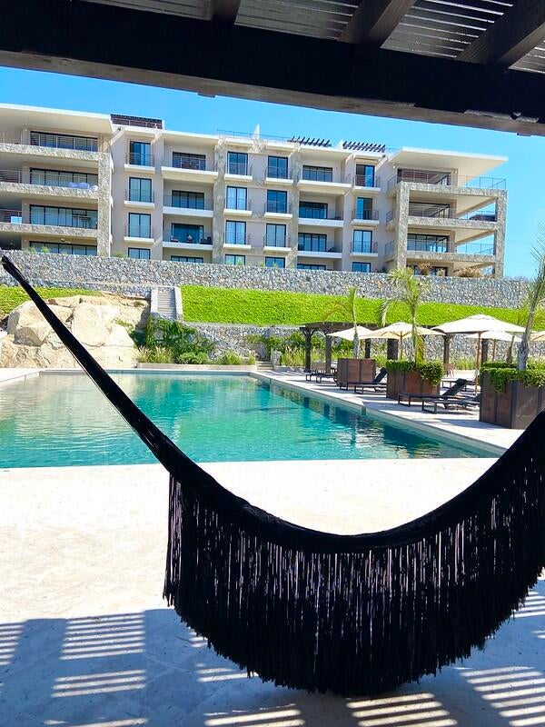 2-bedroom, 2.5-bathroom penthouse in the exclusive Marini Tower at Tramonti Los Cabos. Fully furnished and equipped—never lived in! Features a private rooftop ready for upgrades like a jacuzzi, firepit, or BBQ area. Enjoy top-tier amenities: semi-Olympic pool, fully equipped gym, event room, coworking space, plus special discounts at Pueblo Bonito restaurants. Includes access to Quivira's golf course and beach club. A unique opportunity at the best price for its location, size, and features.