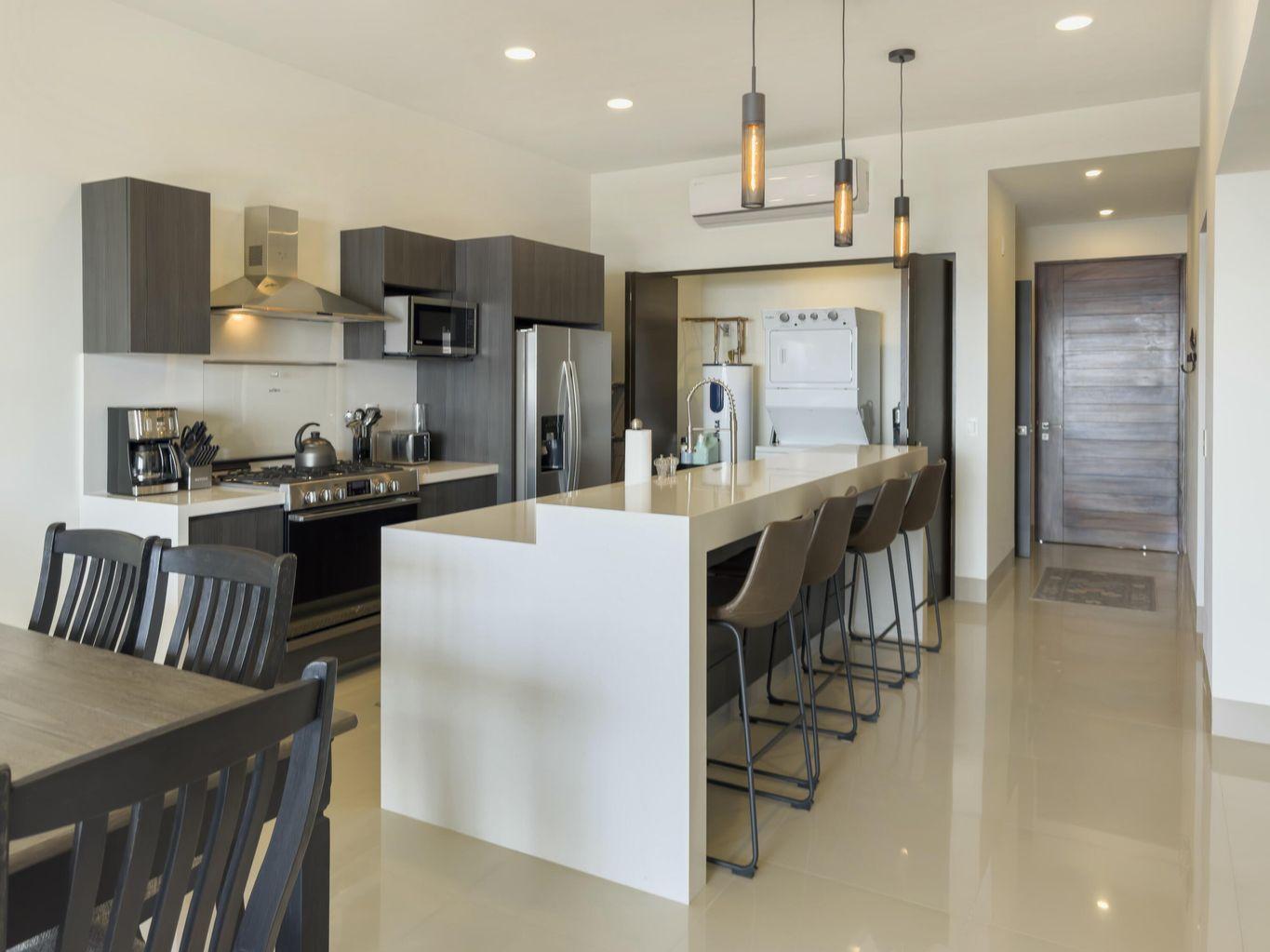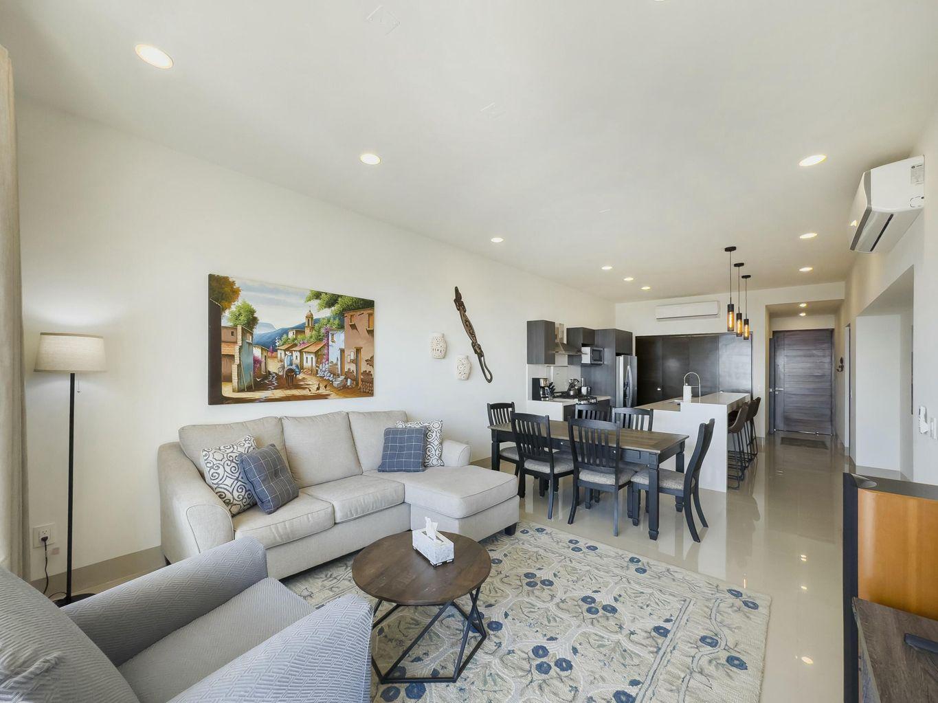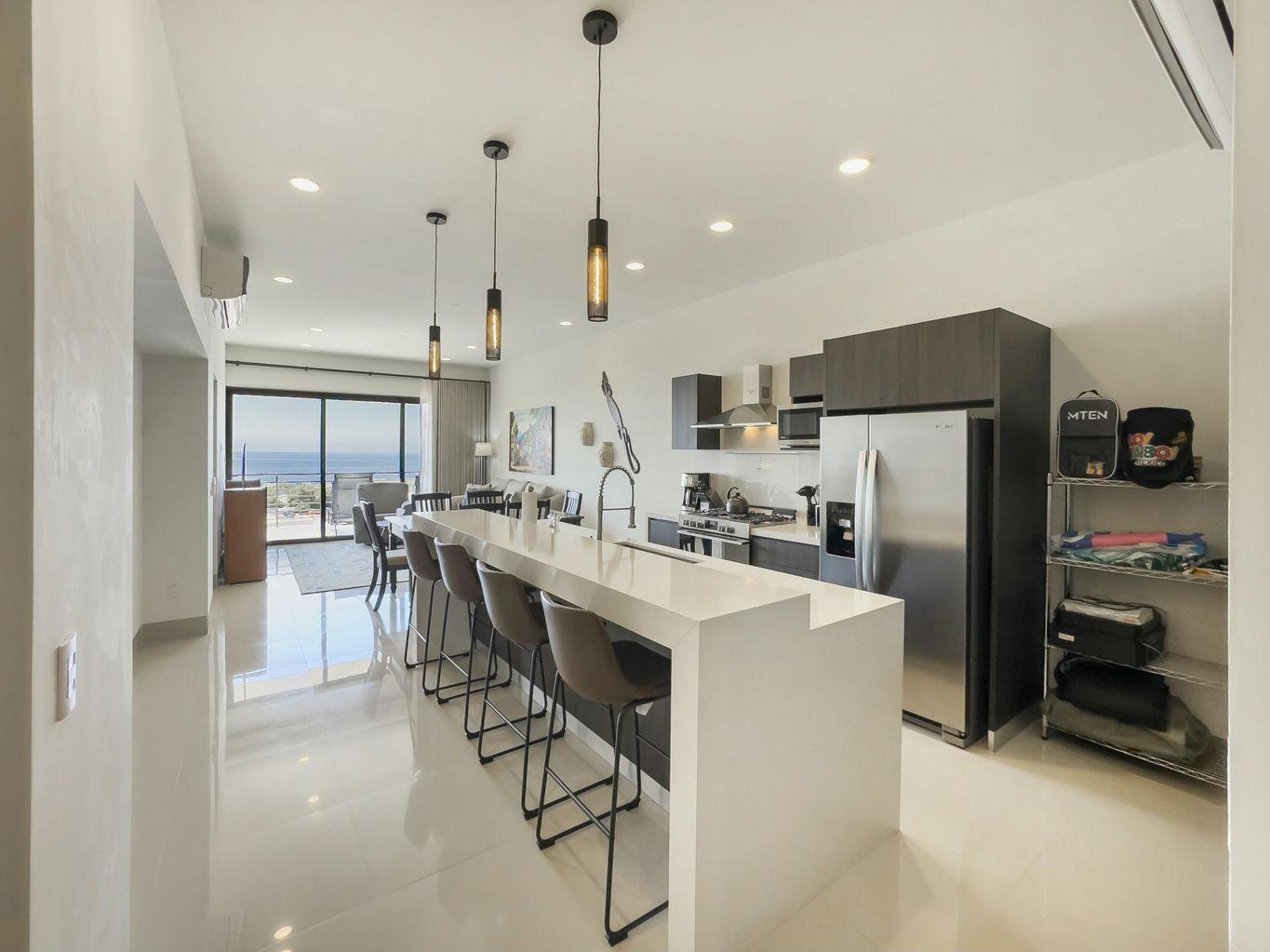 Turnkey ocean-view condo! fully furnished and equipped with 2 bedrooms and 2.5 baths. As an upgrade has a celling fans,countertops, pendant lights,Top of the line furnishings, stereo system,surge protection and storm doors. just 10 minutes from the city center, allowing you to be close to all tourist services and activities. the property includes excellent amenities such as a fully equipped gym, a pool, a pickleball courts, a basketball court, meeting center, a business center, 24 hour security. Enjoy as an owner exclusive discounts at Quivira Los Cabos and Pueblo Bonito Resorts, in Food & Beverage, Spa and Golf Club. A comfortable place to live as well as for those who want a safe investment in a privileged location with excellent income rent, The best value in Tramonti, must see!