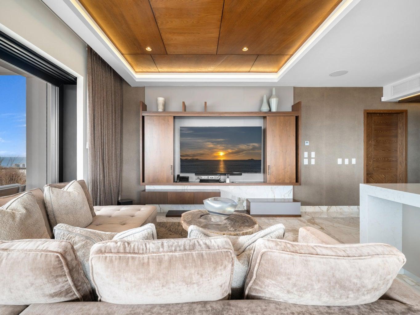 This remarkable penthouse offers two spacious bedrooms, each with its own en-suite bathroom, in addition to a full guest bath and two stylish powder rooms adorned with stunning onyx countertops. Originally designed as a three-bedroom unit, the layout was reimagined to merge the master suite with one of the guest rooms, resulting in a truly exceptional and expansive master retreat featuring a custom-designed walk-in closet created for the discerning wardrobe enthusiast.