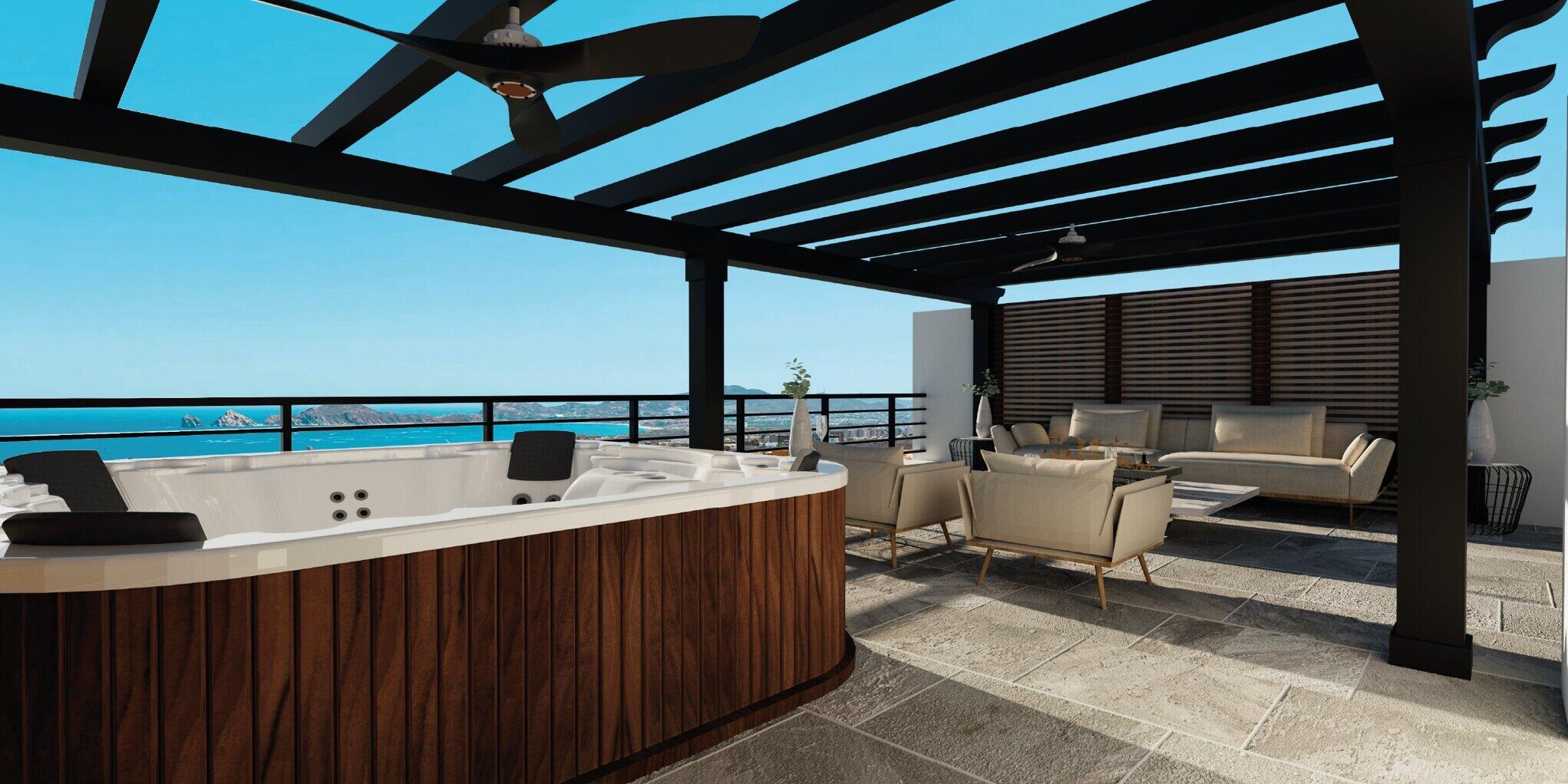The best priced 2 BED 2.5 BTH Penthouse with private rooftop and financing in all Tramonti Paradiso! Take possession of this beautiful and brand new luxury condo with delivery in April 2025 and through a transfer of rights agreement finance directly with the developer a portion for 5 years. Just 10 minutes away from Downtown Cabo San Lucas and the marina and 15 minutes from beautiful public beaches such as Chileno and Santa Maria. This contemporary-style condo features high-quality finishes with a private terrace and an additional rooftop with interior staircase. The club house is just a few steps away and owners get access to the 20+ Pueblo Bonito Resort's Restaurants & award-winning spas with 20% discount. A unique opportunity awaits!