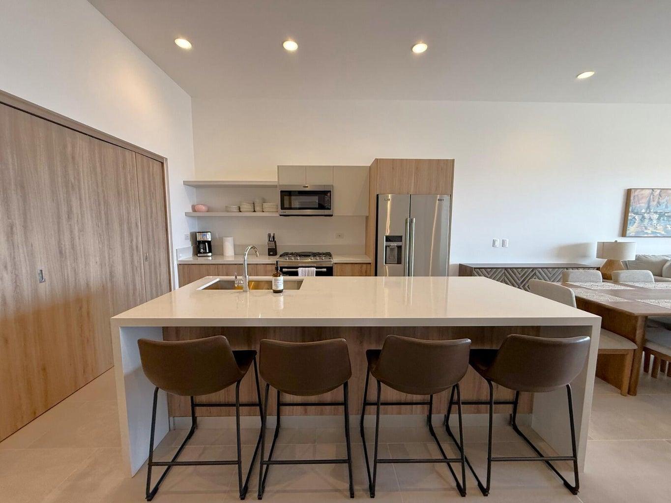 Every detail reflects quality, from the quartz countertops and marble vanities to the solid Parota wood main door and refined interior finishes in Rosa Morado hardwood. You'll also have the opportunity to personalize your home by choosing from a variety of luxury finish options. The bathrooms are finished with vanity cover Quartz MIAMI VENIA, bringing a fresh, modern feel, while each bedroom includes its own full bathroom for optimal comfort and privacy.