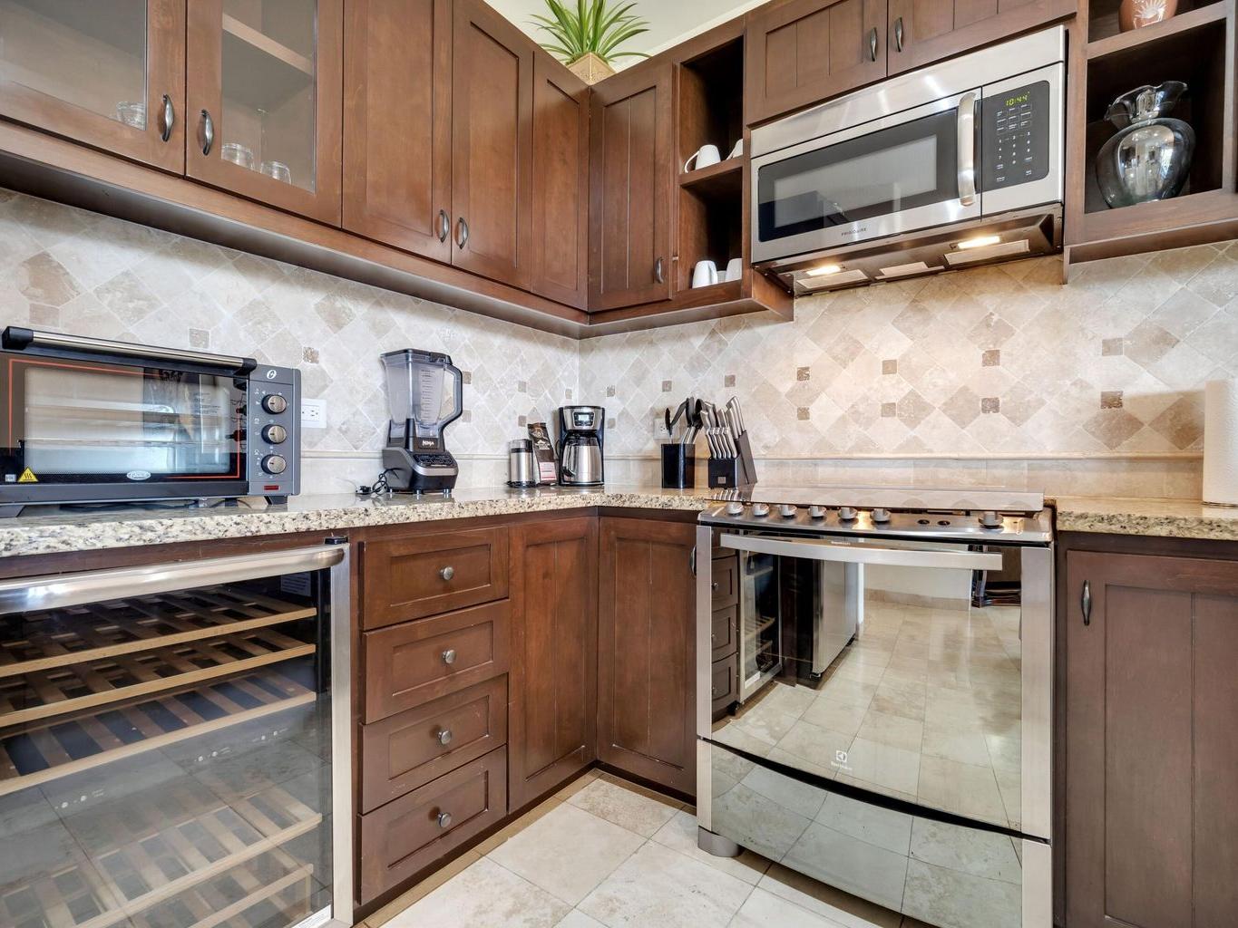 Step outside to your private fenced yard—an entertainer's dream! Featuring a built-in BBQ with generous counter space, multiple seating areas, and lush surroundings, this outdoor space is ideal for dining al fresco or relaxing with friends and family.