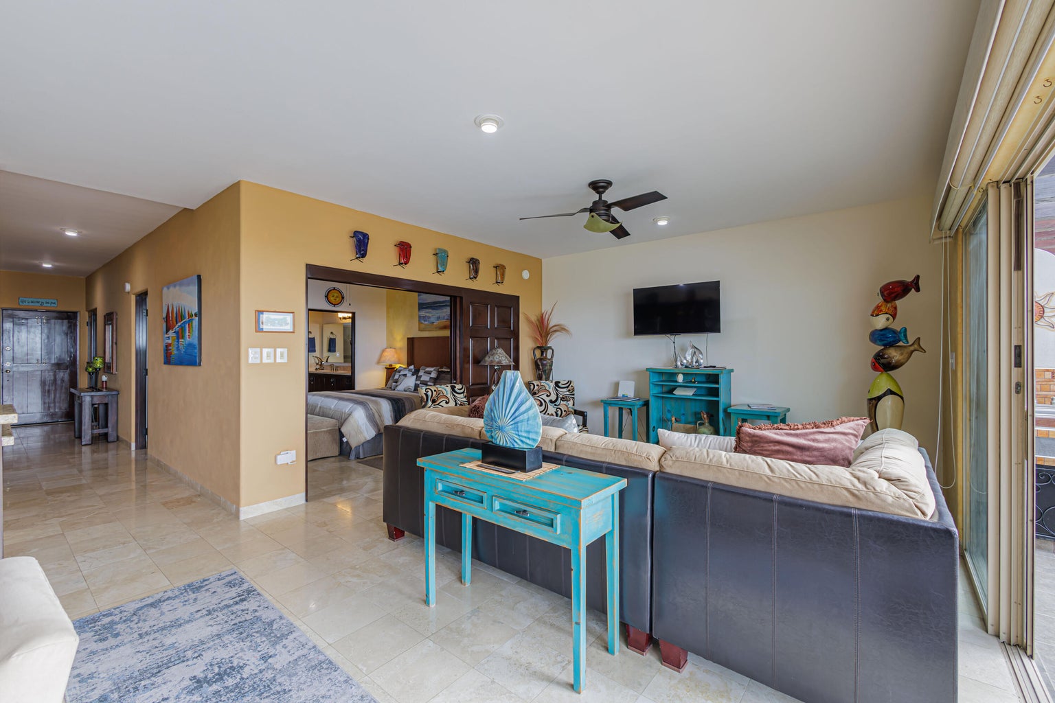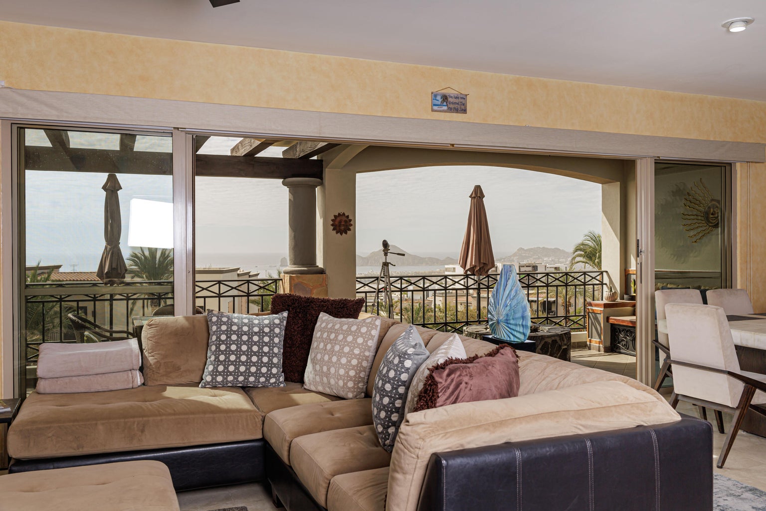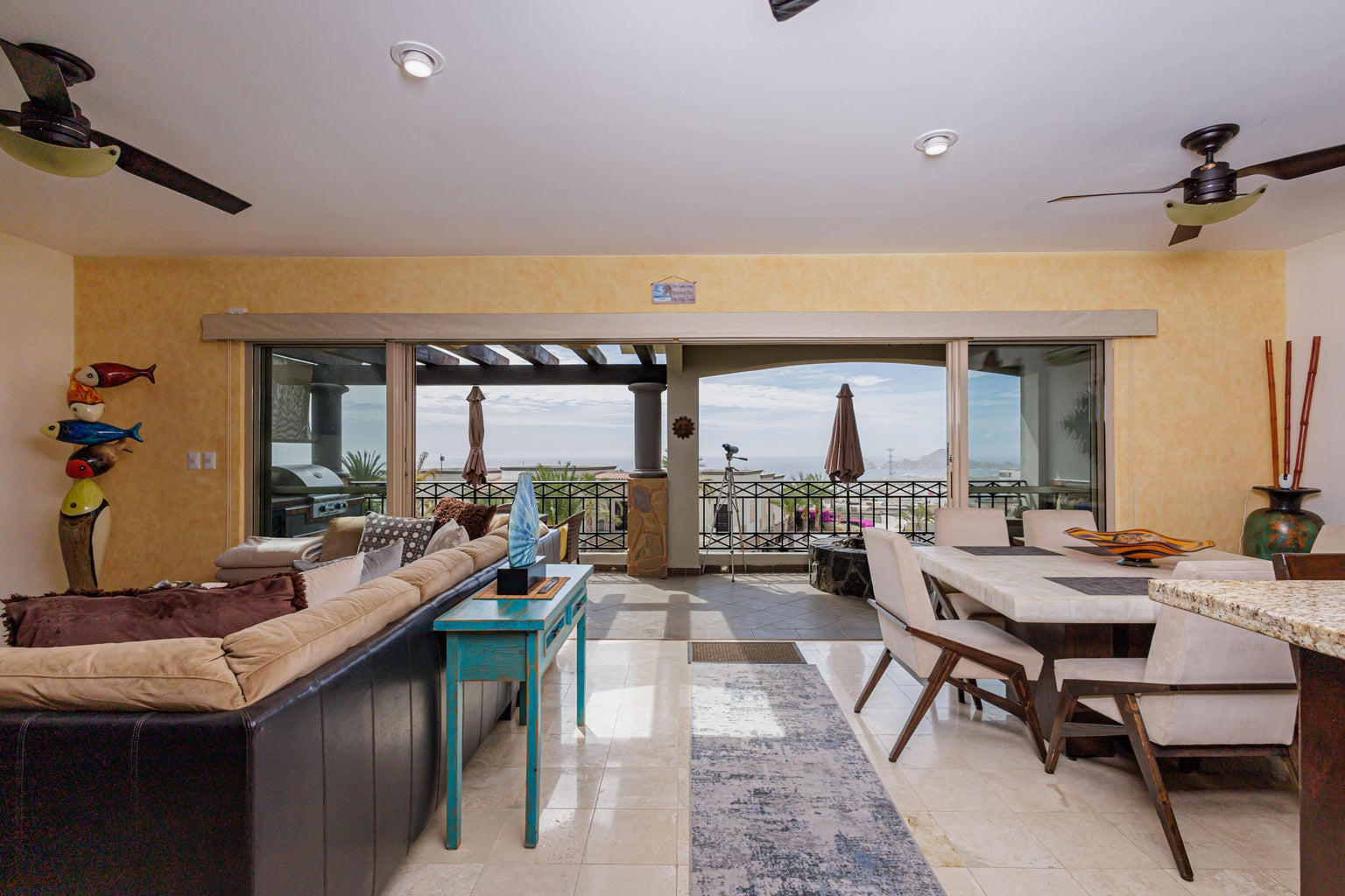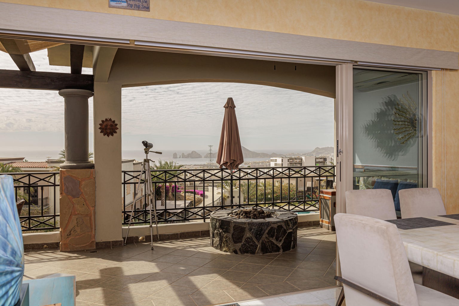 Experience the best of Cabo San Lucas living. This stunning third-floor, 2 bed 2 baths condo, located within the exclusive guard-gated community of Ventanas Phase 2 in El Tezal area. This impeccably furnished residence offers breathtaking panoramic views of the Sea of Cortez, the iconic Arch and the sparkling city lights of Cabo San Lucas. The open concept living room, dining area and a fully equipped kitchen, large sliding pocket glass doors providing direct access to a generous private balcony, featuring a built-in fire pit and grill, ideal spot for outdoor dining. Club house just steps away, including resort-style pools, Gym, business center and beautifully landscaped grounds. 2 dedicated parking spaces conveniently located at the front of the building. A well established HOA.