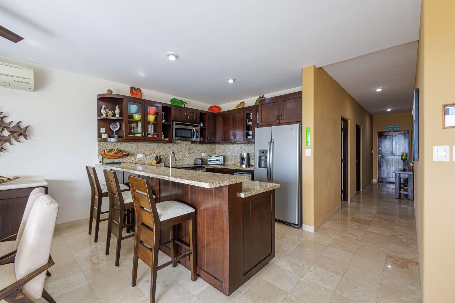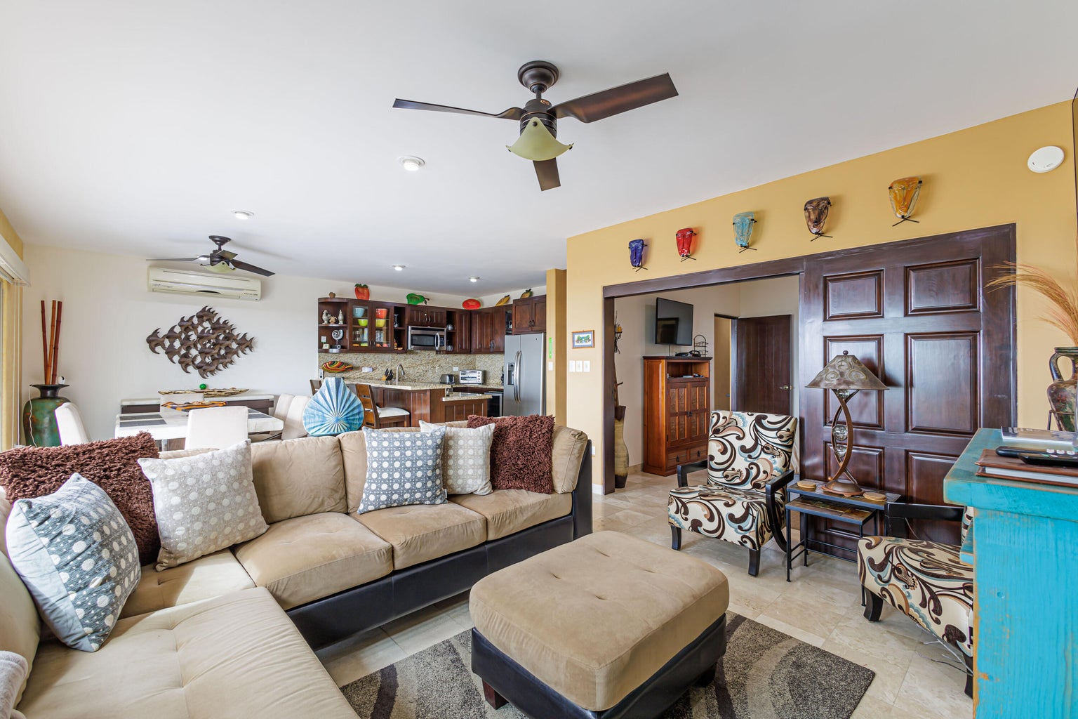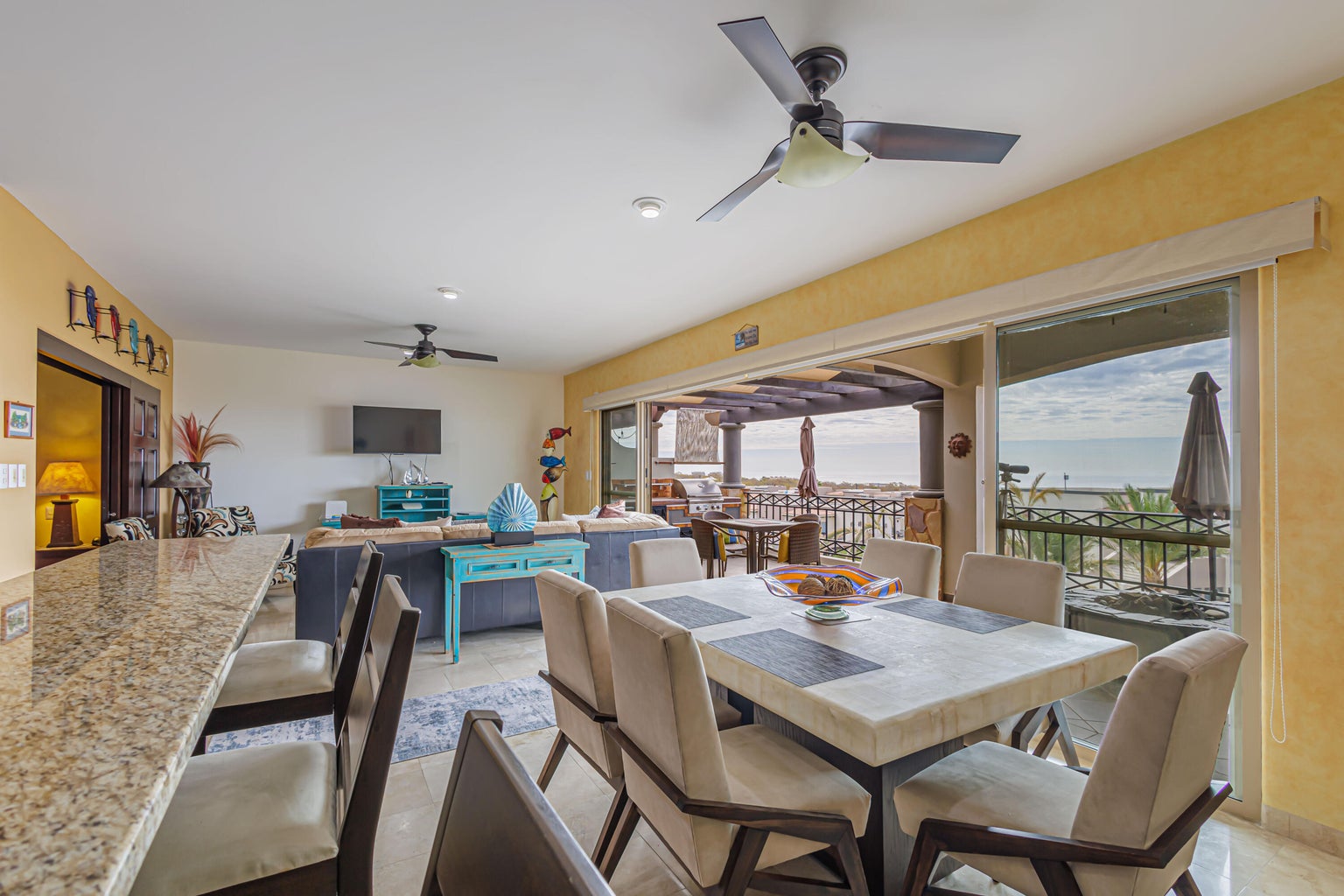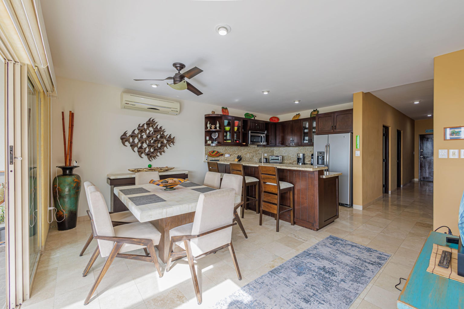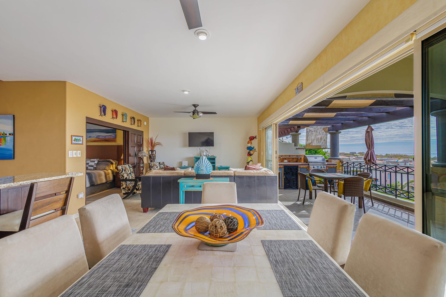 Experience the best of Cabo San Lucas living. This stunning third-floor, 2 bed 2 baths condo, located within the exclusive guard-gated community of Ventanas Phase 2 in El Tezal area. This impeccably furnished residence offers breathtaking panoramic views of the Sea of Cortez, the iconic Arch and the sparkling city lights of Cabo San Lucas. The open concept living room, dining area and a fully equipped kitchen, large sliding pocket glass doors providing direct access to a generous private balcony, featuring a built-in fire pit and grill, ideal spot for outdoor dining. Club house just steps away, including resort-style pools, Gym, business center and beautifully landscaped grounds. 2 dedicated parking spaces conveniently located at the front of the building. A well established HOA.