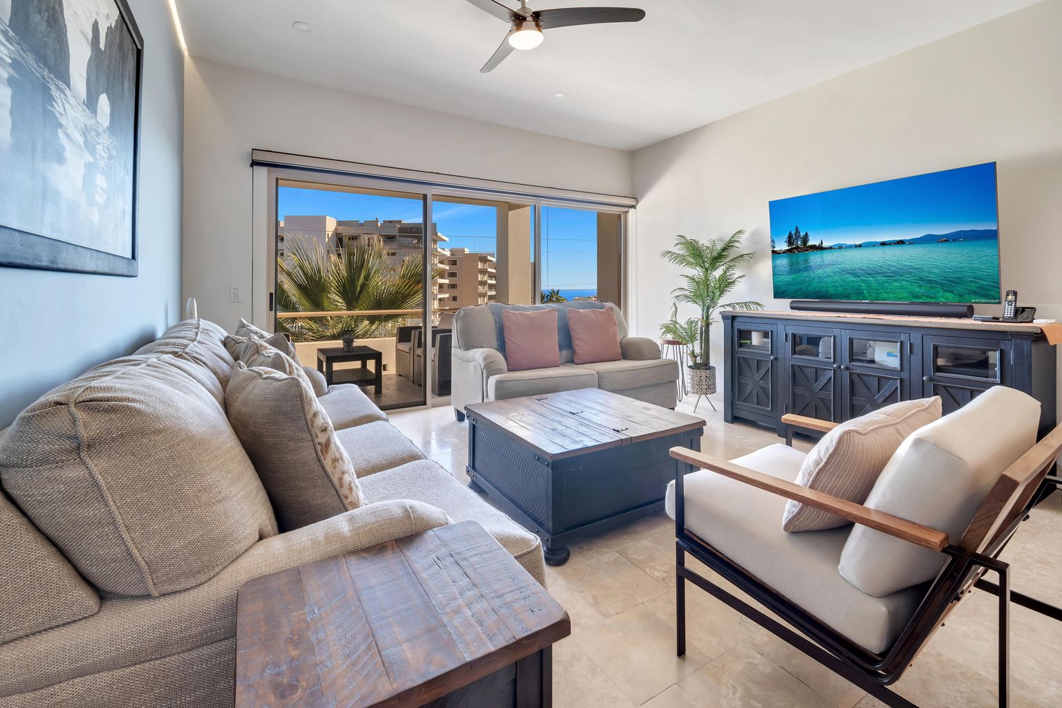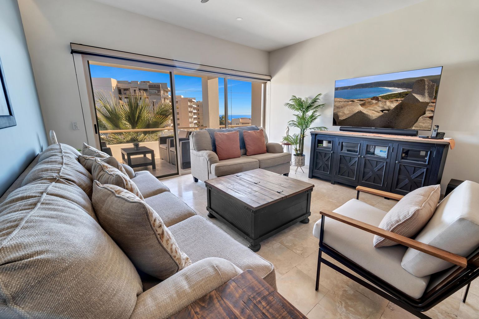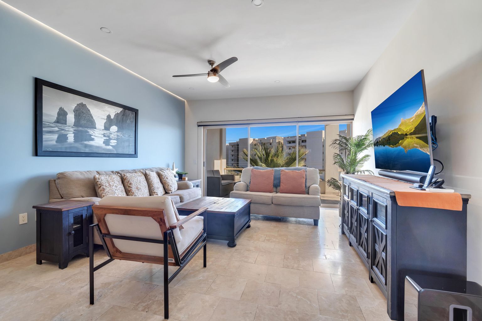 This condo presents exclusive living within a low-density complex. The 2-bedroom, 2- bathroom layout provides a comfortable living space for the residents. The large terrace provides an outdoor area for relaxing and entertaining with ocean and Arch views. Residents also enjoy the community pool. One of the other features is the expansive shared rooftop which is equipped with a jacuzzi, BQ grill, firepit and pergola. The panoramic views from the rooftop is an ideal setting for social activities and enjoying that morning cup of coffee or the breathtaking Cabo San Lucas sunsets, ocean views and local scenery.