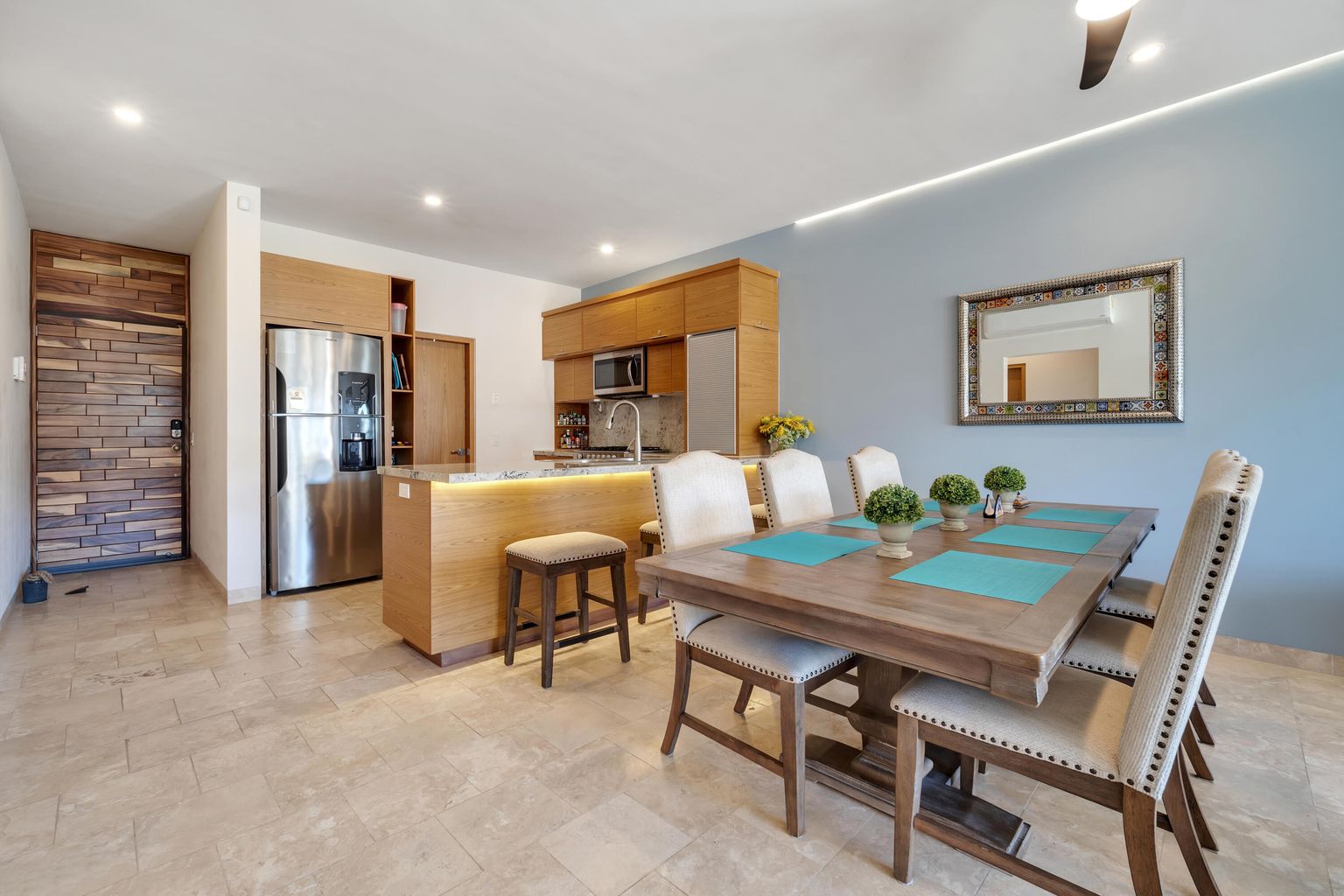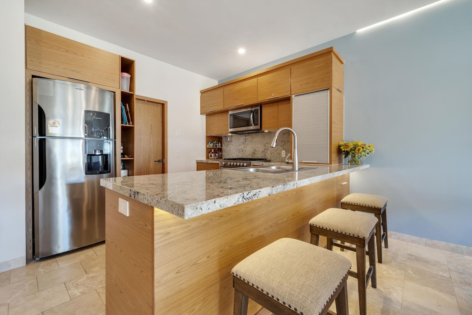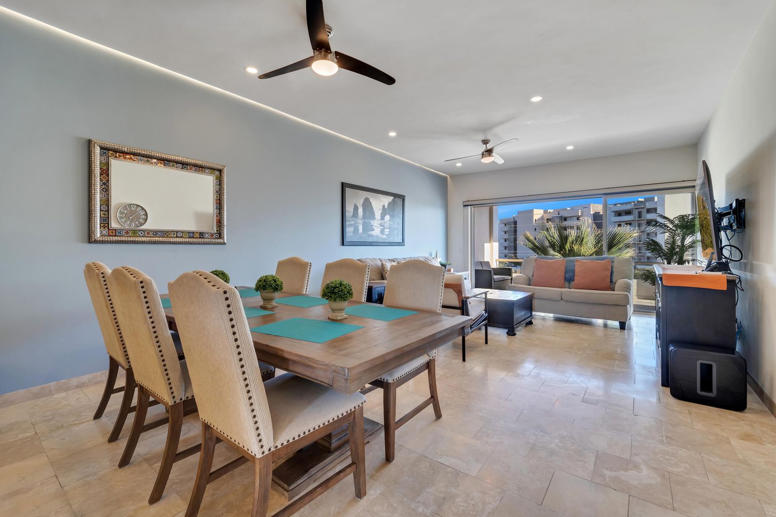 This condo presents exclusive living within a low-density complex. The 2-bedroom, 2- bathroom layout provides a comfortable living space for the residents. The large terrace provides an outdoor area for relaxing and entertaining with ocean and Arch views. Residents also enjoy the community pool. One of the other features is the expansive shared rooftop which is equipped with a jacuzzi, BQ grill, firepit and pergola. The panoramic views from the rooftop is an ideal setting for social activities and enjoying that morning cup of coffee or the breathtaking Cabo San Lucas sunsets, ocean views and local scenery.