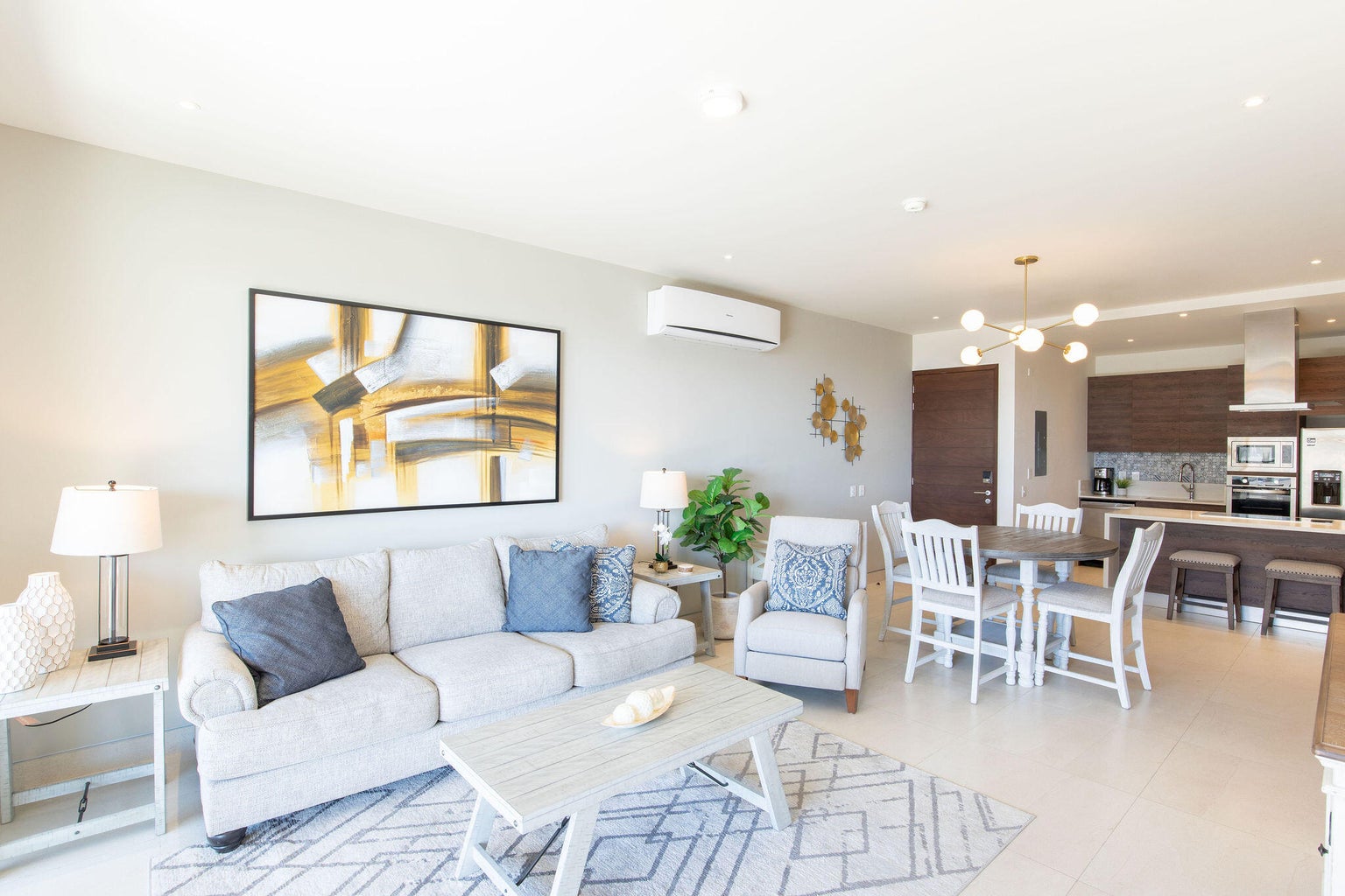 ONLY UNIT IN VISTA VELA 3 FOR SALE WITH OCEAN VIEW!!! PRICED TO SELL! Experience epic views of the Sea of Cortez from this charming condo within the prestigious Vista Vela Phase III community. Elegantly furnished, this spacious 2-bedroom, 2-bathroom home combines the ease of a lock-and-go lifestyle with the luxury and privacy of a 5-star resort. Turn-key and move-in ready, the condo offers a bright, open layout with high-end finishes and furniture throughout. Relax on the expansive patio as you watch boats drift by or unwind in the stylish and spacious living room. At the end of the day, retire to one of the two beautifully decorated private retreats. The primary suite offers a spectacular ocean view, and is beautifully appointed with an elegant ensuite, making the perfect private retrea