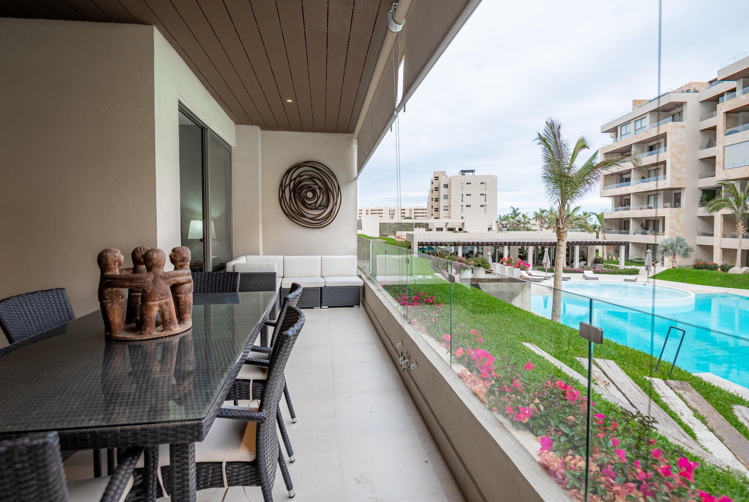 Incredible 3-bedroom Lock-off ground floor with access to incredible community amenities and steps to shopping and restaurants. The pool, fitness center and clubhouse are all just steps from the private terraces. This turnkey condo is perfect for a residence in Cabo and is also set up for short and long term rentals. A thoughtful Lock-off feature allows owners to use and vacation in one condo while they rent the other suite, it is the perfect vacation investment property providing great flexibility.