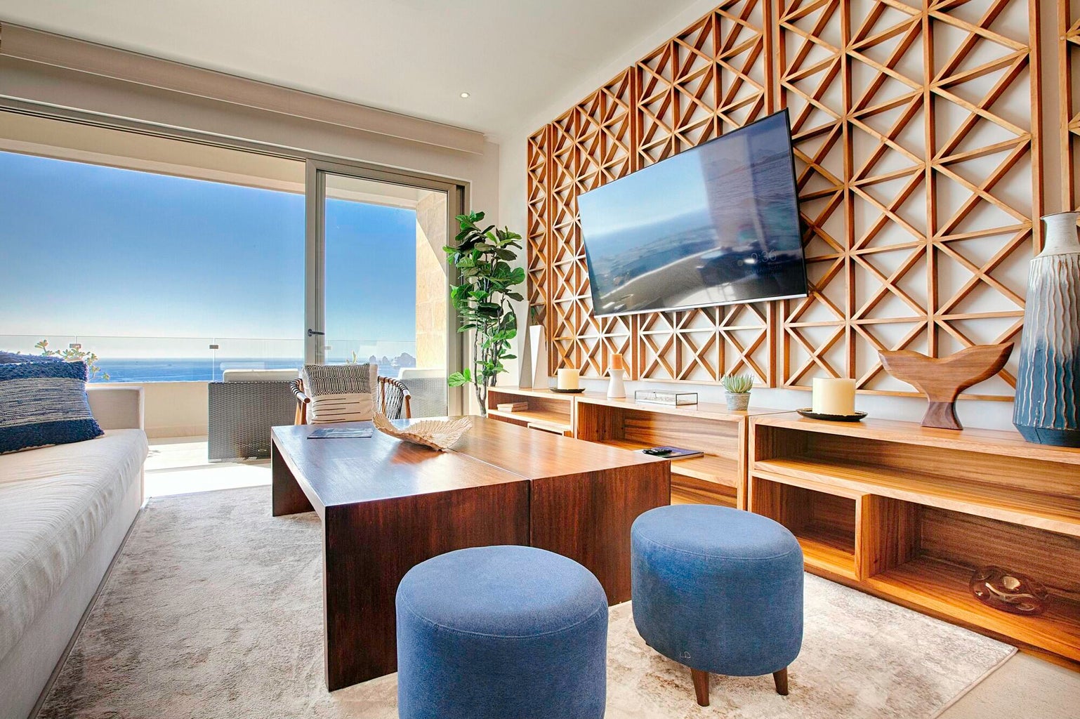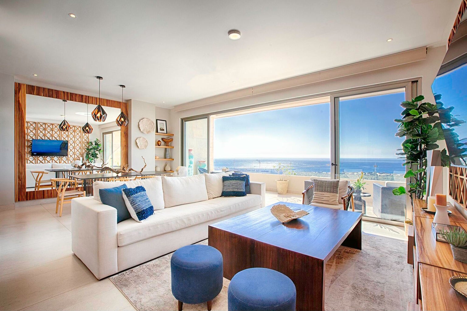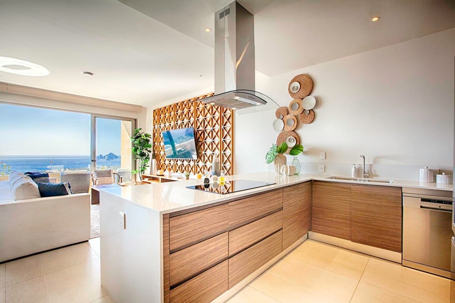 BEAUTIFUL PENTHOUSE Villa in Vista Vela II forever panoramic views of the Sea of Cortez, the Land's End Arch, and even towards the Pacific Sunsets and Mountains Ranges. The 2 bedroom is spacious and hospitable and features luxury touches in every corner and an amenity filled private roof-top living space of an extra 277m2/1451ft.