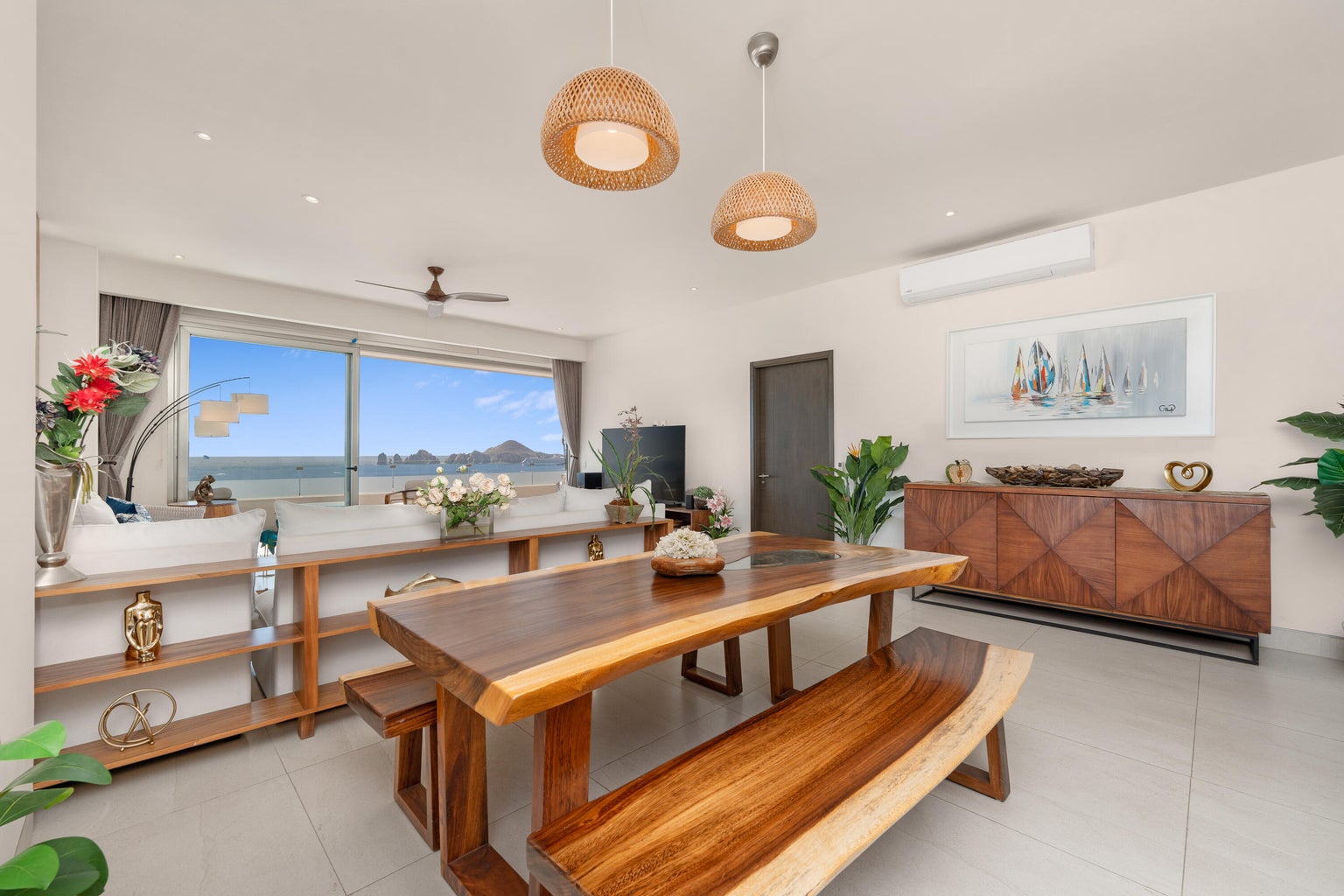 Immaculate 3 bedroom penthouse with sweeping ocean, Lands End and city views! Comfortably furnished with incredible attention to detail throughout. This corner Penthouse has one of the most open and best Vista Vela views available, being the only corner penthouse residence in tower 1! The upper terrace has a private plunge pool, outdoor kitchen, incredible lounge and relaxing area to enjoy the stunning views. 1601 is a turnkey opportunity to own an amazing penthouse steps to shopping, minutes to restaurants, the beach, golf and downtown Cabo, On-site Vista Vela II there are incredible amenities, a fitness center, clubhouse, 4 pools, sports courts, for owners to enjoy, and Vista Vela is also pet friendly! Come and discover this incredible residence.