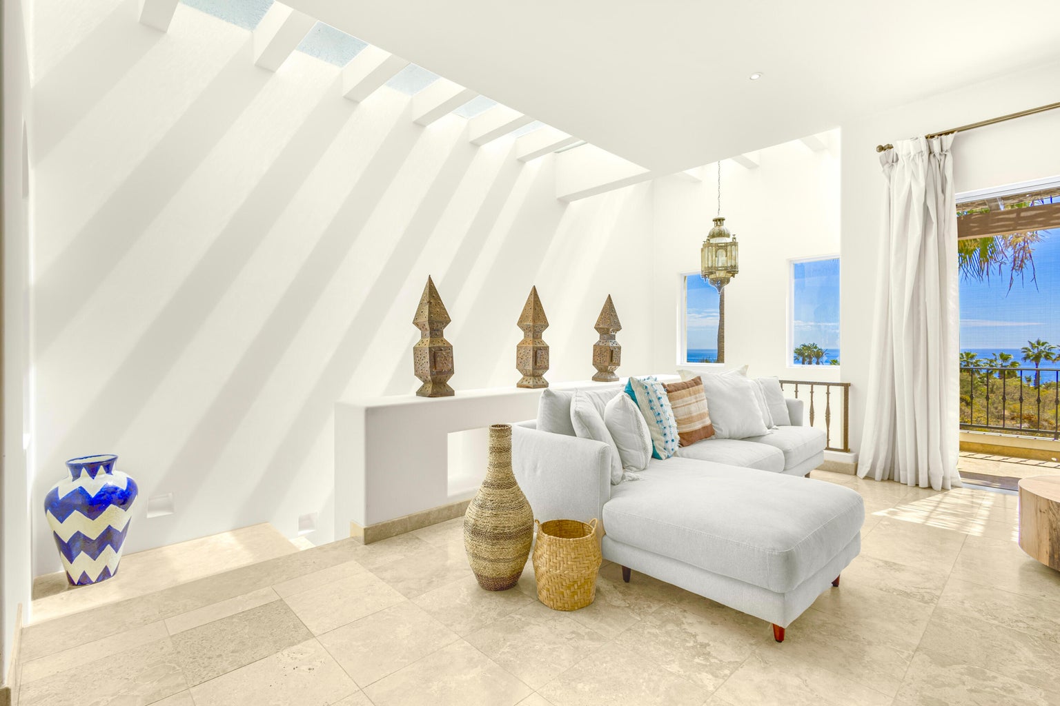 Casa Samadhi is a serene Mediterranean-coastal retreat in the exclusive oceanfront community of Cabo Bello. This fully furnished, turnkey home offers 3 bedrooms, 3 baths, and a versatile bonus room, perfect for an office or guest space. Enjoy breathtaking ocean views, a private pool and jacuzzi, and expansive terraces, ideal for seamless indoor-outdoor living. Located in a gated community with 24/7 security, Casa Samadhi provides direct access to one of Cabo's most stunning swimmable beaches. With ample space to enhance the outdoor experience, this home is a rare opportunity to create your dream coastal sanctuary—just minutes from Cabo's world-class dining, nightlife, and sportfishing.