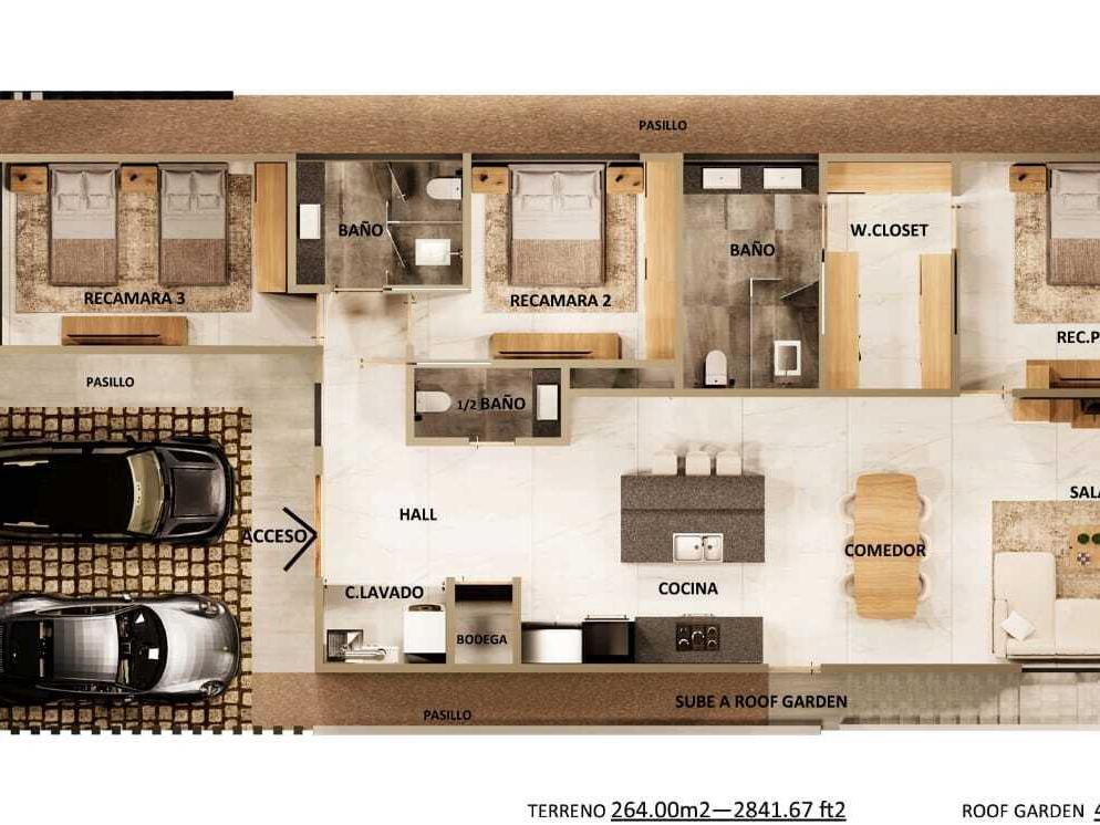 Type A | 3-Bedroom Single-Level Home with Rooftop Terrace This Type B home at Casa Adobe offers 3 bedrooms, 2.5 bathrooms, and separated carports. Enjoy a private rooftop terrace, accessible from the rear patio or side staircase, with pre-installed hookups for an outdoor grill kitchen. Appliances are not included but can be added as a package. Optional solar emergency backup system available at extra cost.