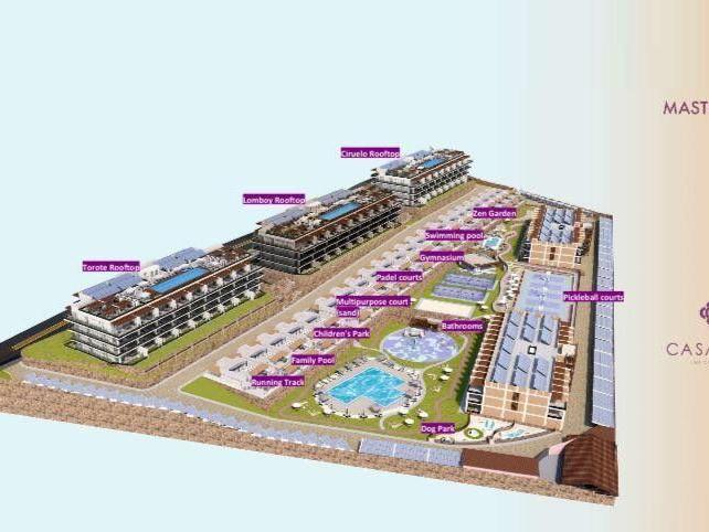 This eco-friendly community offers solar energy production, a water purification system, and two parking spaces, along with pickleball & paddle courts, a jogging track, a gym, pools, a children's playground, a dog park, and a zen park, and much more.