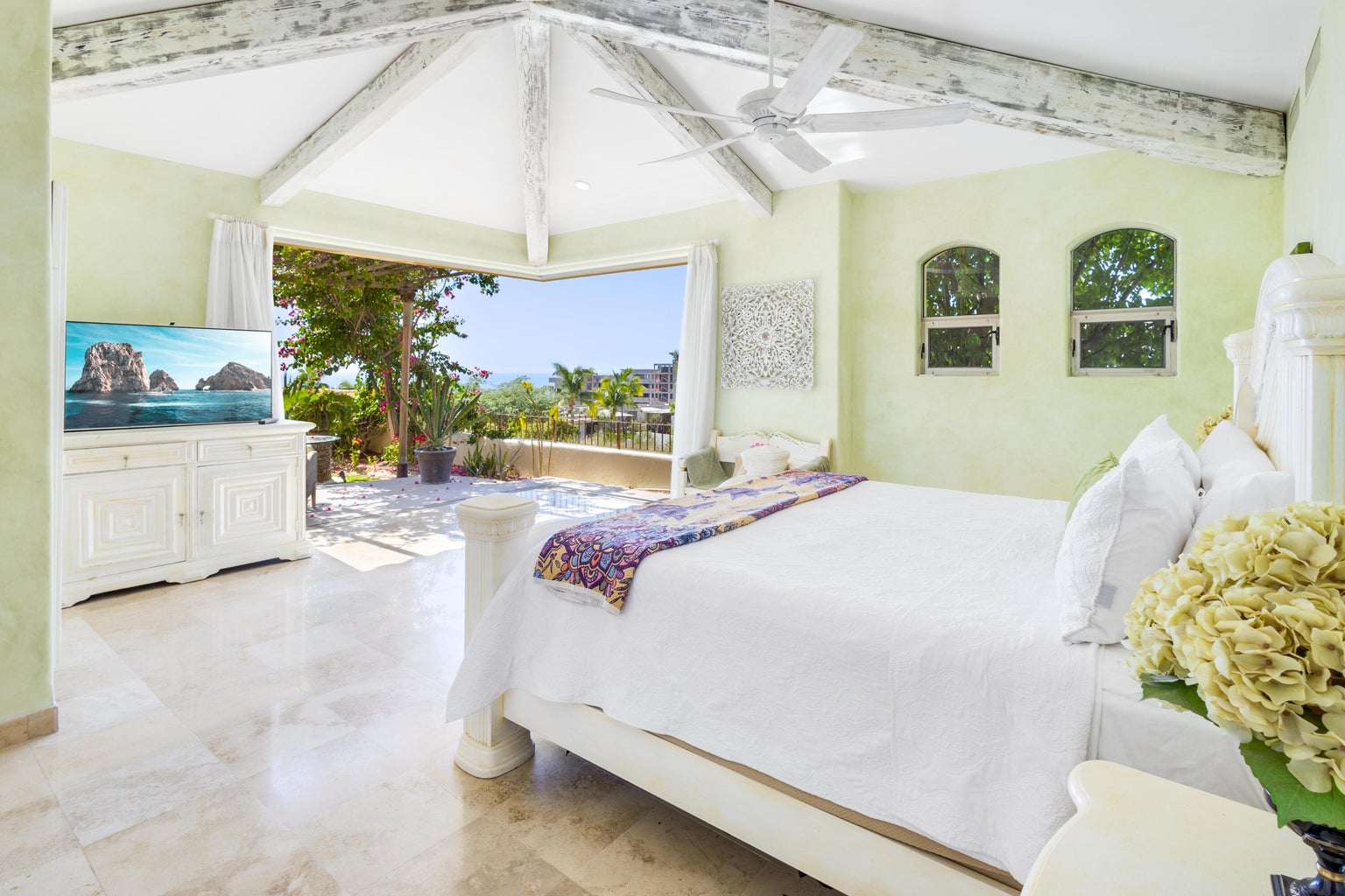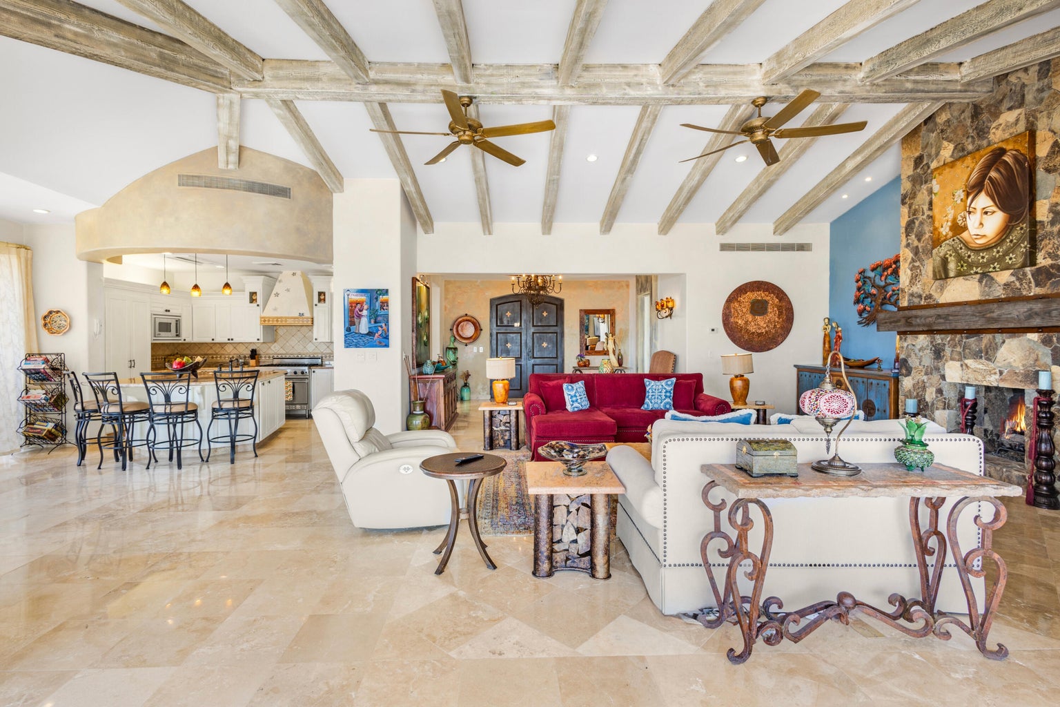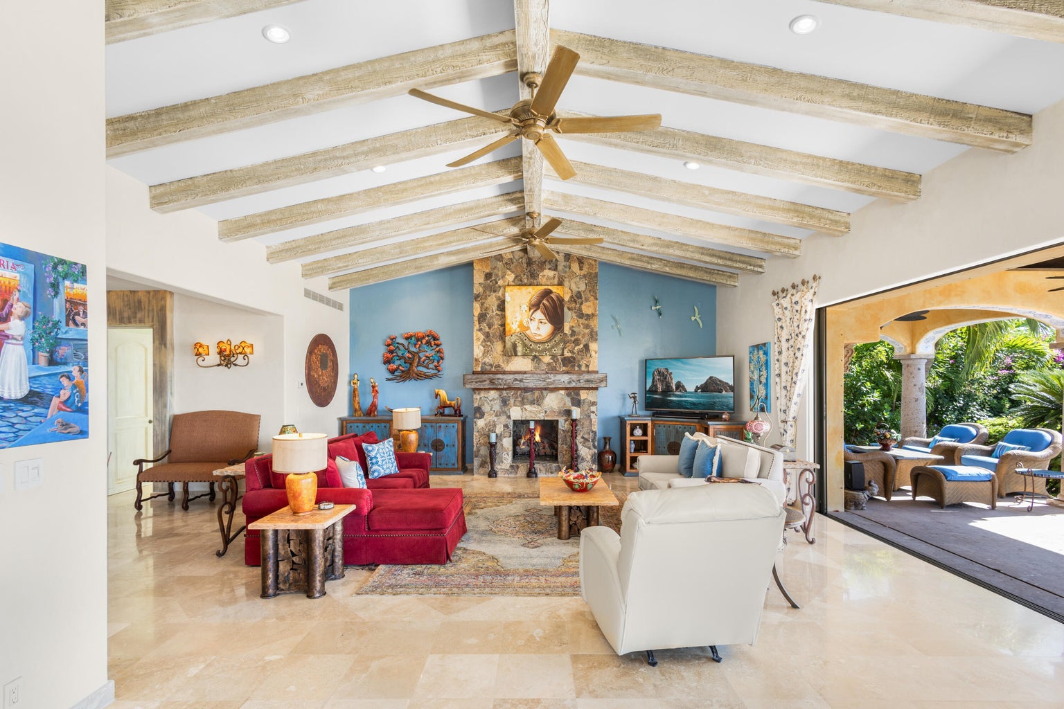 Step into this gorgeous One-Story, 3-bedroom + office/studio residence in Cresta Del Mar! Built on an elevated lot for privacy and to capture beautiful ocean views. Inside, you'll find spacious rooms, each one of them with their own distinctive personality, with high ceilings and wooden beams. The kitchen is a chef's delight with a Viking range, Sub-Zero fridge, custom cabinetry, and granite countertop. Complemented by uniquely painted exterior walls that evoke the warm Hacienda vibe. This is a real oasis with large outdoors featuring a custom pool surrounded by gardens. Villa Sabila presents a timeless elegance for connoisseurs. Its prime location provides easy access to shops, plazas, and the main highway Transpeninsular, adding convenience to your lifestyle. Ready to move in property!