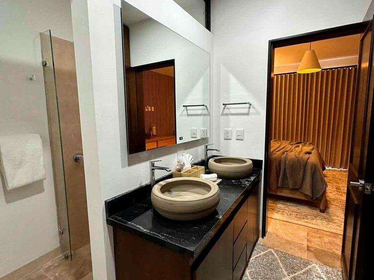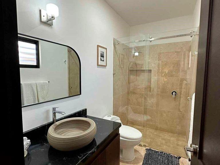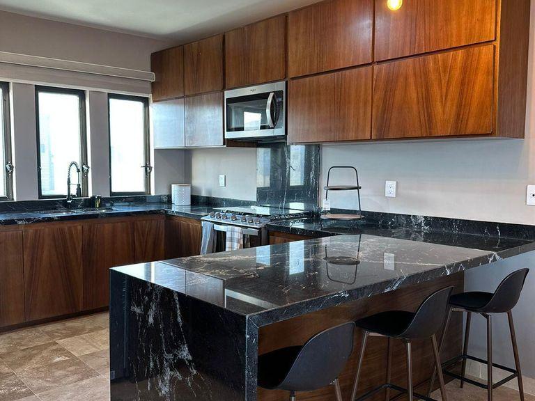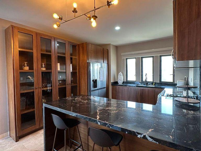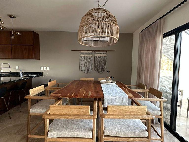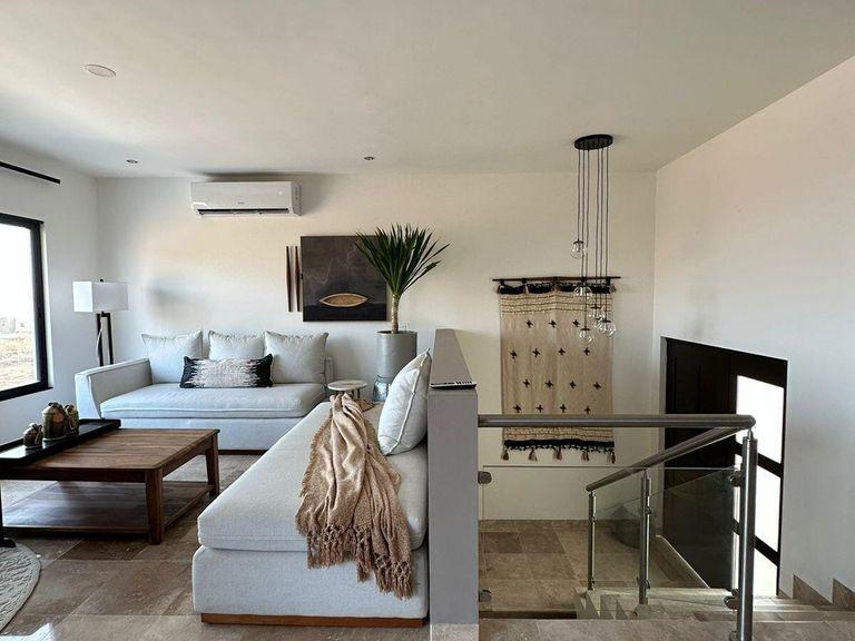 This modern 3-bed, 3.5-bath home offers 2,551 sq ft of luxurious living space. Features include high-end finishes, Mini split A/C, a fully equipped kitchen, and spacious closets. Enjoy outdoor living with 2,185 sq ft of decks and patios, perfect for entertaining. Located in a secure community with 24/7 surveillance, multiple courts, and green areas. Close to schools, shopping, supermarkets Costco, Soriana, Fresco, Home Depot and major routes. Don't miss this incredible opportunity! Schedule a showing today.