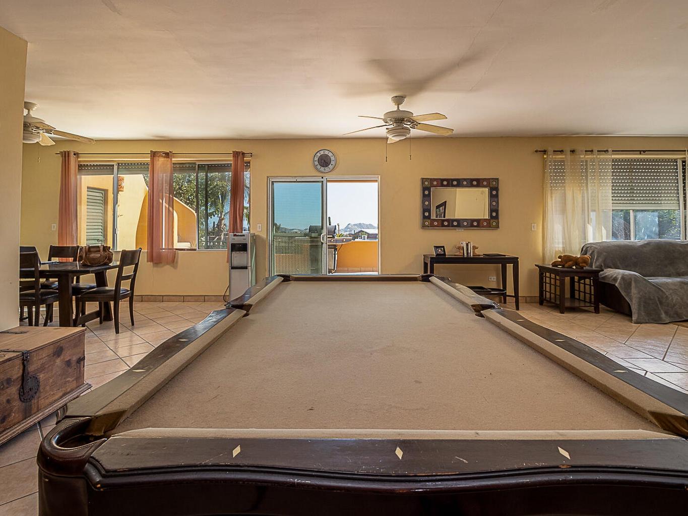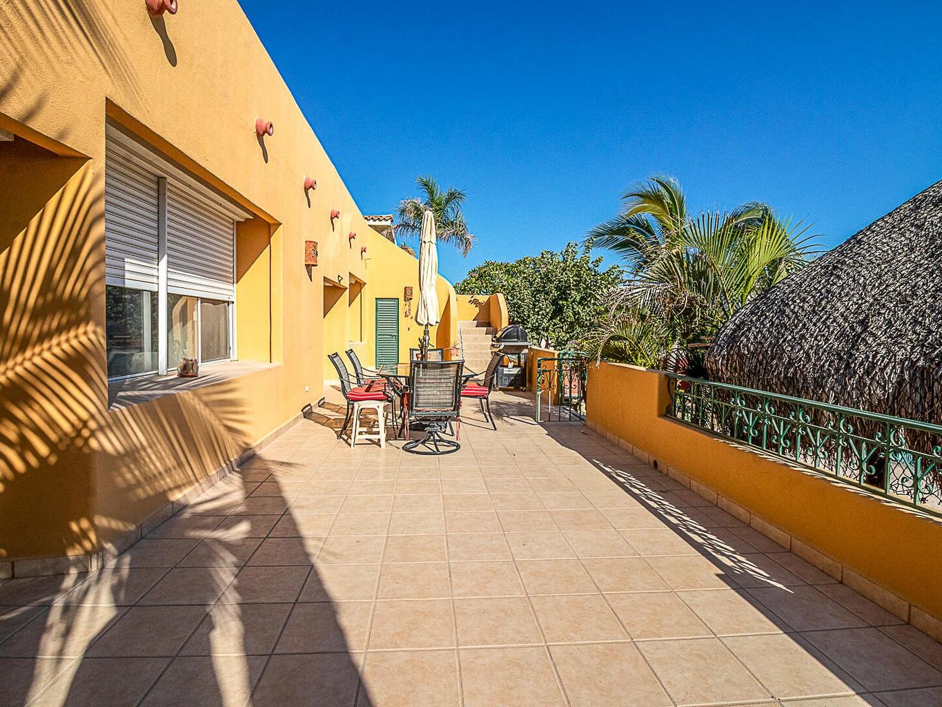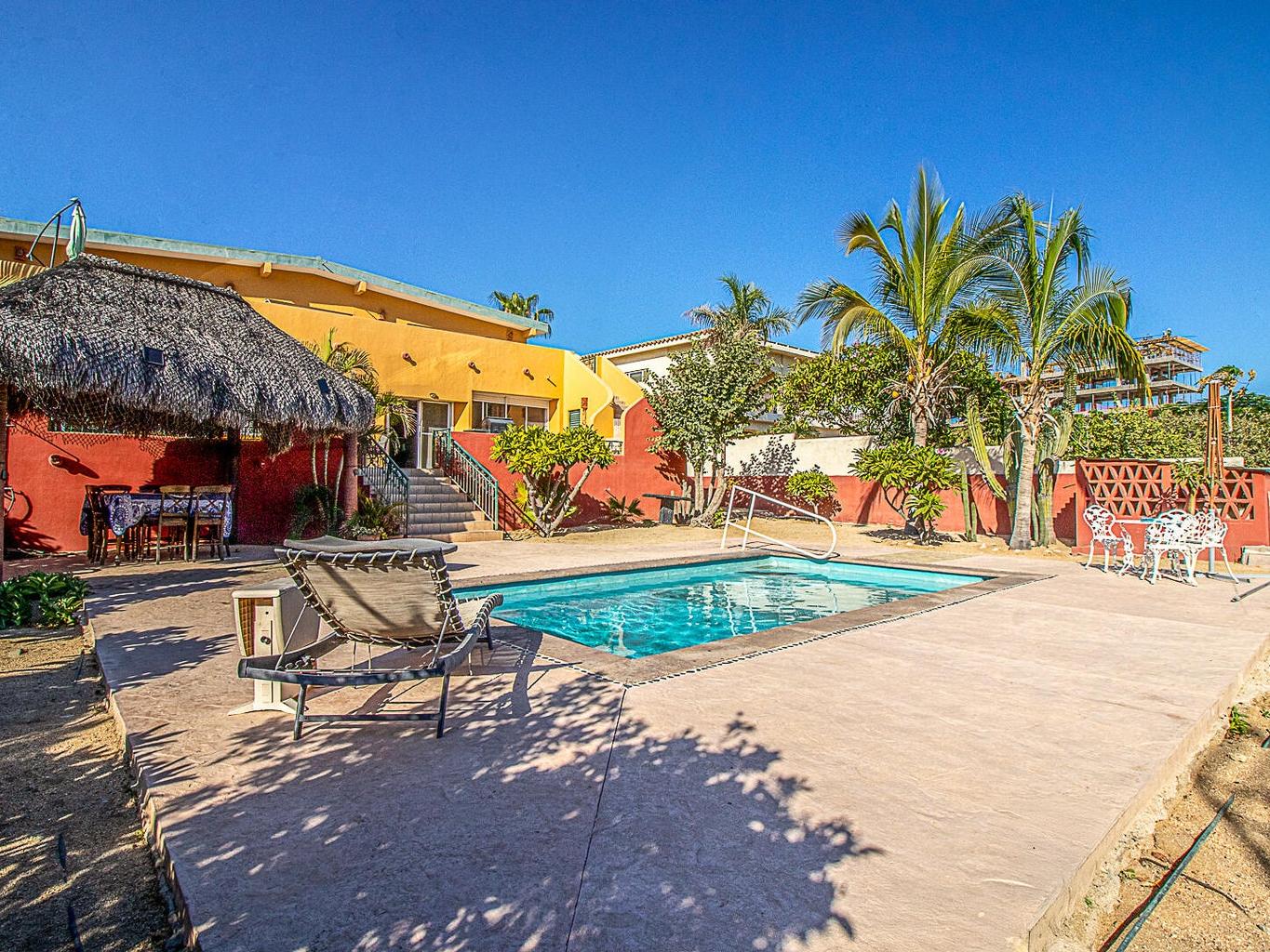 With 6 bedrooms, 6 full bathrooms, including a luxurious hydromassage bathtub on the upper-level bathroom, this two-story gem features a sparkling private pool surrounded by lots of exterior decking that includes a charming palapa area—perfect for relaxing or great for entertaining under the Baja sun.