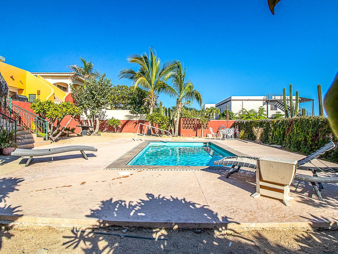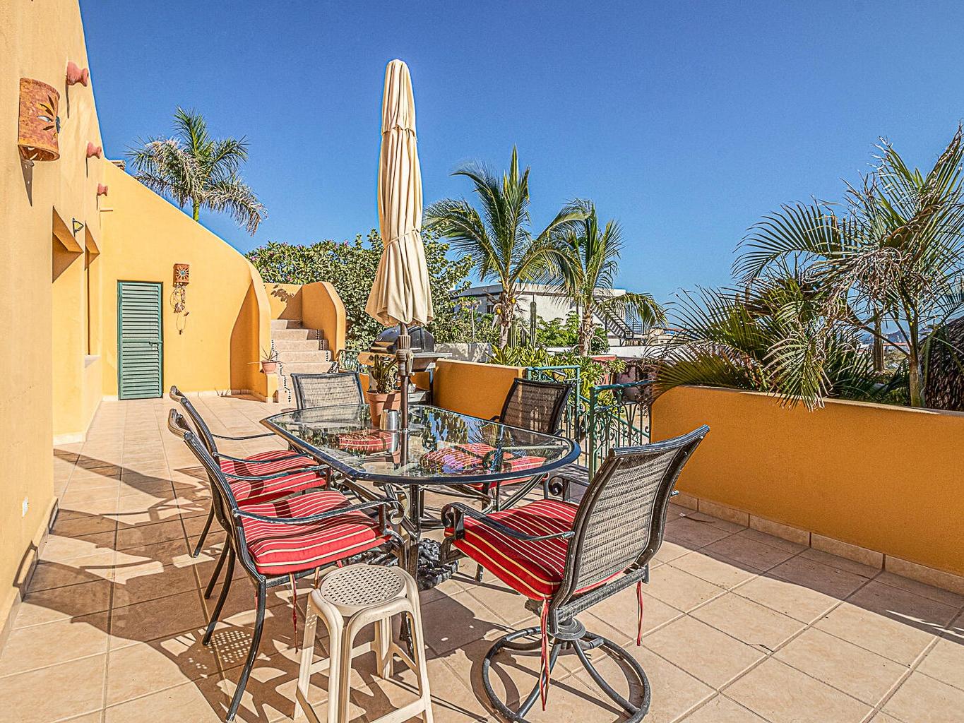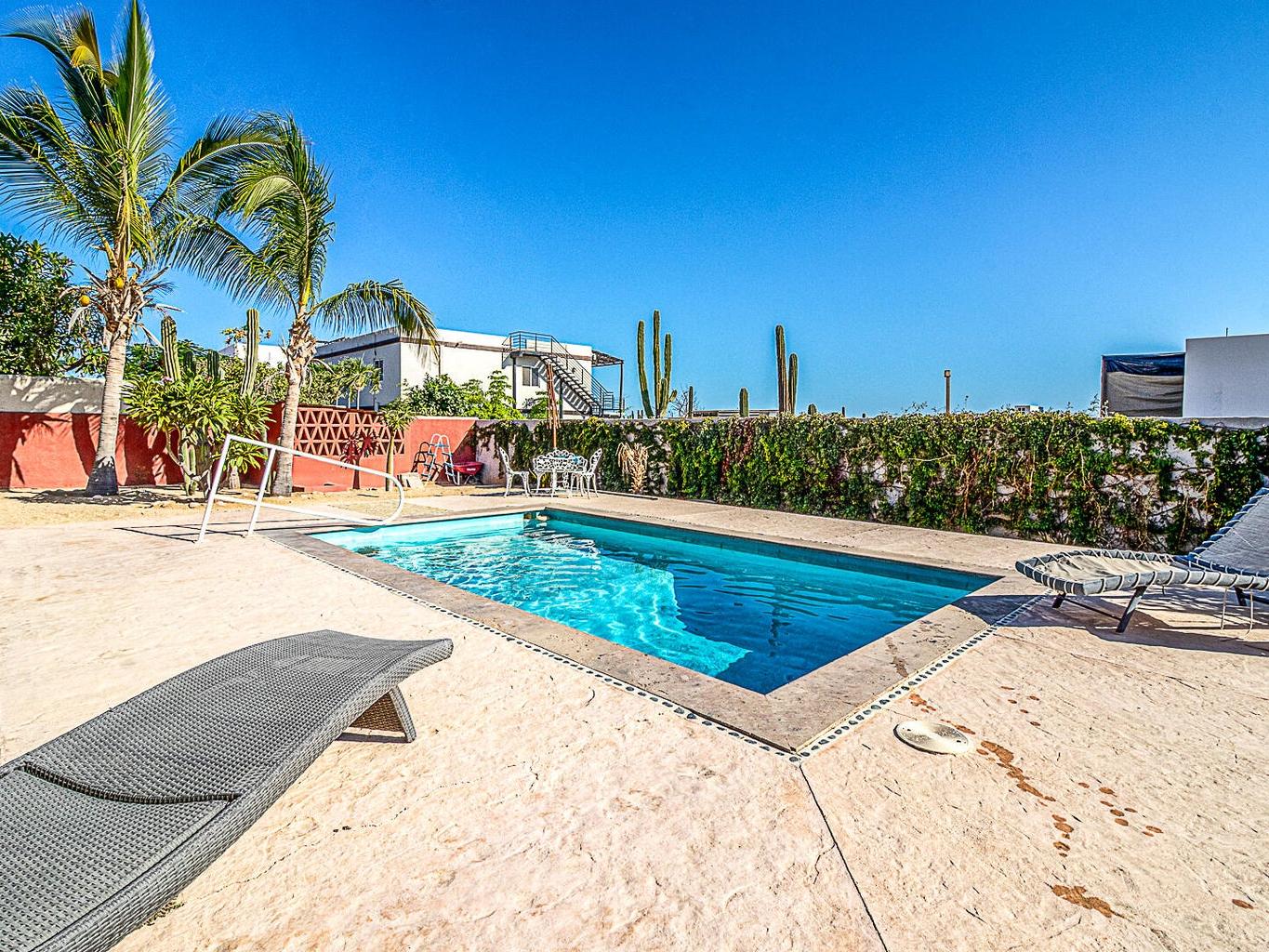 With 6 bedrooms, 6 full bathrooms, including a luxurious hydromassage bathtub on the upper-level bathroom, this two-story gem features a sparkling private pool surrounded by lots of exterior decking that includes a charming palapa area—perfect for relaxing or great for entertaining under the Baja sun.