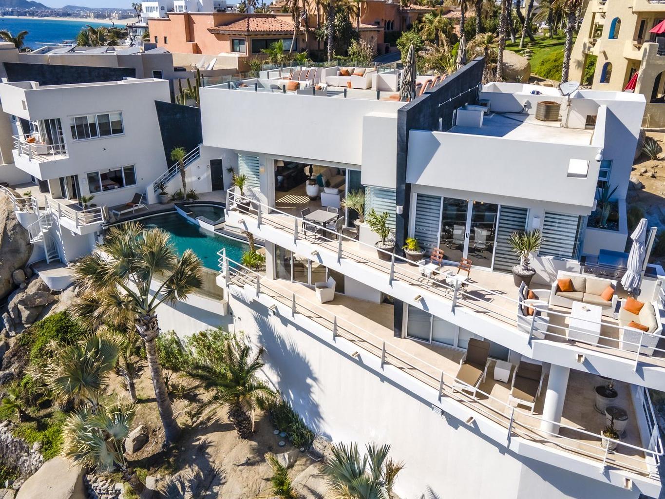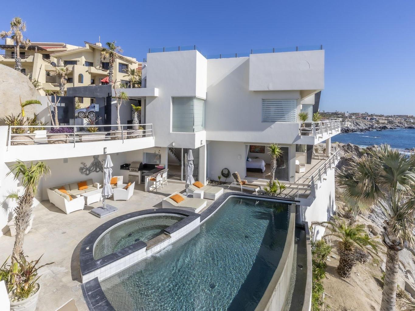 Casa Roca is a breathtaking oceanfront estate in the Cabo Corridor, blending luxury with Baja's natural beauty. With six spacious bedrooms, each with stunning ocean views, and five full plus two half baths, this stand-alone property is crafted for ultimate comfort. Located next to the renowned Sunset Monalisa Restaurant, Casa Roca offers sweeping 180-degree vistas, including Los Cabos' iconic El Arco. Positioned between serene Cabo Bello Beach and the popular surf spot Monument Beach, it's perfect for both relaxation and adventure. The centerpiece infinity pool enhances the property's elegance, seamlessly connecting the main living areas with guest spaces. Casa Roca offers exclusivity, luxury, and an authentic Baja lifestyle.