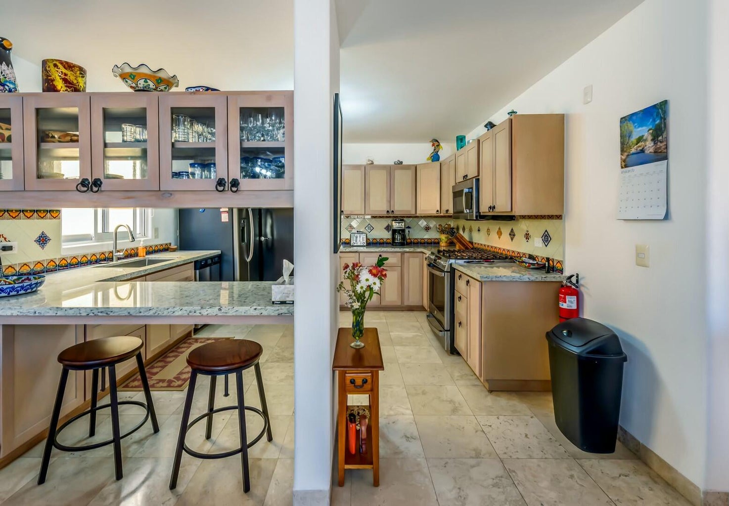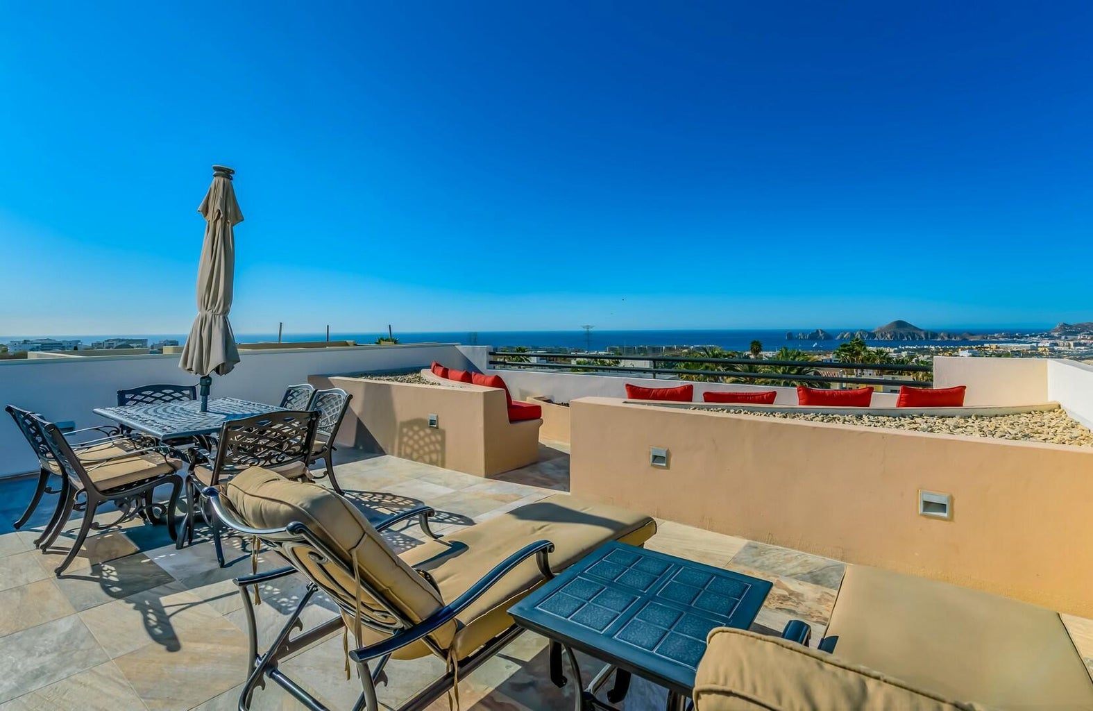 Set within the gated community of Privanzas Residential, this 3-bedroom, 3.5-bathroom home captures breathtaking views of the Sea of Cortez and the iconic Arch of Cabo San Lucas. Thoughtfully designed for full-time living or a vacation escape, the home features a spacious layout with an updated kitchen, a generous backyard, and a rooftop terrace perfect for taking in the view. A two-car garage adds convenience, while the open-concept design enhances natural light and function.