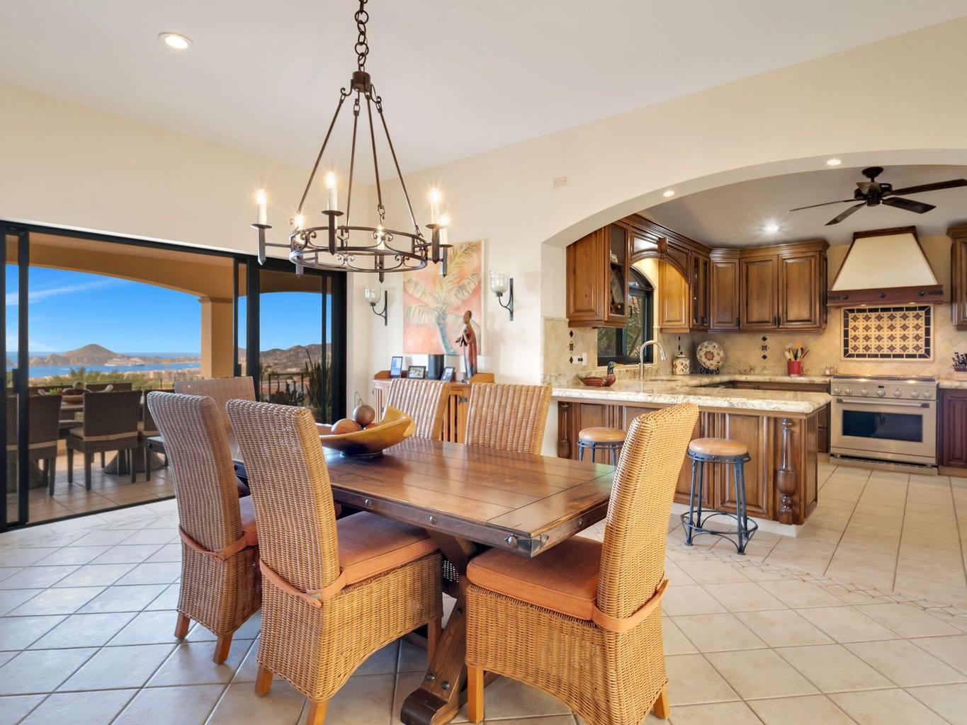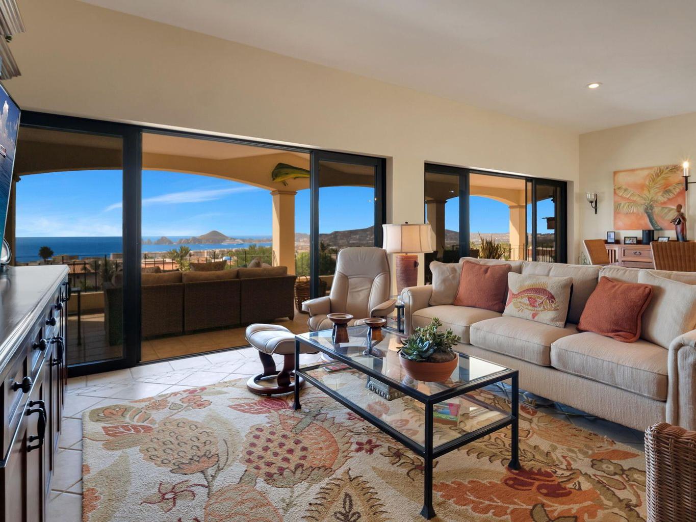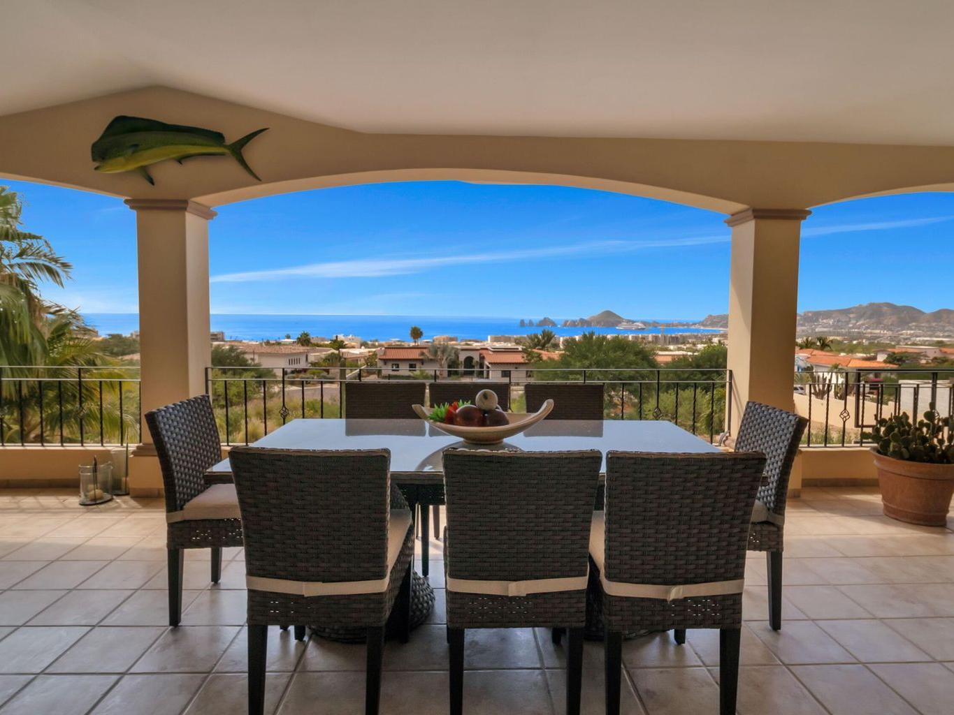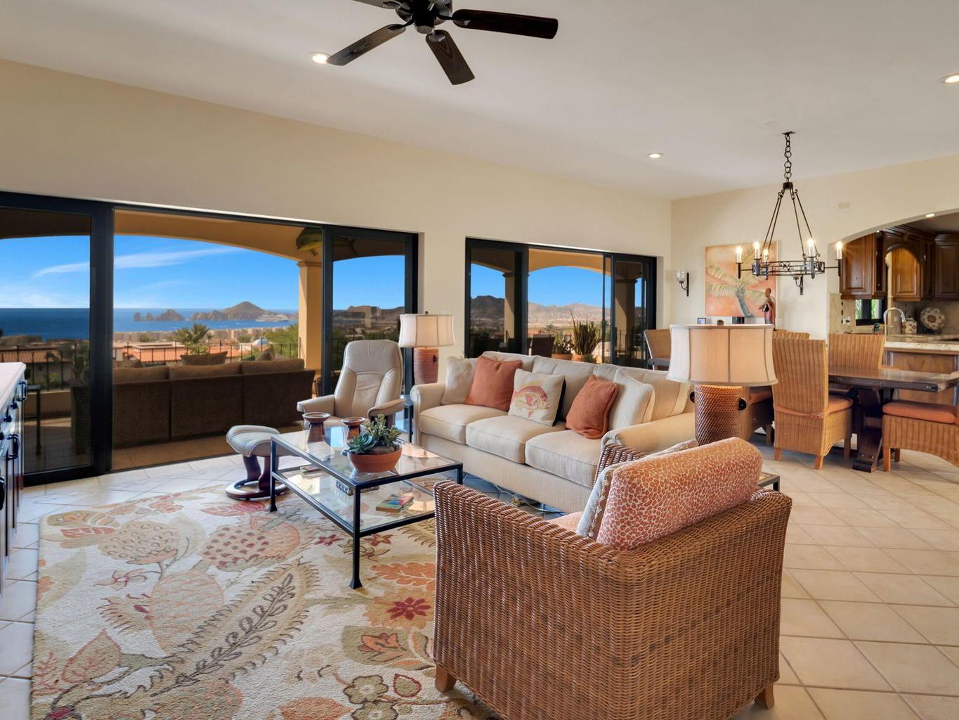 OWNER FINANCING NOW! Iconic View of Cabo, an unbreakable 180 degree view of the Bay and Arch. Located on a cul d sac at the end of the 4th street in Rancho Paraiso, one of the finest residential developments in all of Cabo. The home was completely remodeled from the ground up in 2017. The home has been meticulously detailed, with the finest of custom Cabinetry. Everything in this home has been thought out for the complete Cabo lifestyle. The master bedroom is on the main floor and shares the dramatic view with the living room, dining room and kitchen.