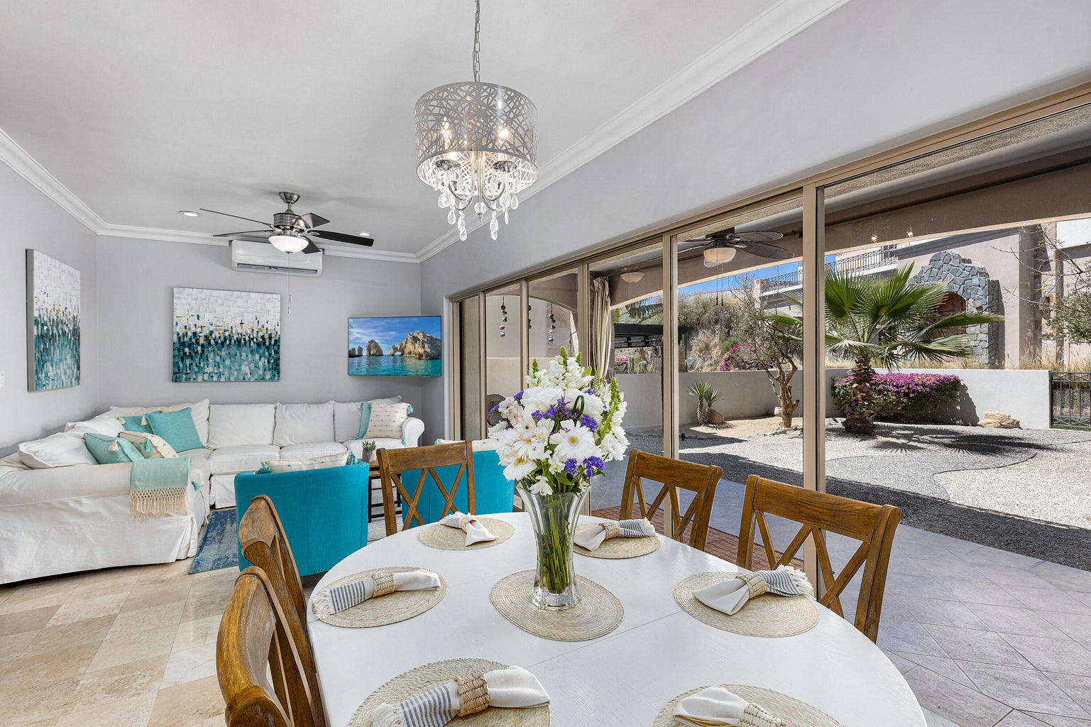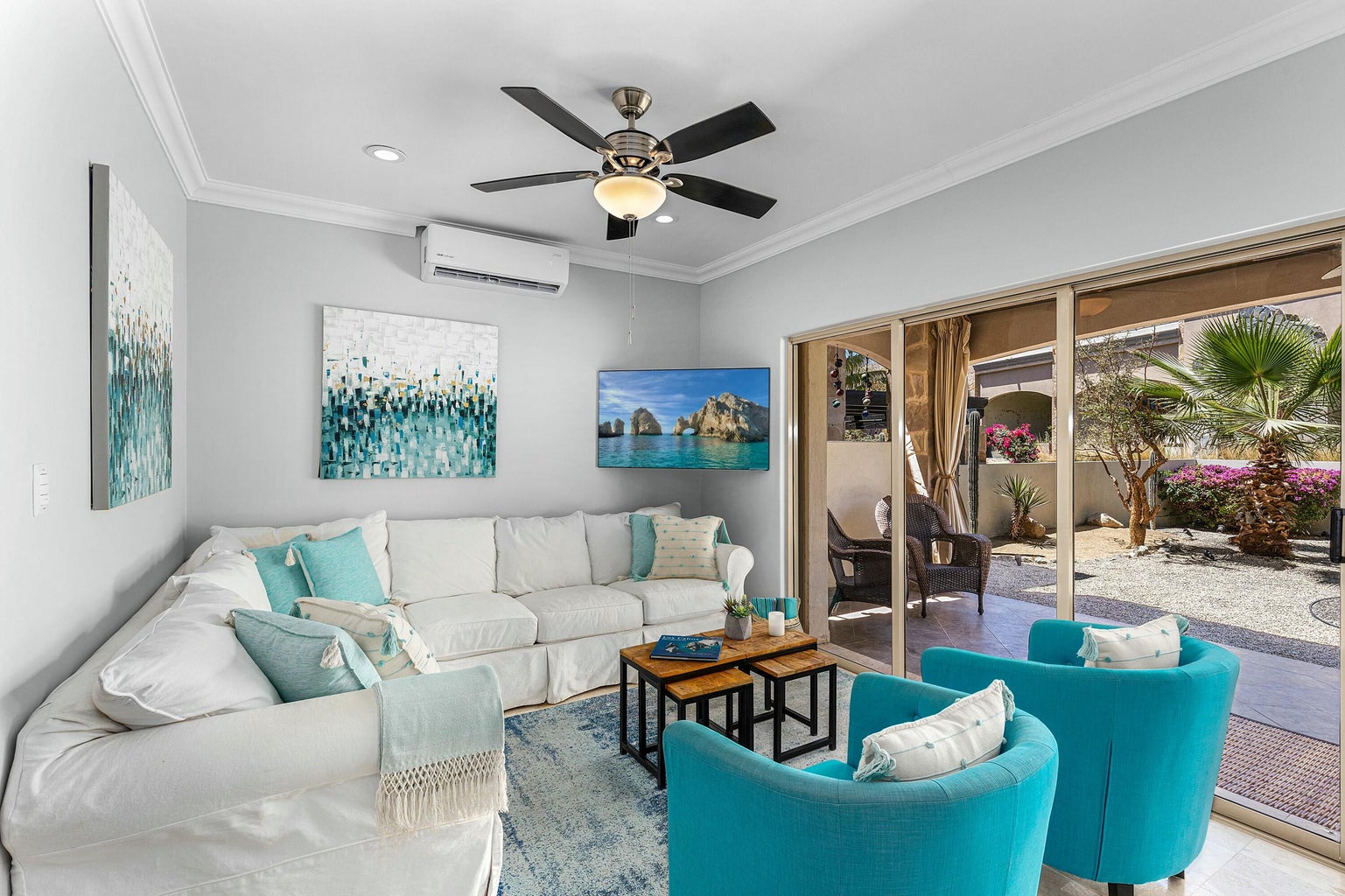 This beautiful home in Cabo San Lucas is located in the desirable Residential Ventanas Phase 2, El Tezal. The property features a spacious open floor plan, a private rooftop terrace with stunning views, and a cozy fire pit for outdoor relaxation. Inside, there's a convenient laundry room. Residents enjoy access to premium amenities, including a gym, a community pool, and a clubhouse. Perfect for a vacation home, family residence, or investment, this property offers modern comfort, style, and convenience in one of Cabo's most sought-after neighborhoods.